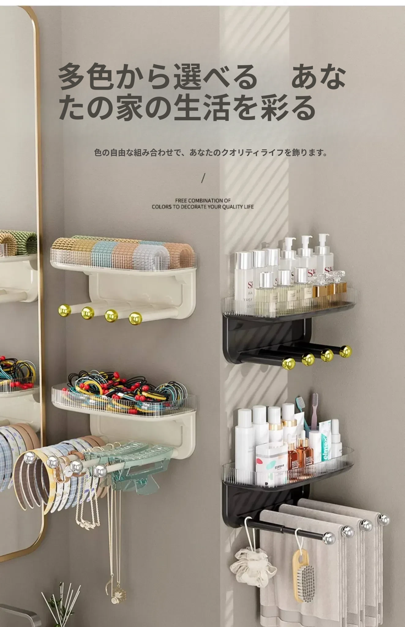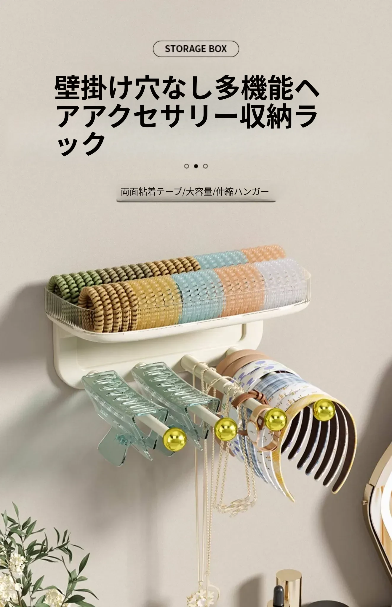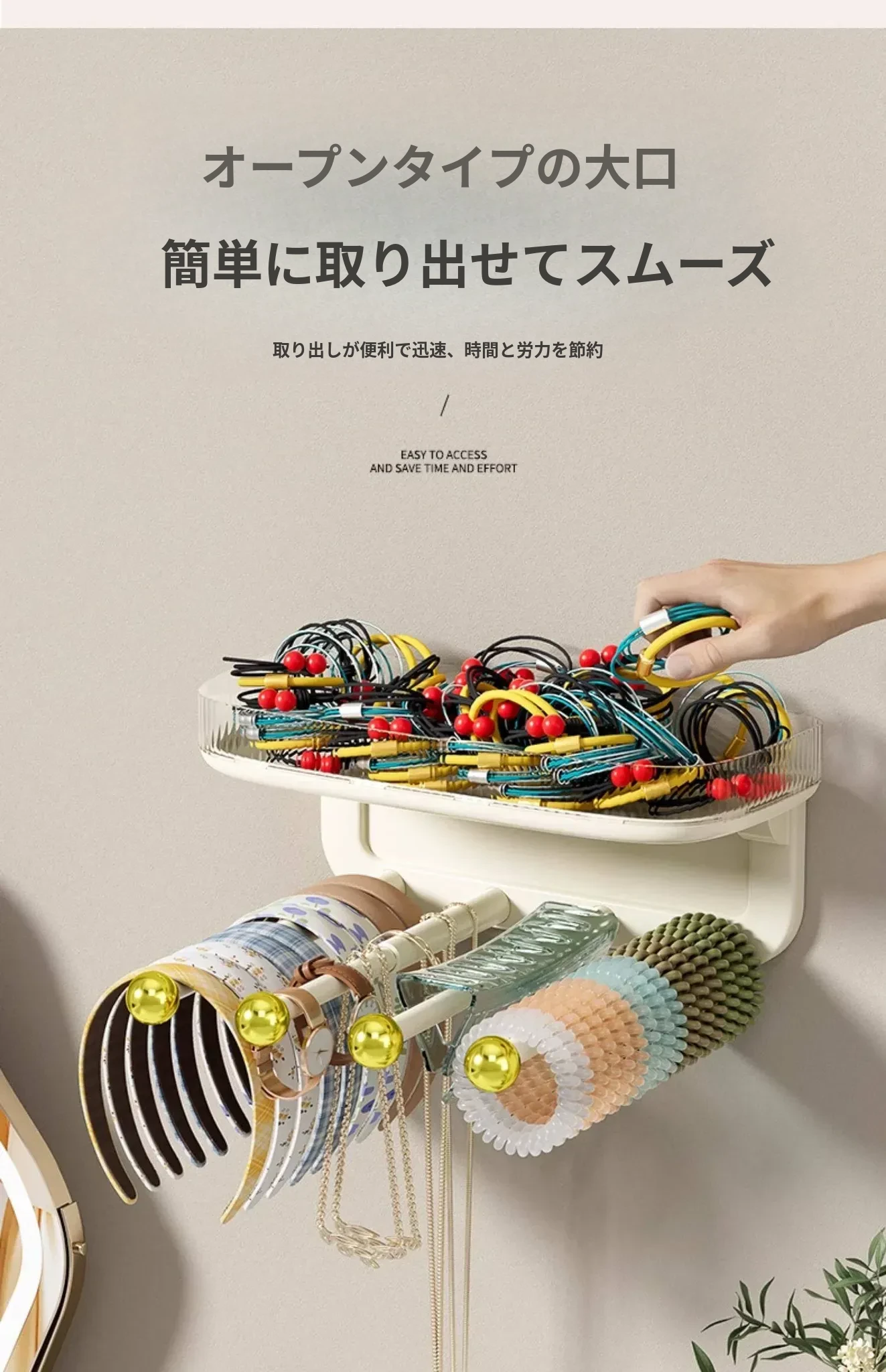 髪飾り収納の必需品!ヘアバンド、クリップ、ゴム、フックを整理整頓できる便利な壁掛けラック。バスルームやおしゃれな空間にぴったりのアクセサリー収納アイテム!