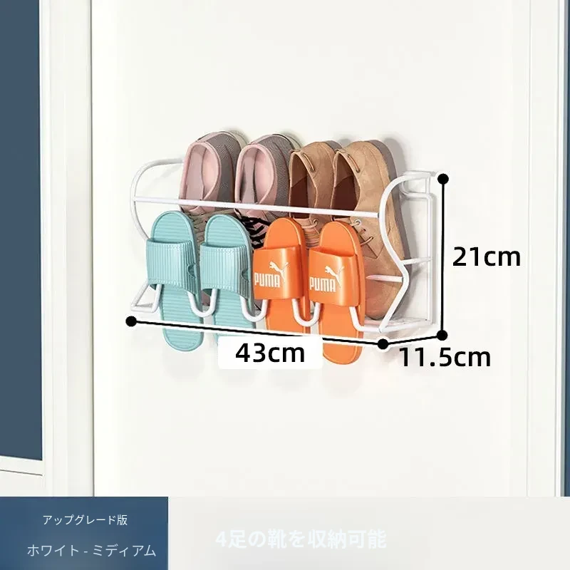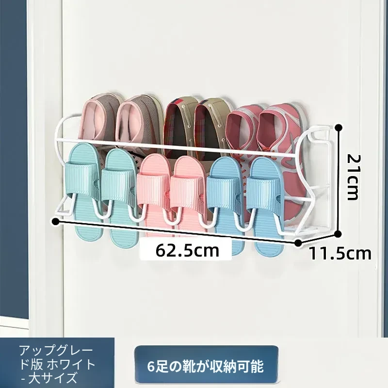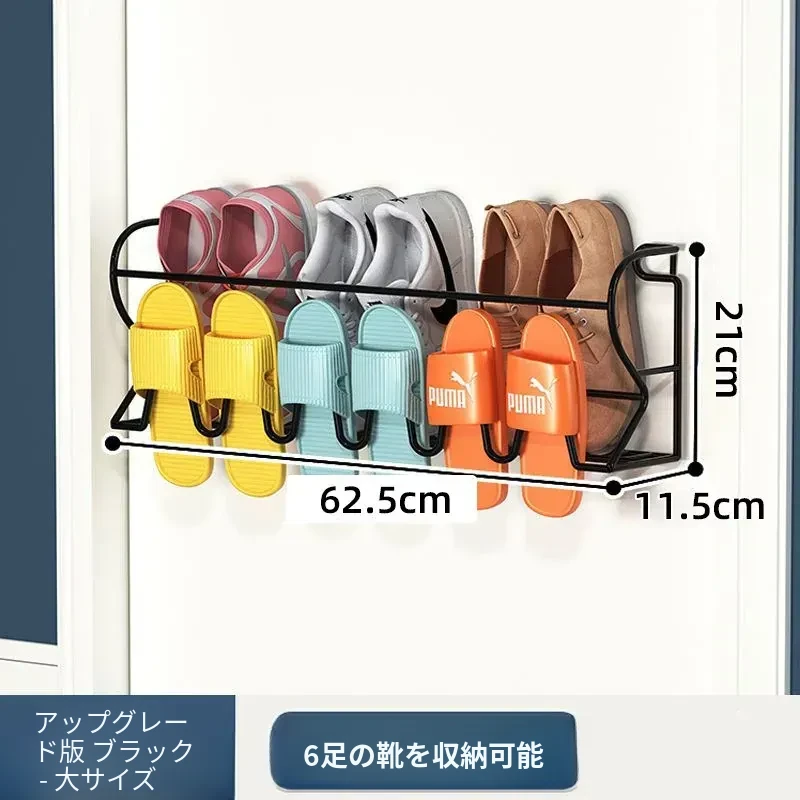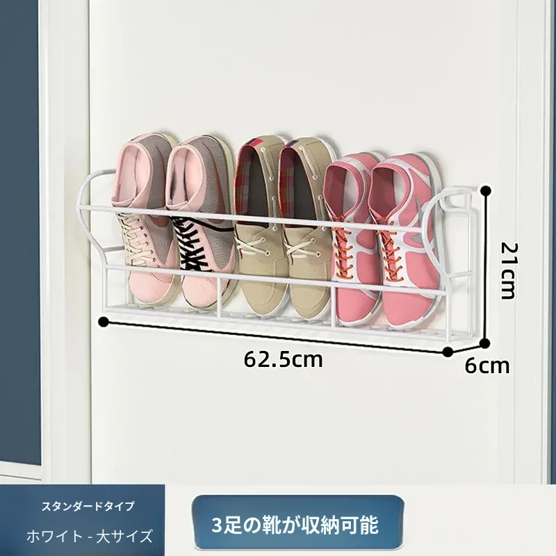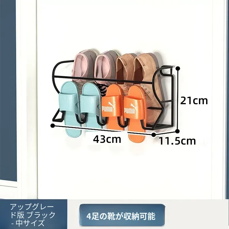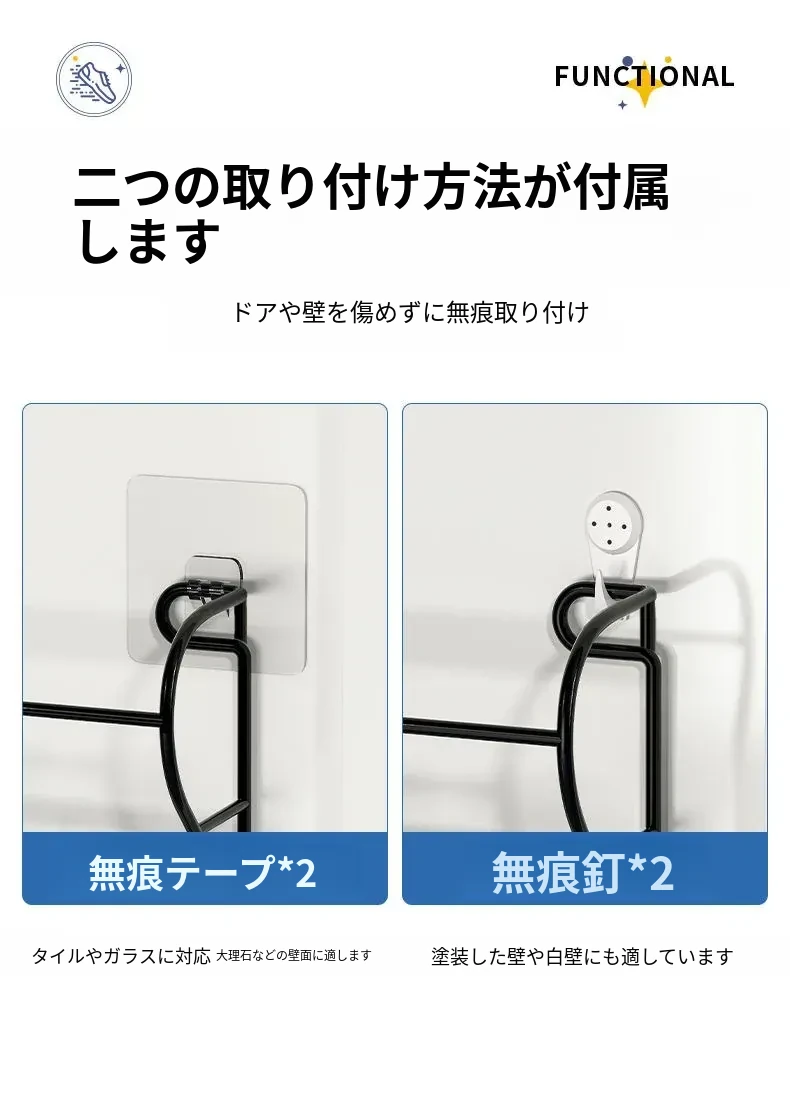 アイアン製ドアハンガーシューラック - 簡単取り付けで玄関やバスルームに最適!壁に穴を開けずに使える収納の魔法、ドアに掛けるだけでスペースを有効活用!
