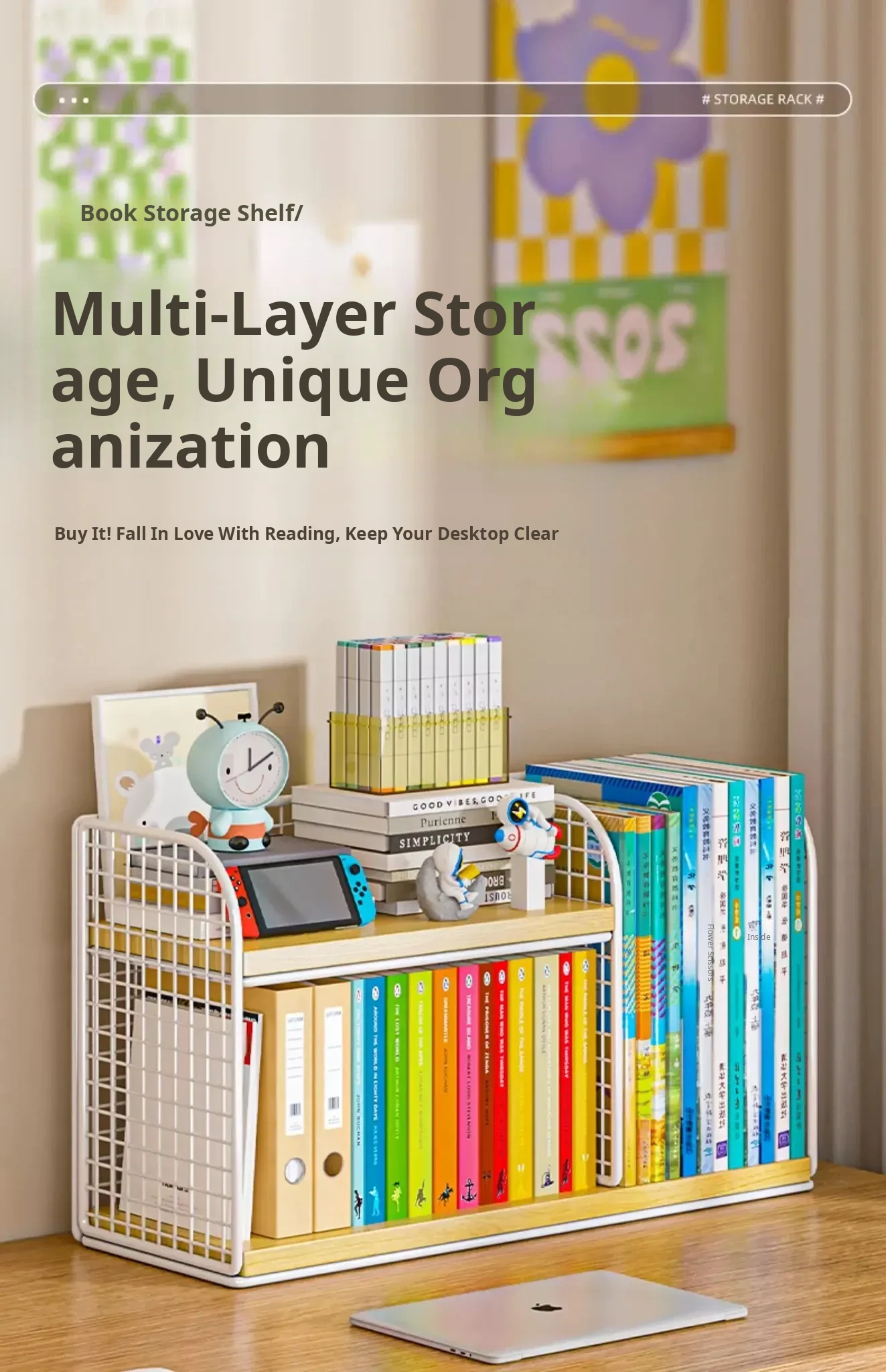 Kids' Book Organizer - Stylish Desktop Storage Rack for Children's Picture Books, Multi-Tier Bookshelf for Office & Home, Perfect for Organizing Your Workspace and Keeping Your Books Neat!