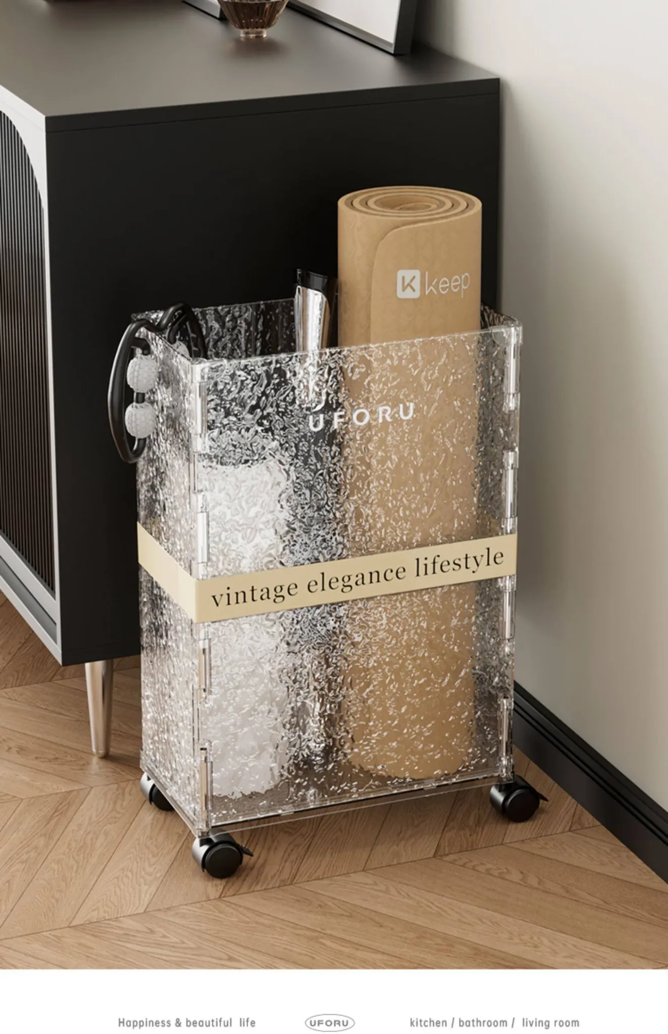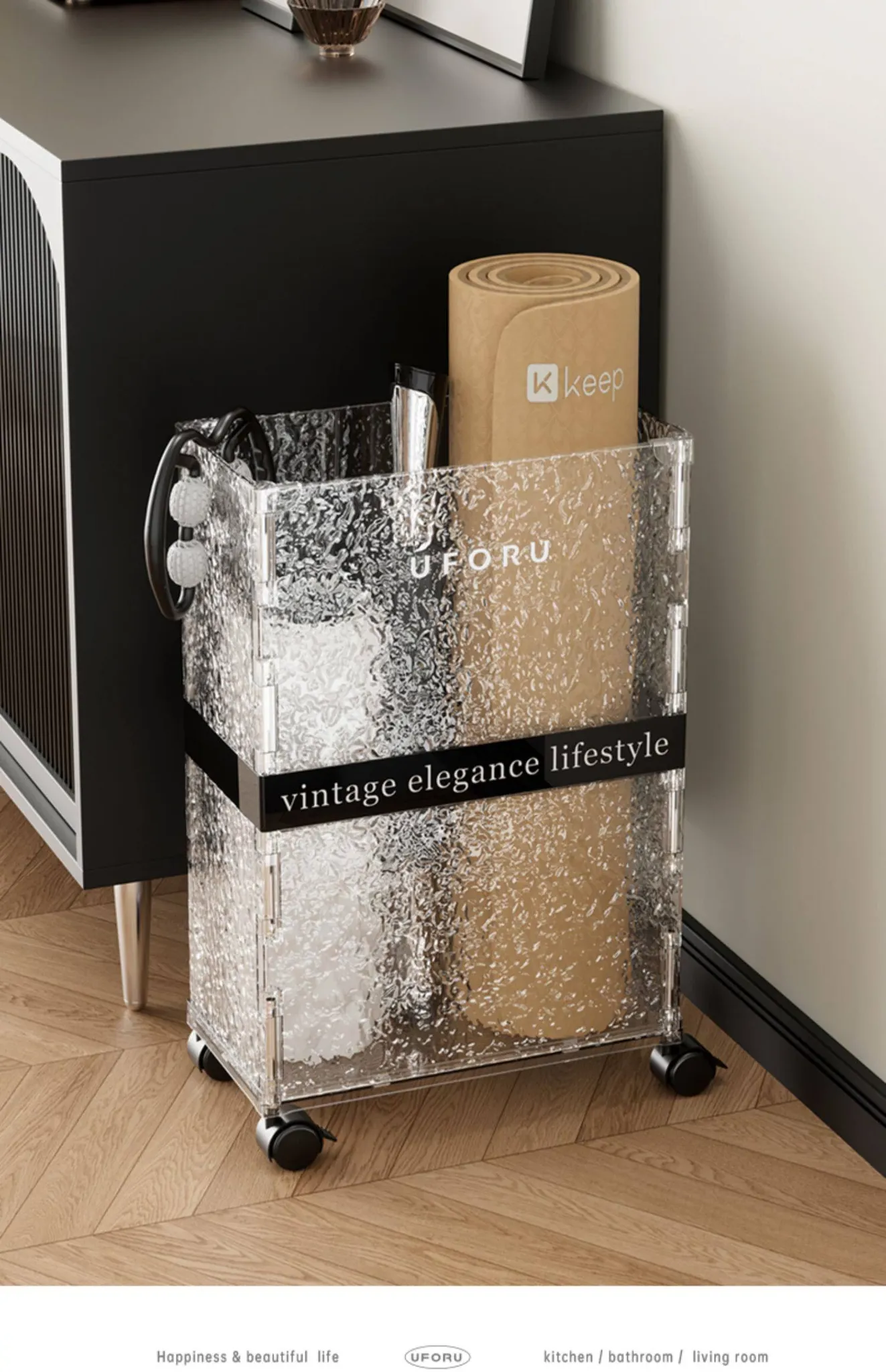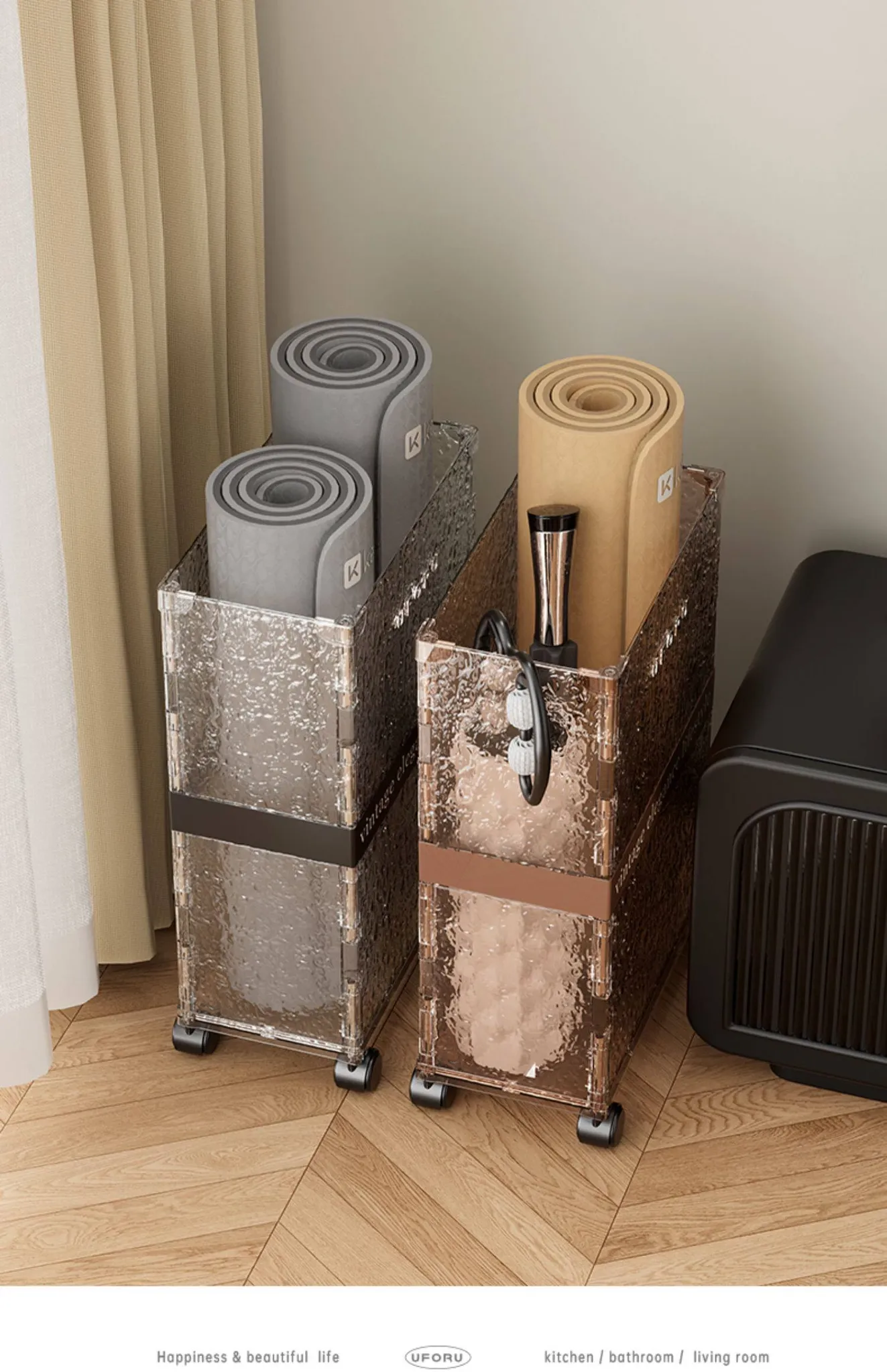 Large Yoga Mat Storage Box - Home Gym Equipment Organizer with Narrow High Design, Perfect for Exercise Gear and Easy to Move!