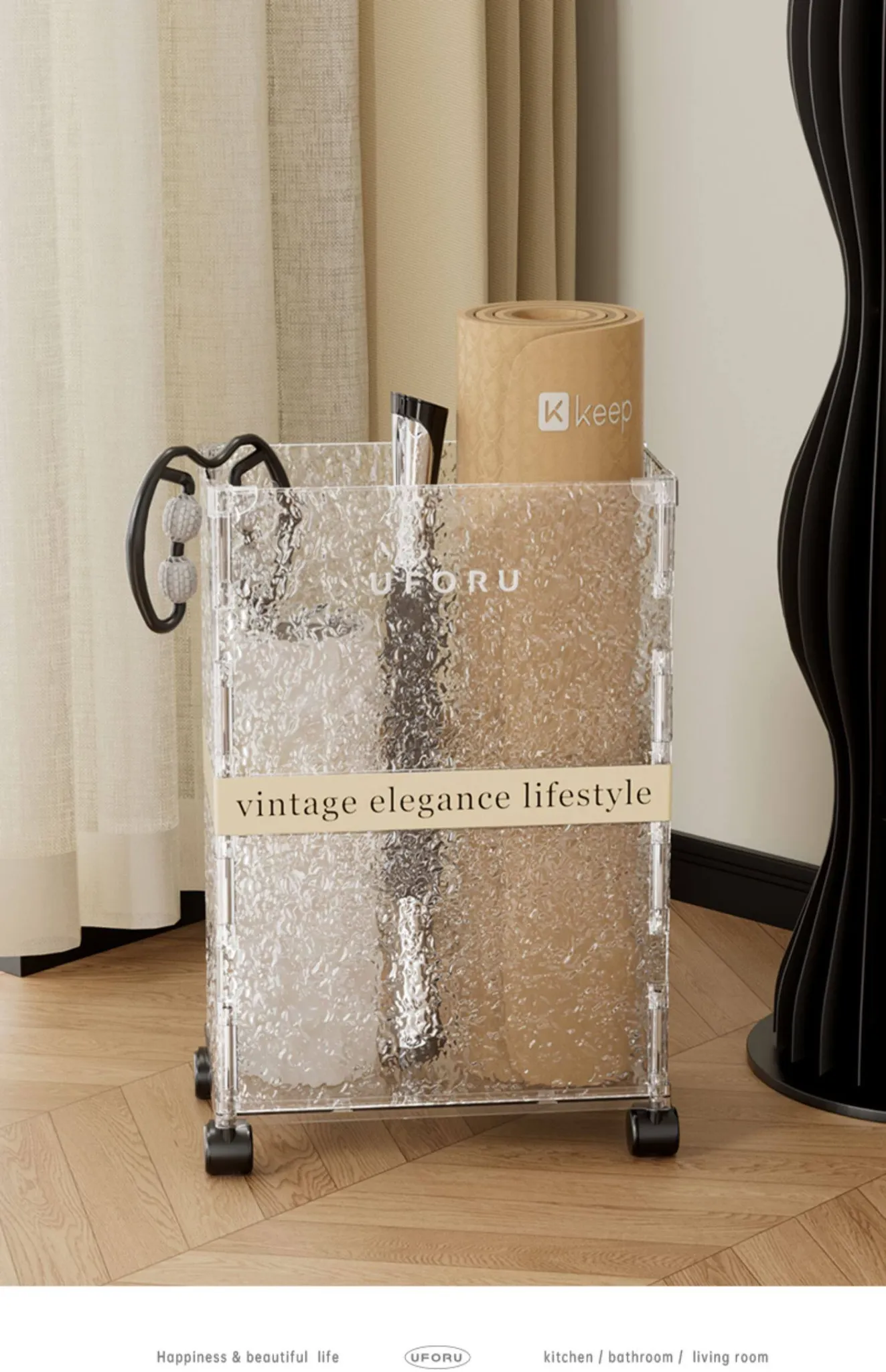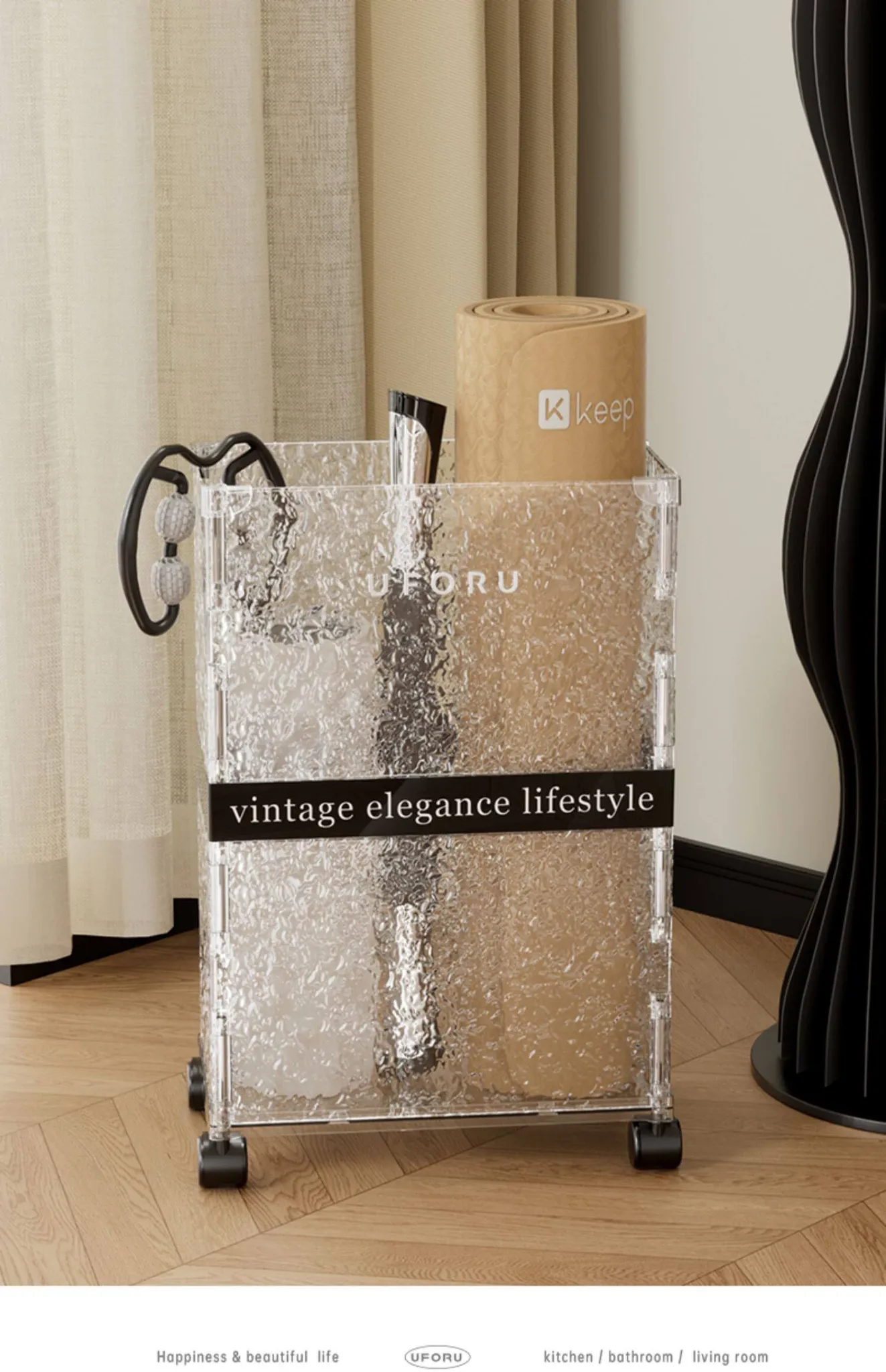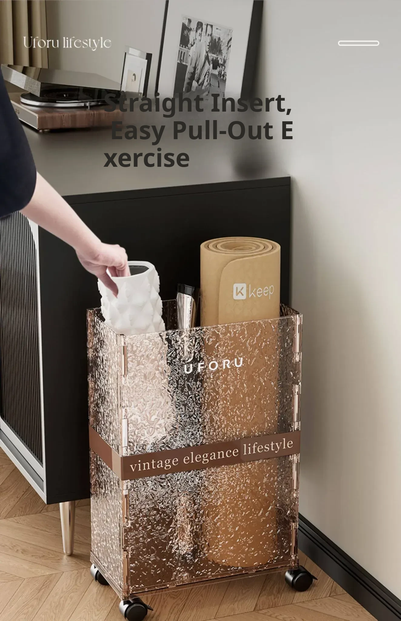 Large Yoga Mat Storage Box - Home Gym Equipment Organizer with Narrow High Design, Perfect for Exercise Gear and Easy to Move!