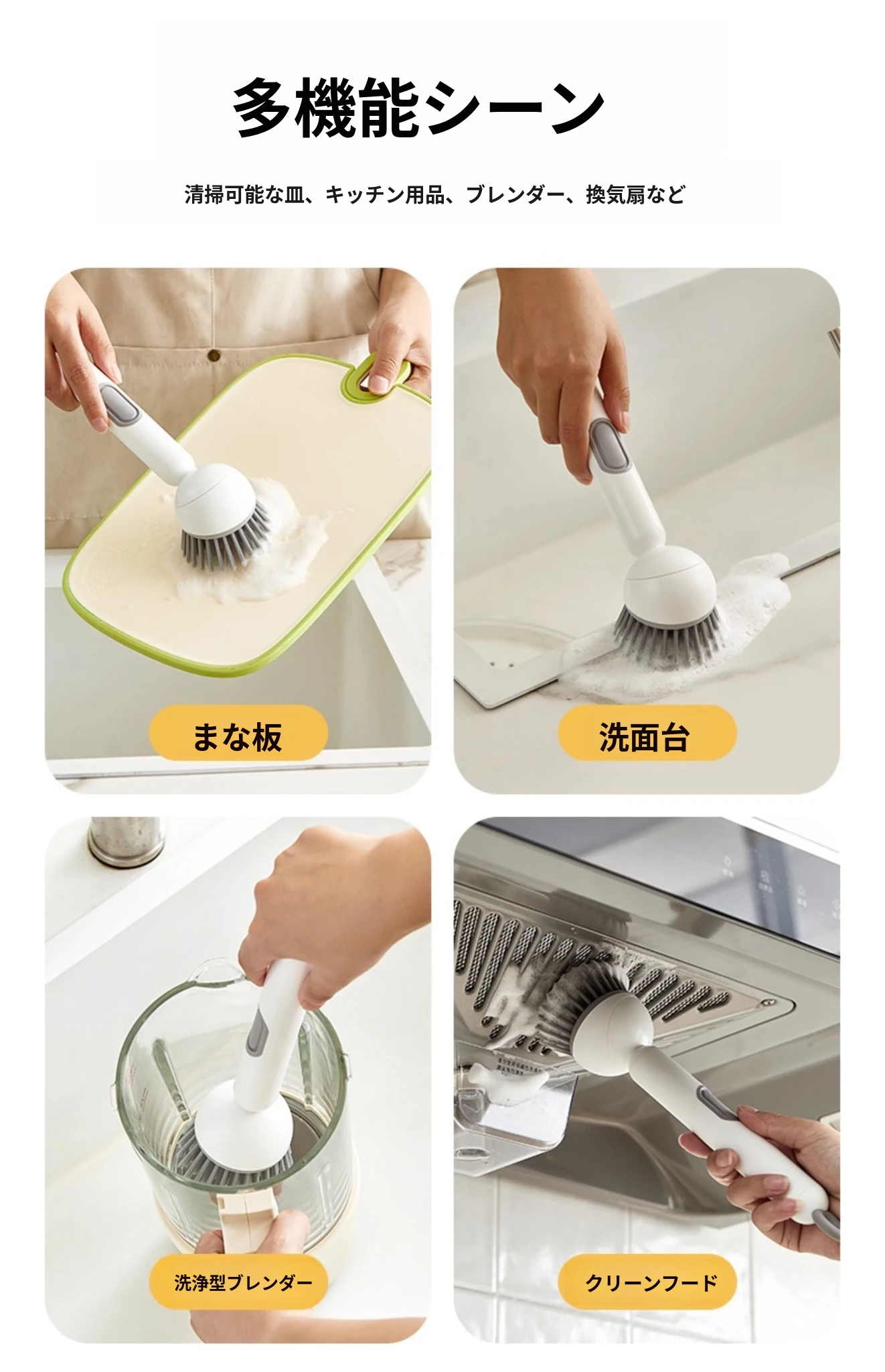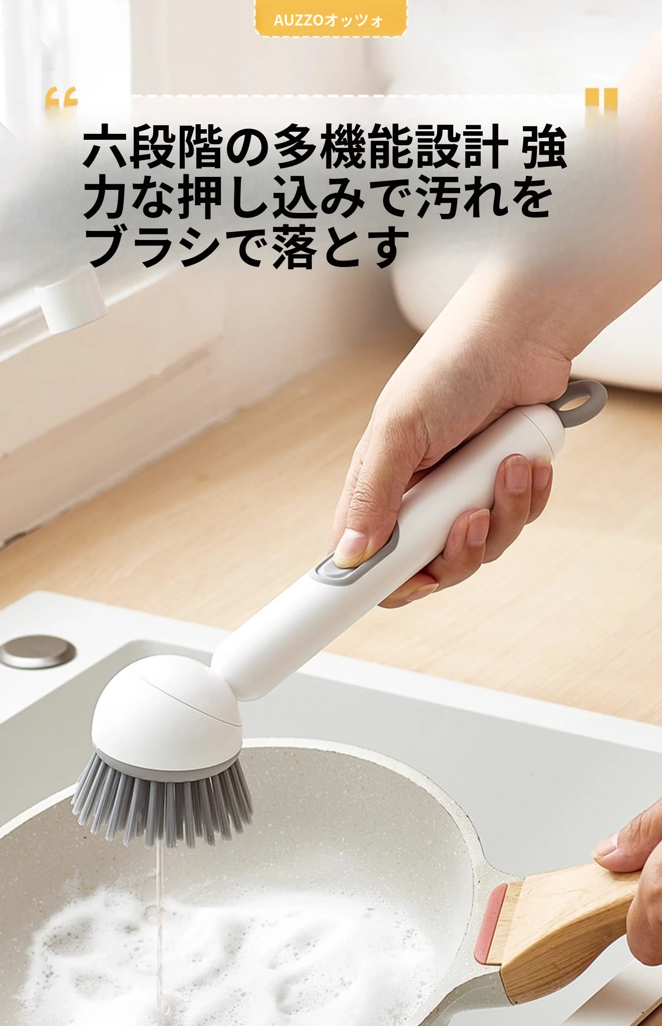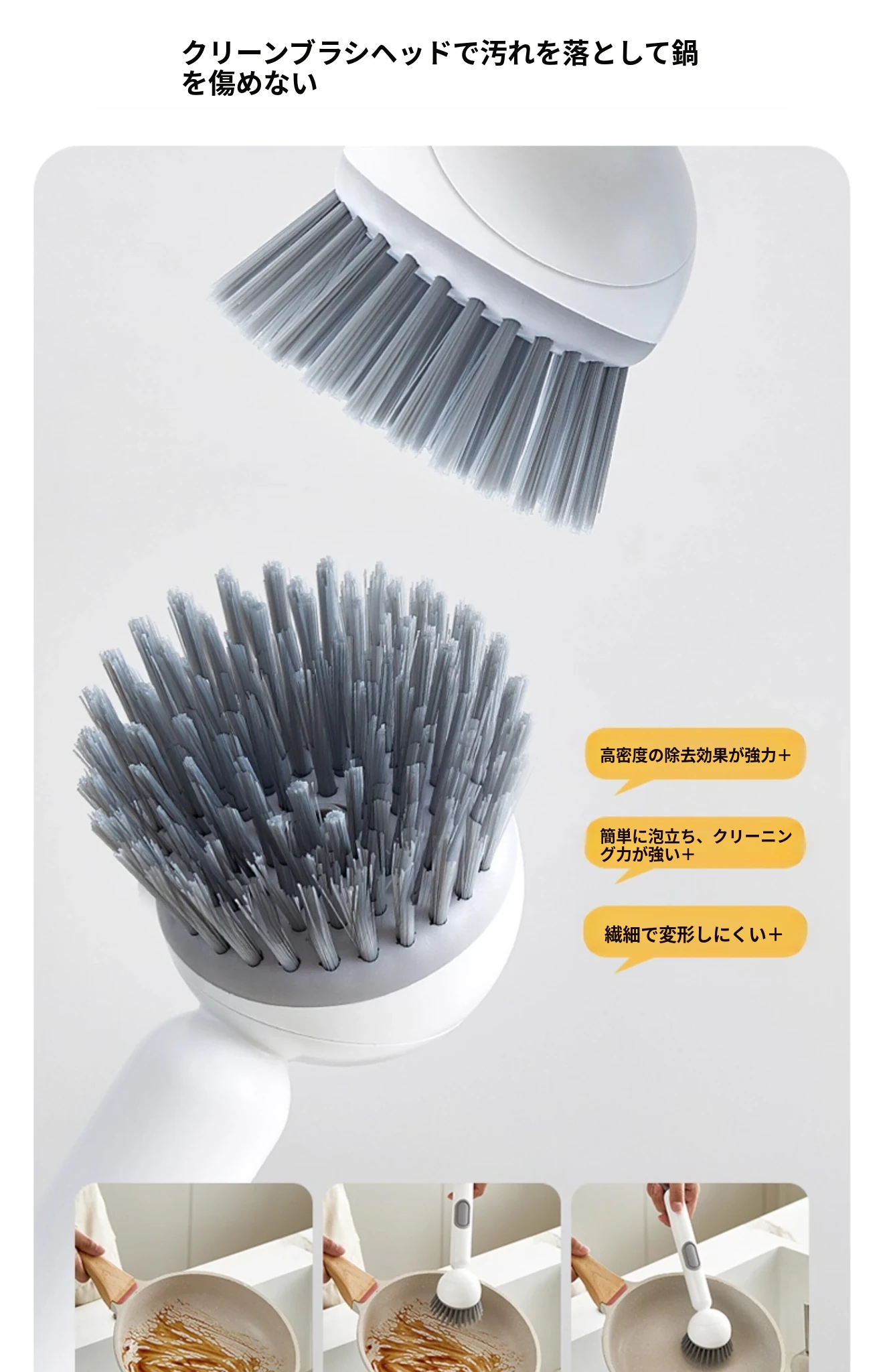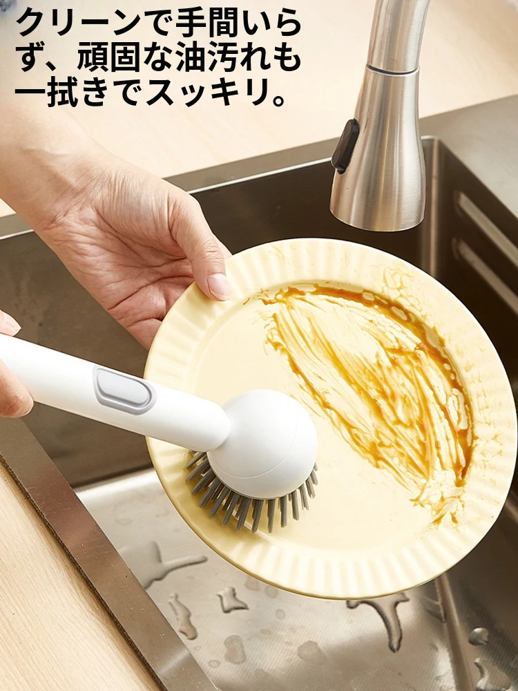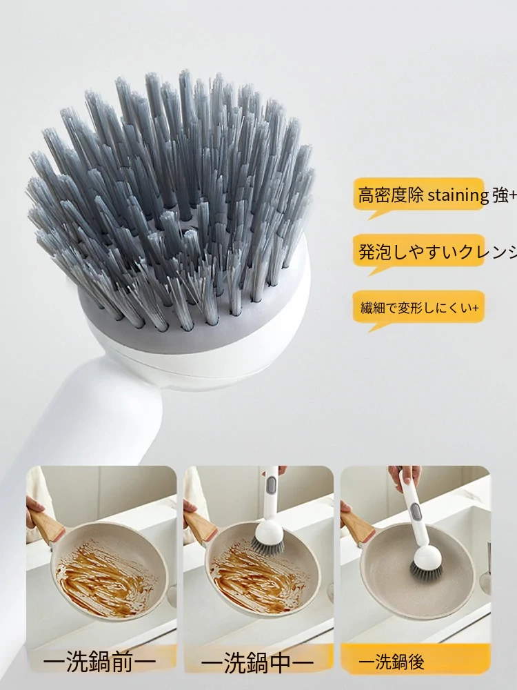 長柄液体旋転鍋ブラシ - キッチン専用、焦げ付きなし、鍋を傷めない多機能洗浄ブラシ!洗い物が楽々、清潔で快適な調理生活をサポートします!