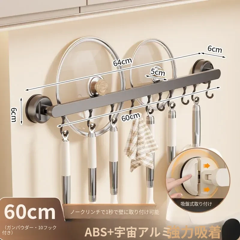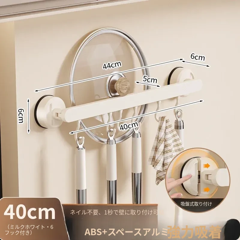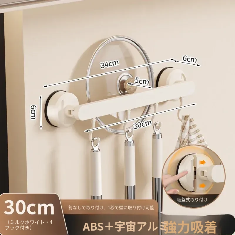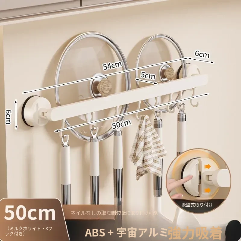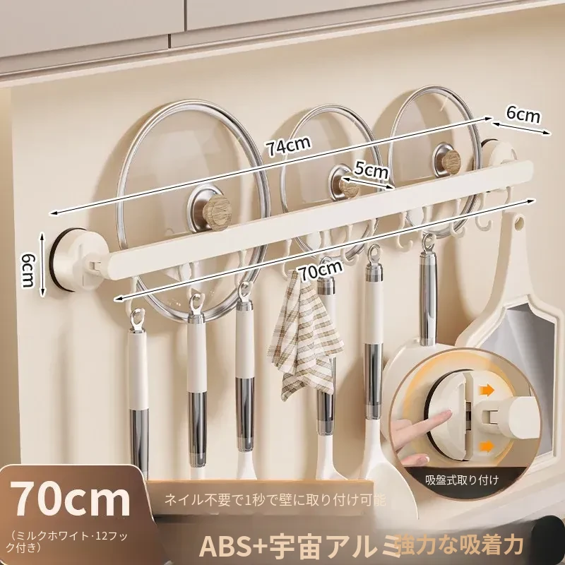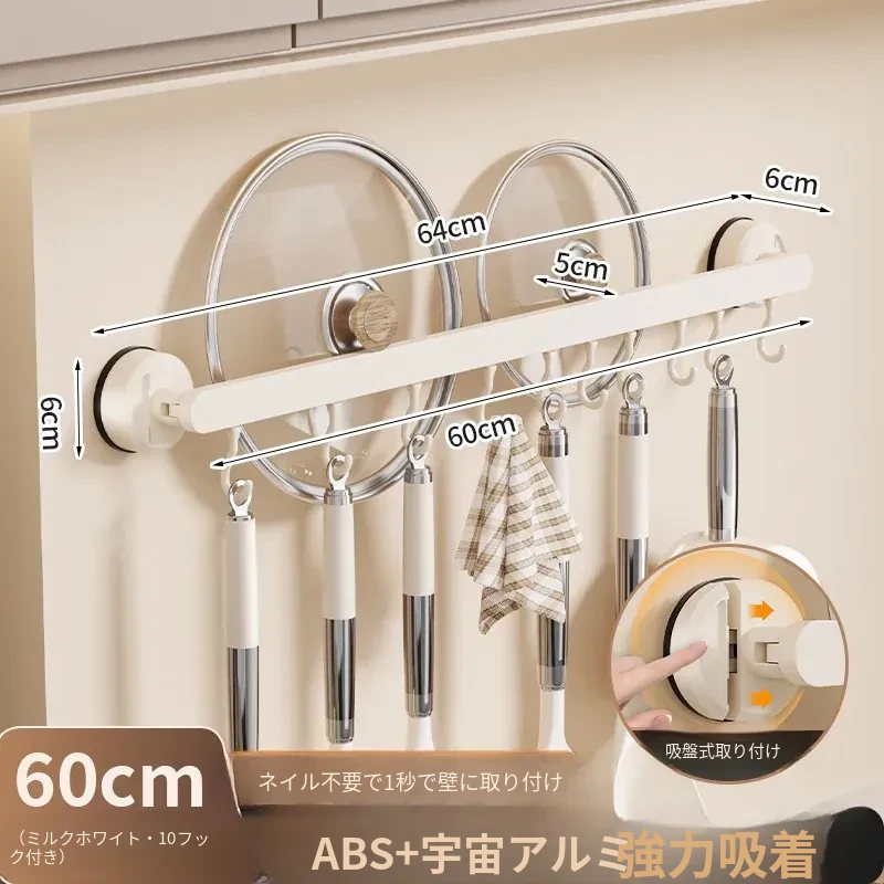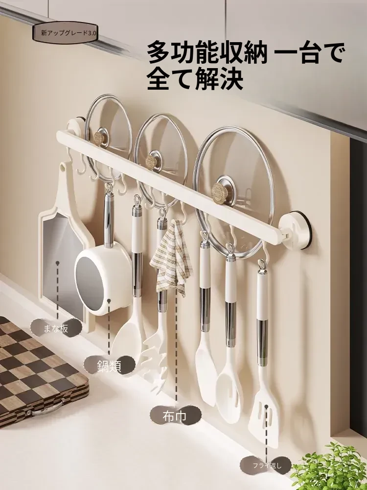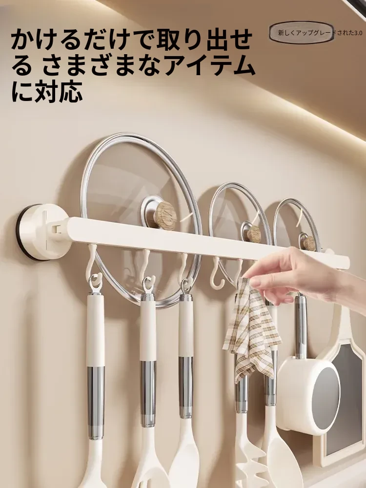 『おしゃれなナチュラルホワイト 吸盤式キッチンフック 穴なしコーナーハンガー 壁掛け調理器具収納ラック スプーンやヘラの整理に最適!』