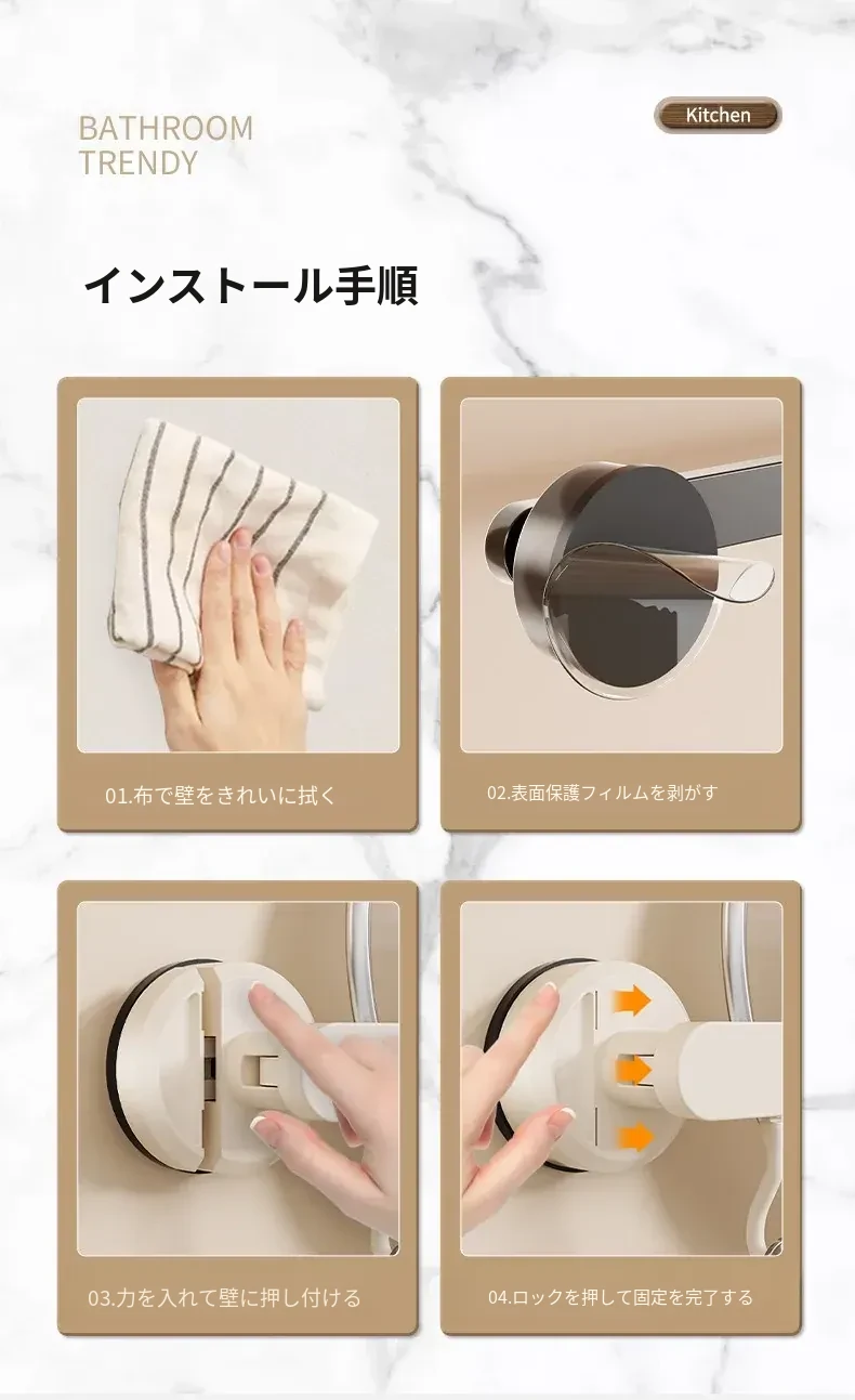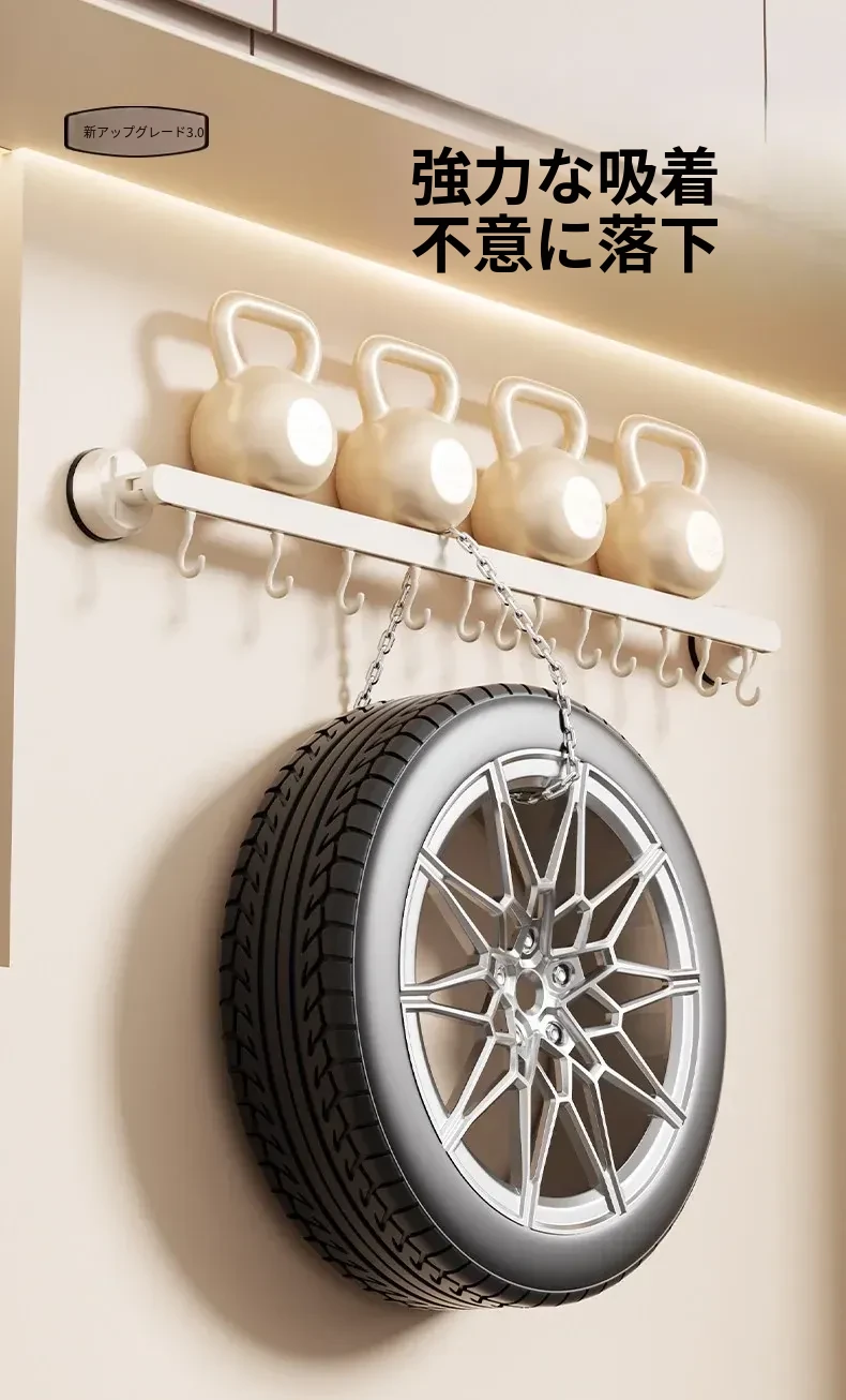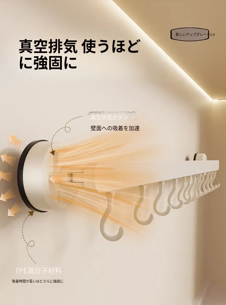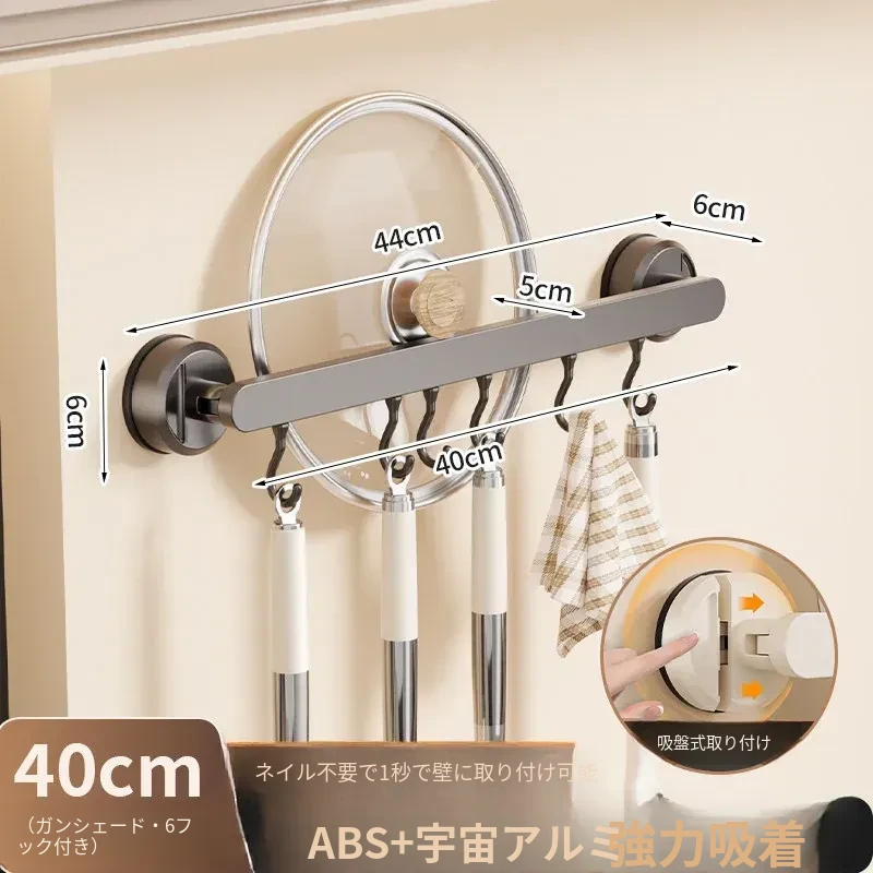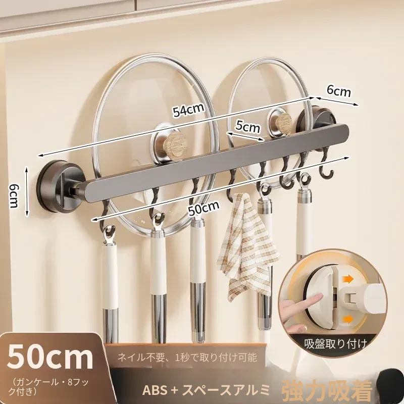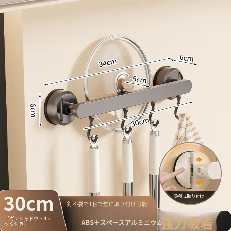 『おしゃれなナチュラルホワイト 吸盤式キッチンフック 穴なしコーナーハンガー 壁掛け調理器具収納ラック スプーンやヘラの整理に最適!』