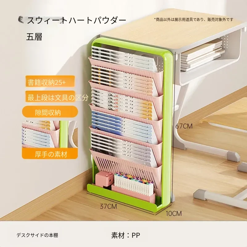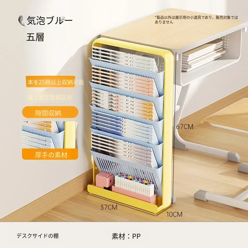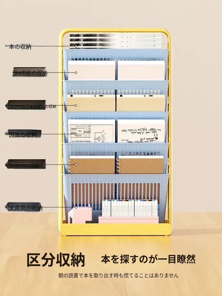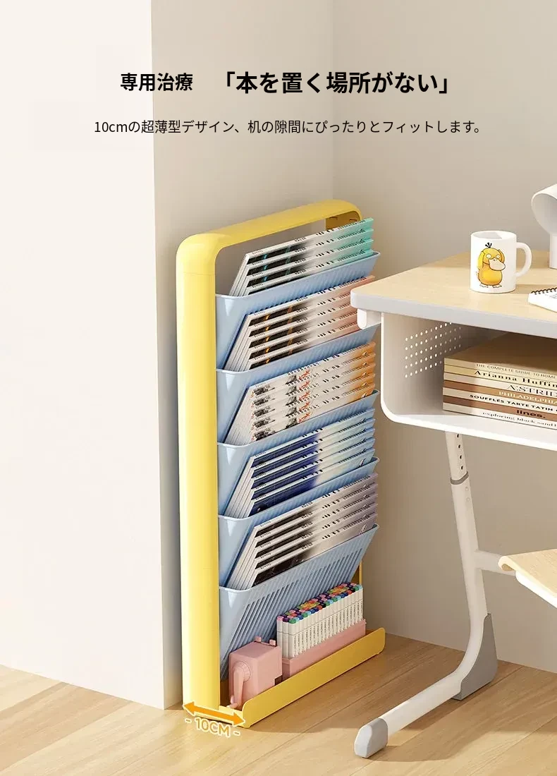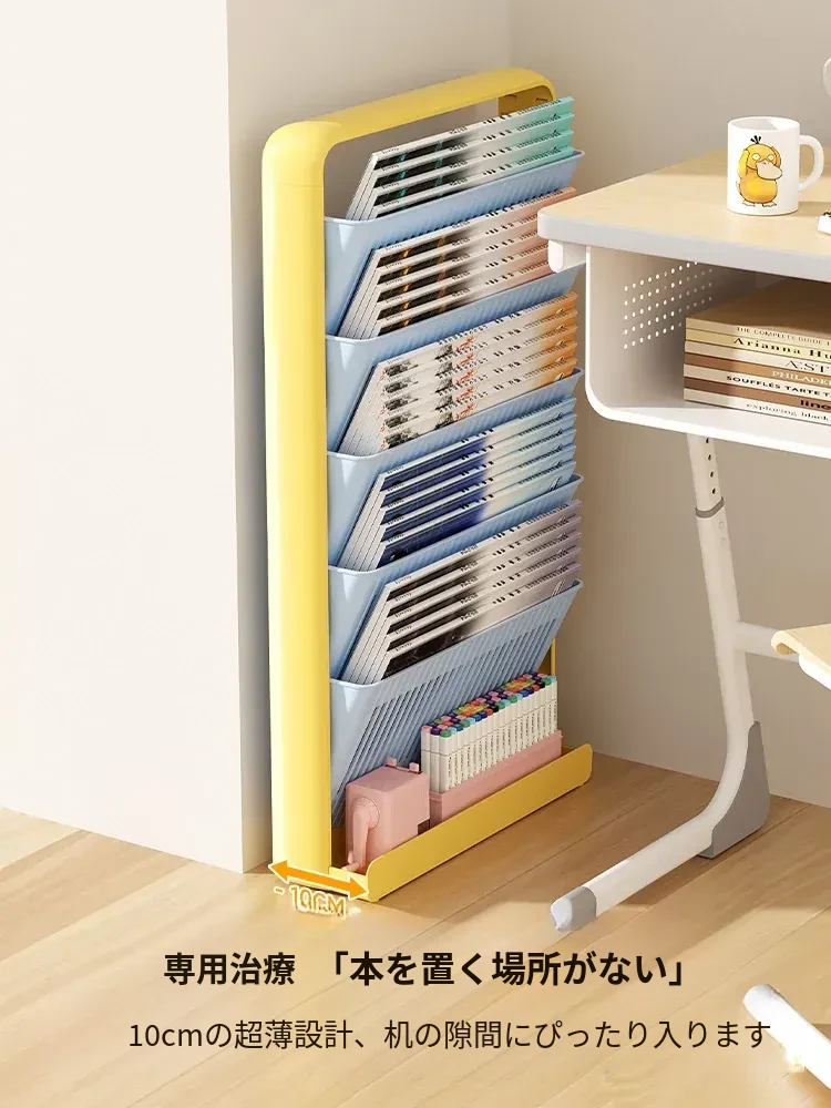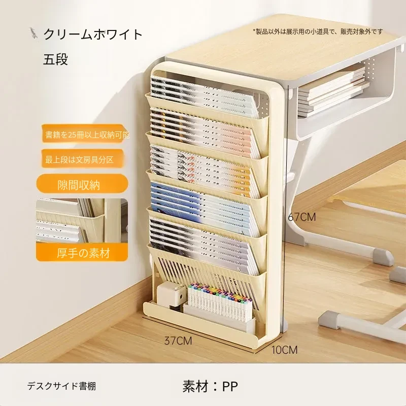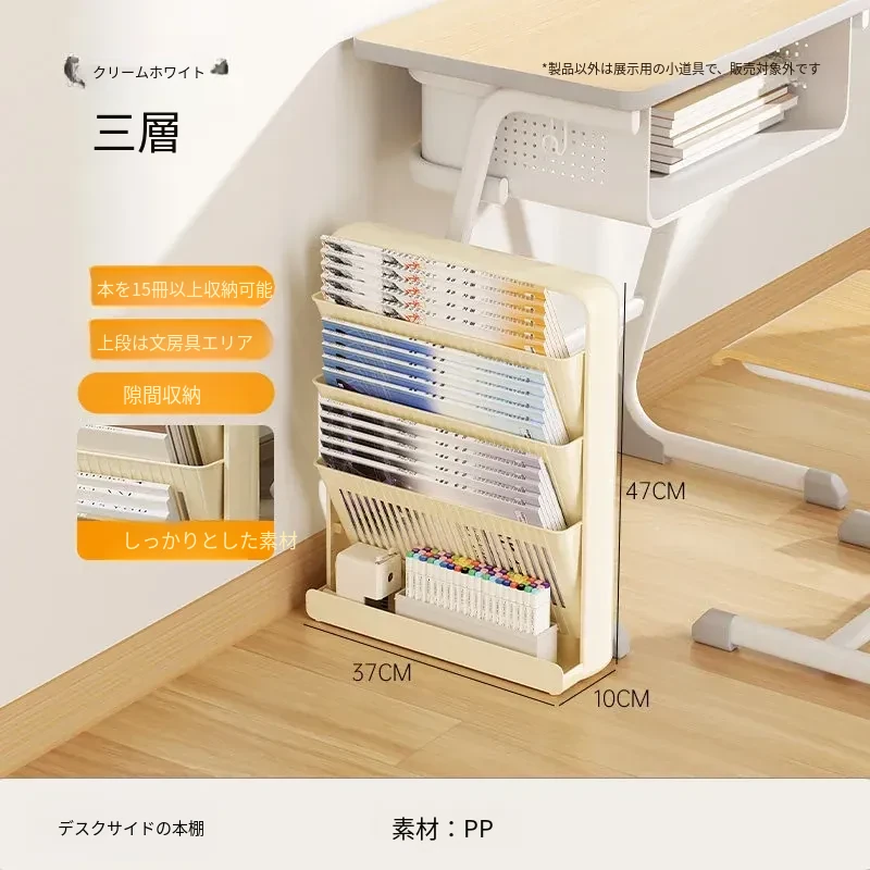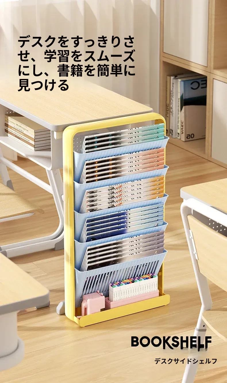 教室や自宅に最適!移動可能なデスクサイド書棚 - 学生の教科書やノートをすっきり整理できる、スタイリッシュな収納ラック。限られたスペースを有効活用し、学習環境を整えましょう!