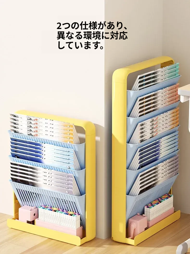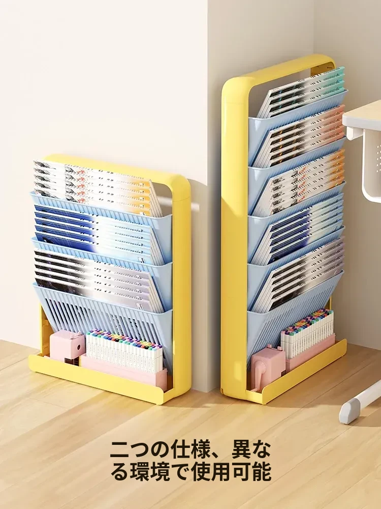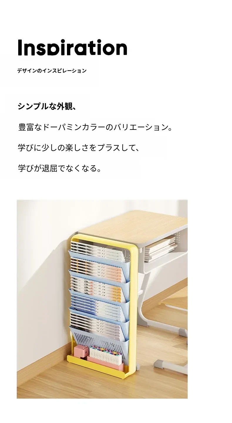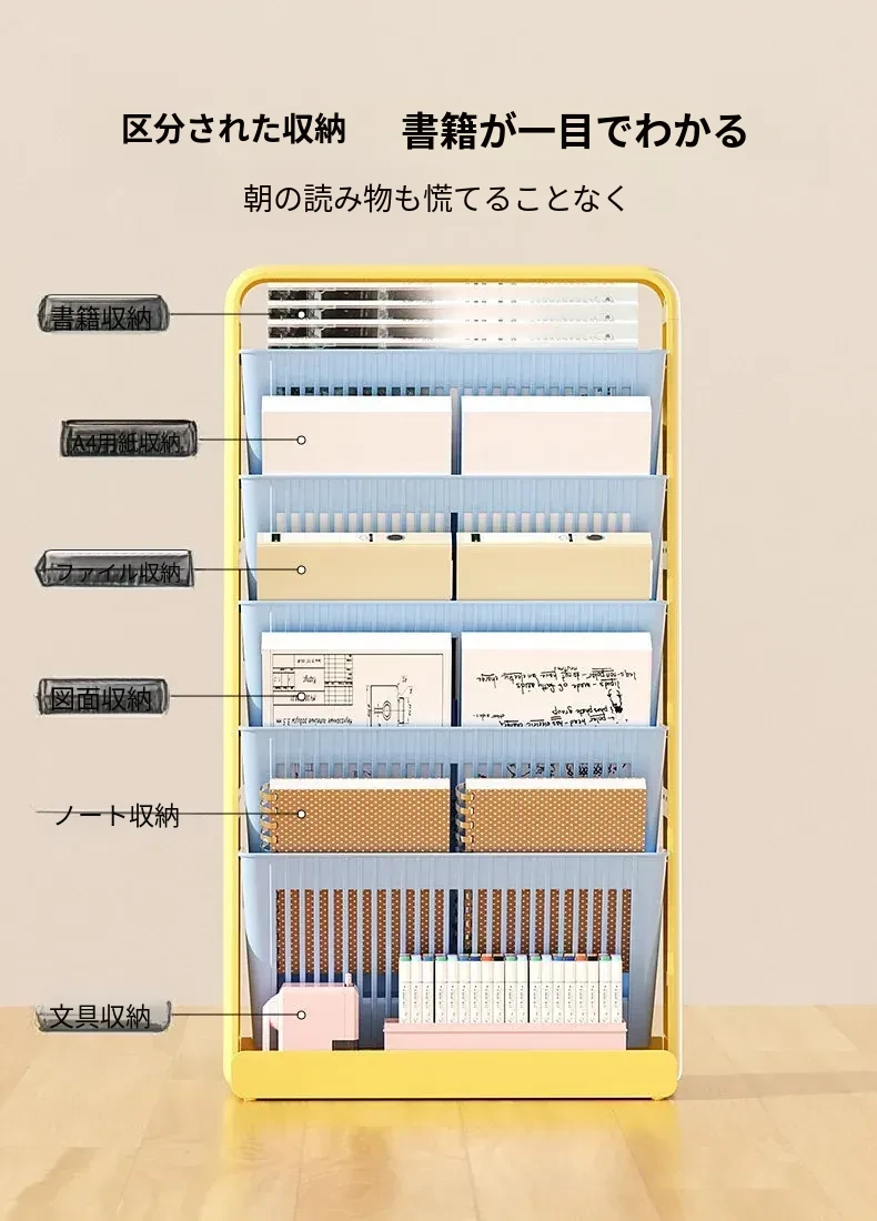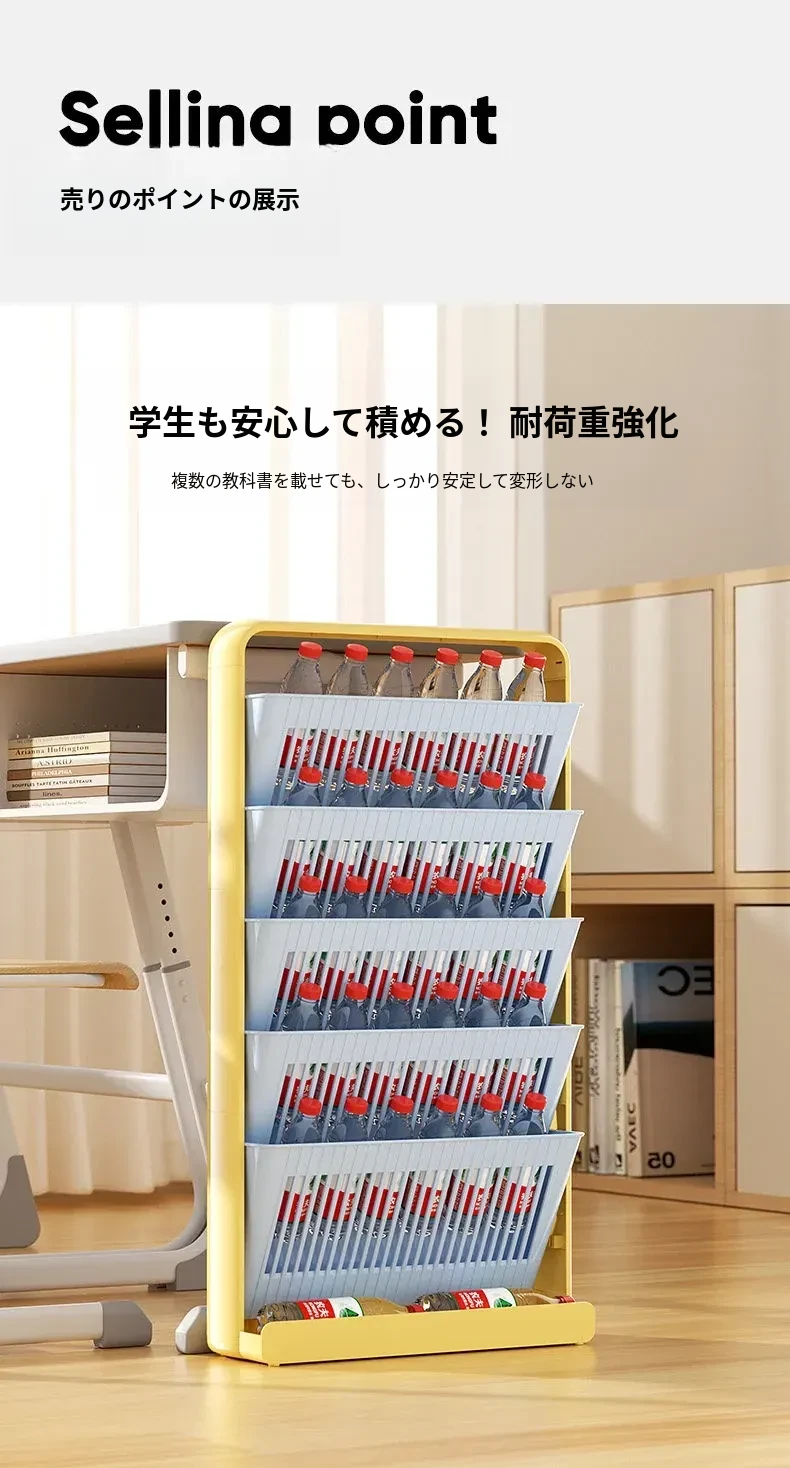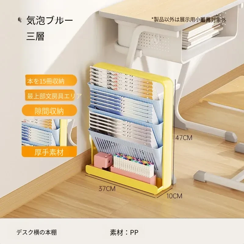 教室や自宅に最適!移動可能なデスクサイド書棚 - 学生の教科書やノートをすっきり整理できる、スタイリッシュな収納ラック。限られたスペースを有効活用し、学習環境を整えましょう!