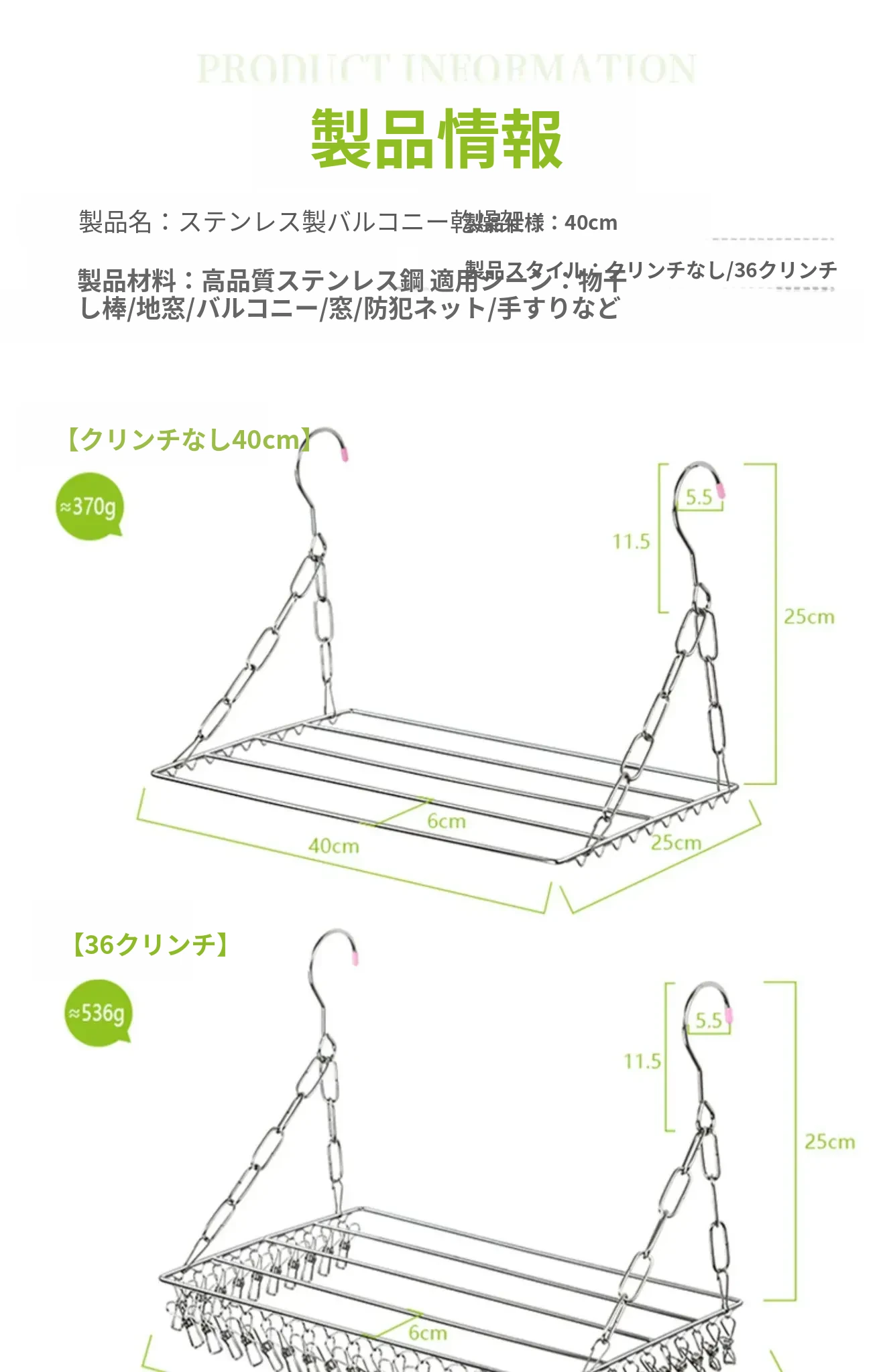ステンレス-クリンチなし【40cm】