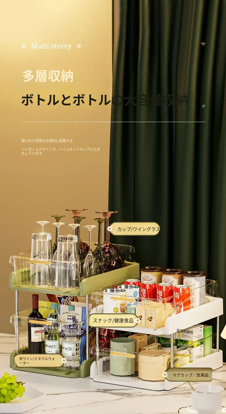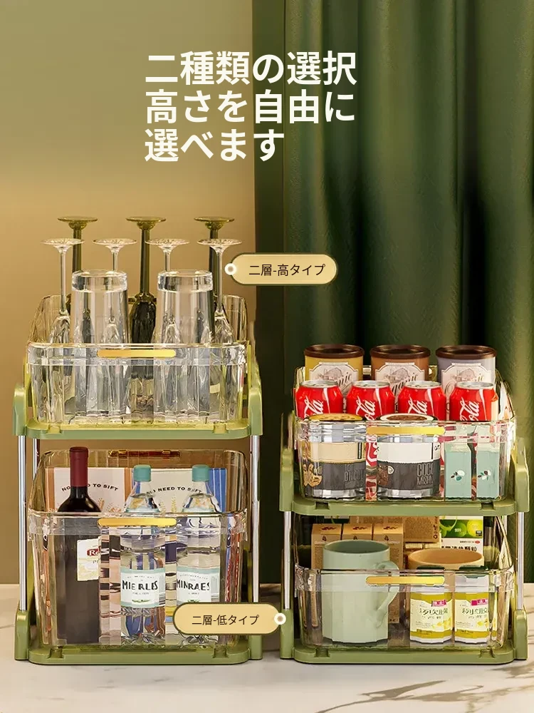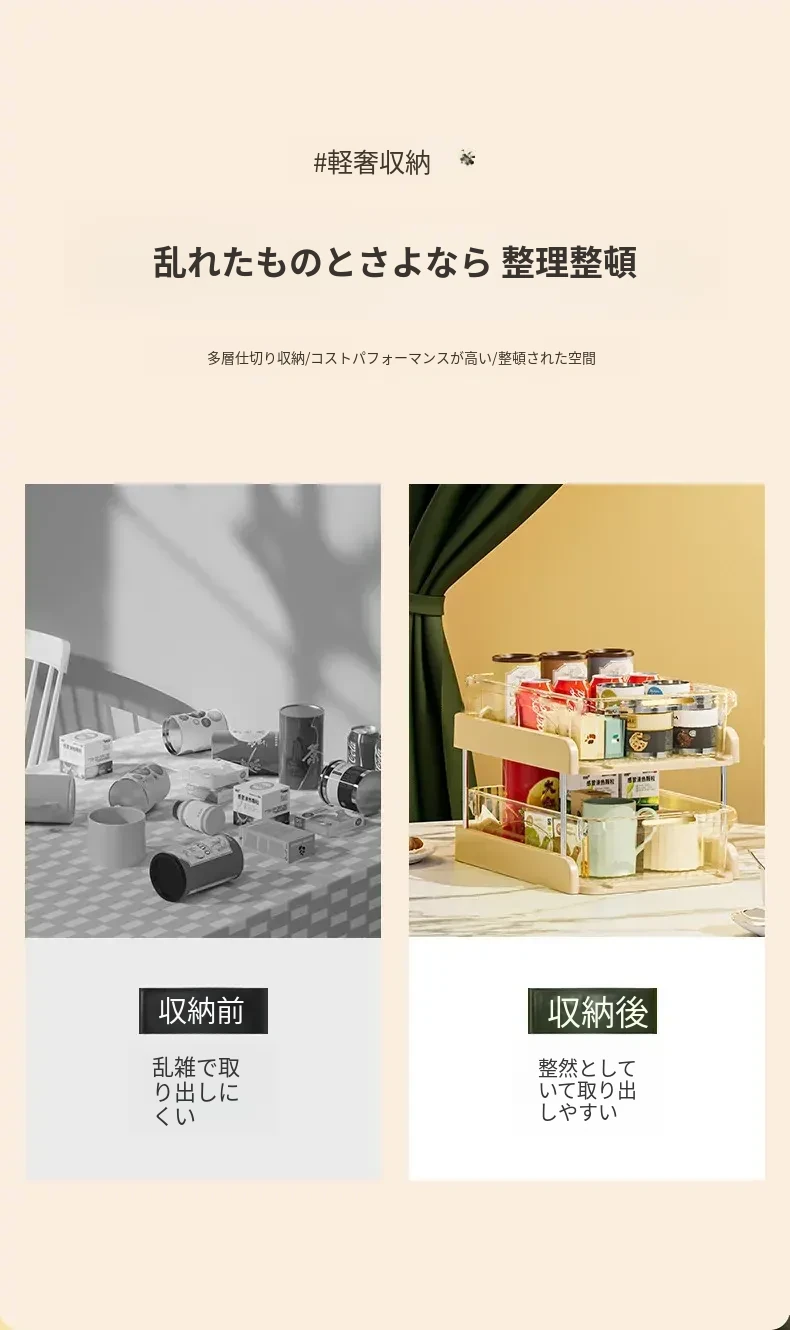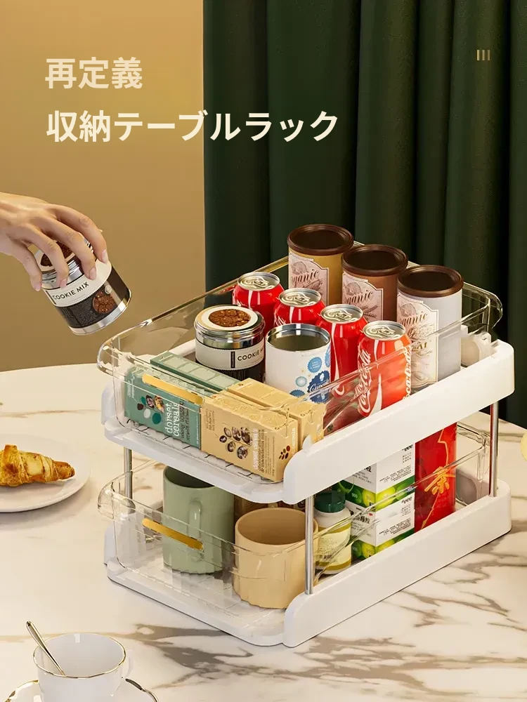 テーブル収納のマジック!デスクトップ収納ラック・スナックラック・リビングテーブル用ダブルレイヤーカップラックで水筒やお菓子をすっきり整理。おしゃれで機能的なデザインで、ダイニングテーブルをもっと便利に!