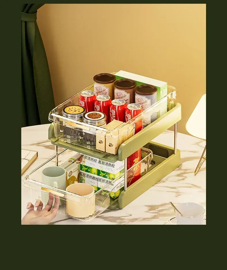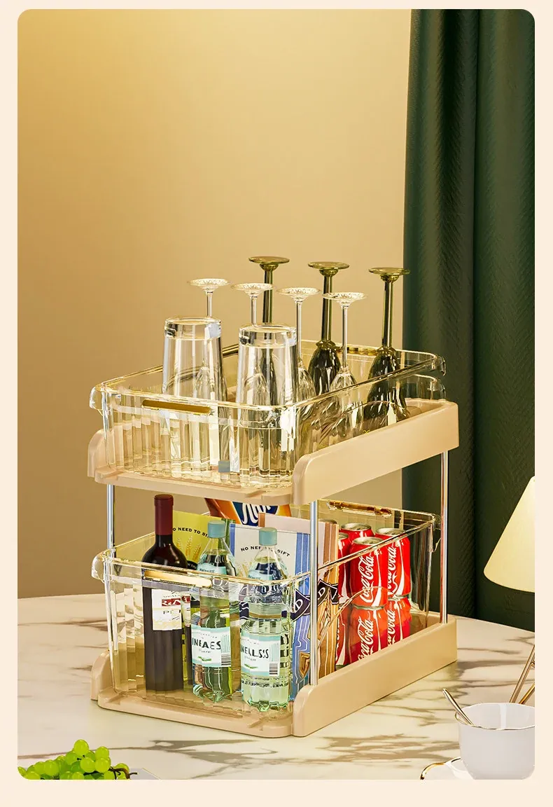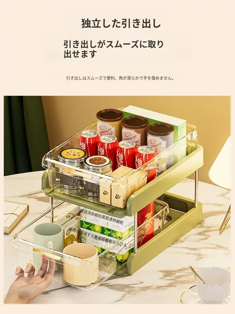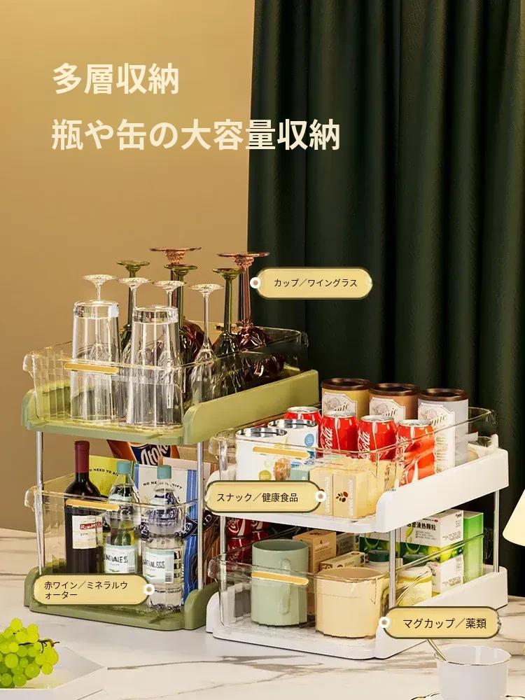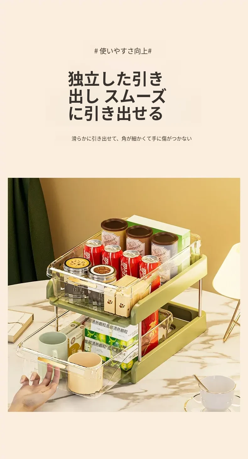 テーブル収納のマジック!デスクトップ収納ラック・スナックラック・リビングテーブル用ダブルレイヤーカップラックで水筒やお菓子をすっきり整理。おしゃれで機能的なデザインで、ダイニングテーブルをもっと便利に!