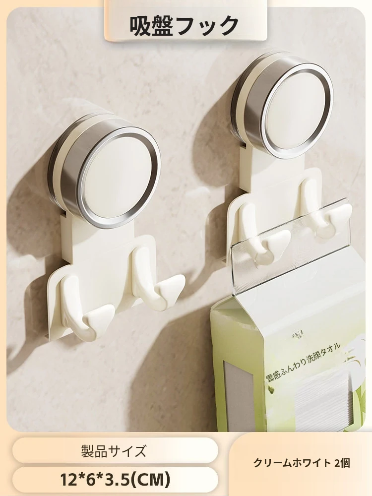 【2個入り】吸盤フック【クリームホワイト】