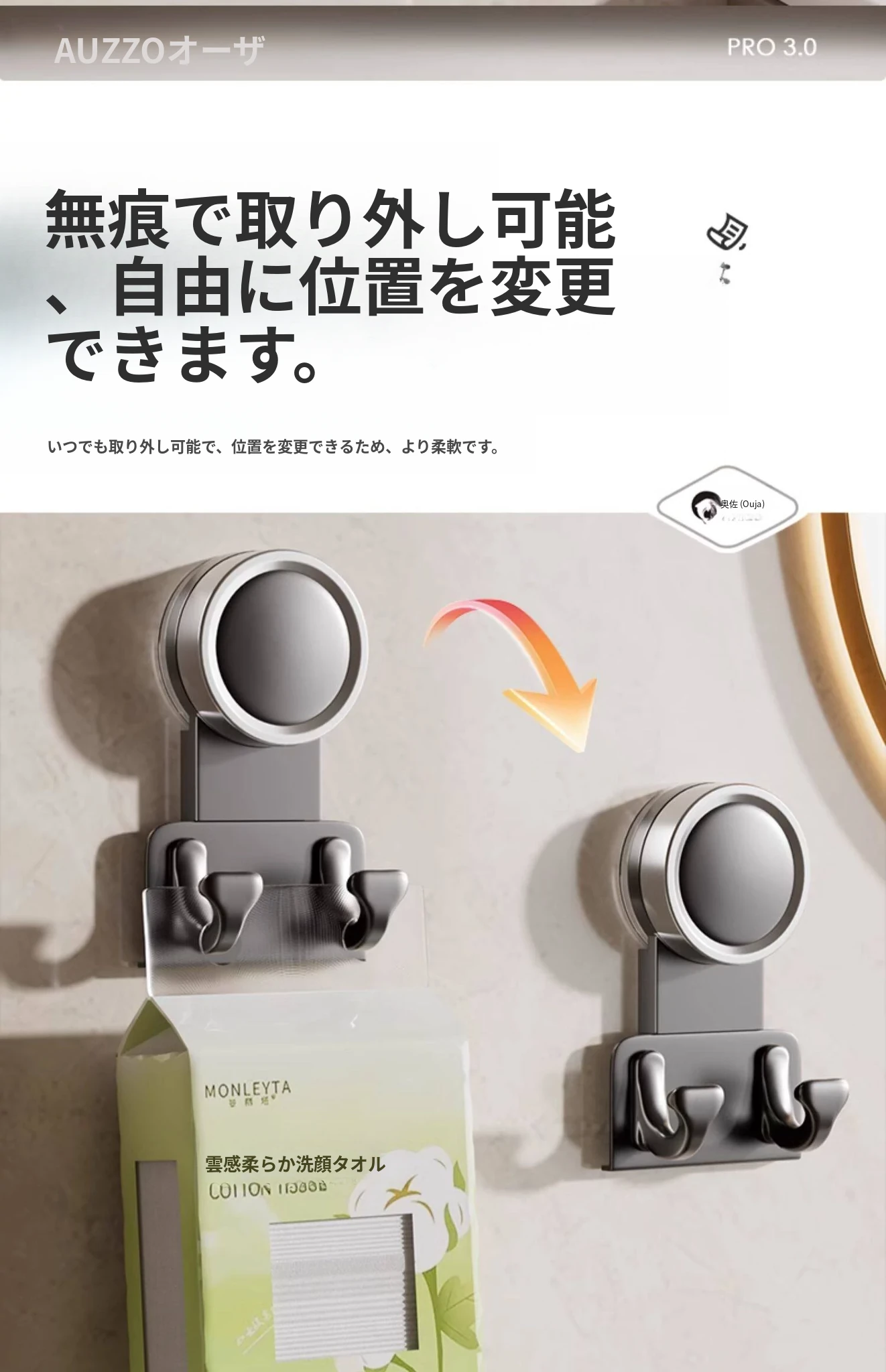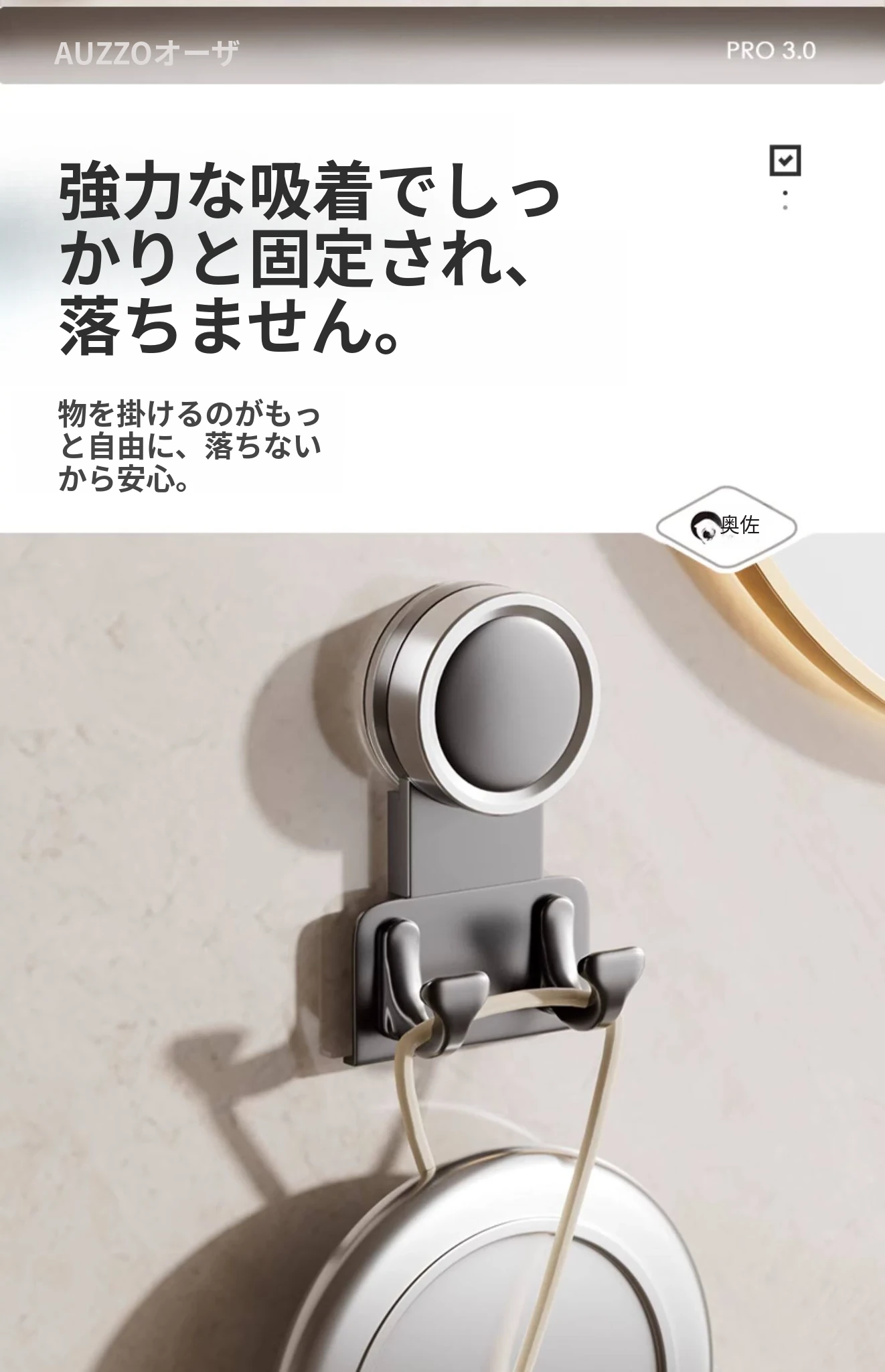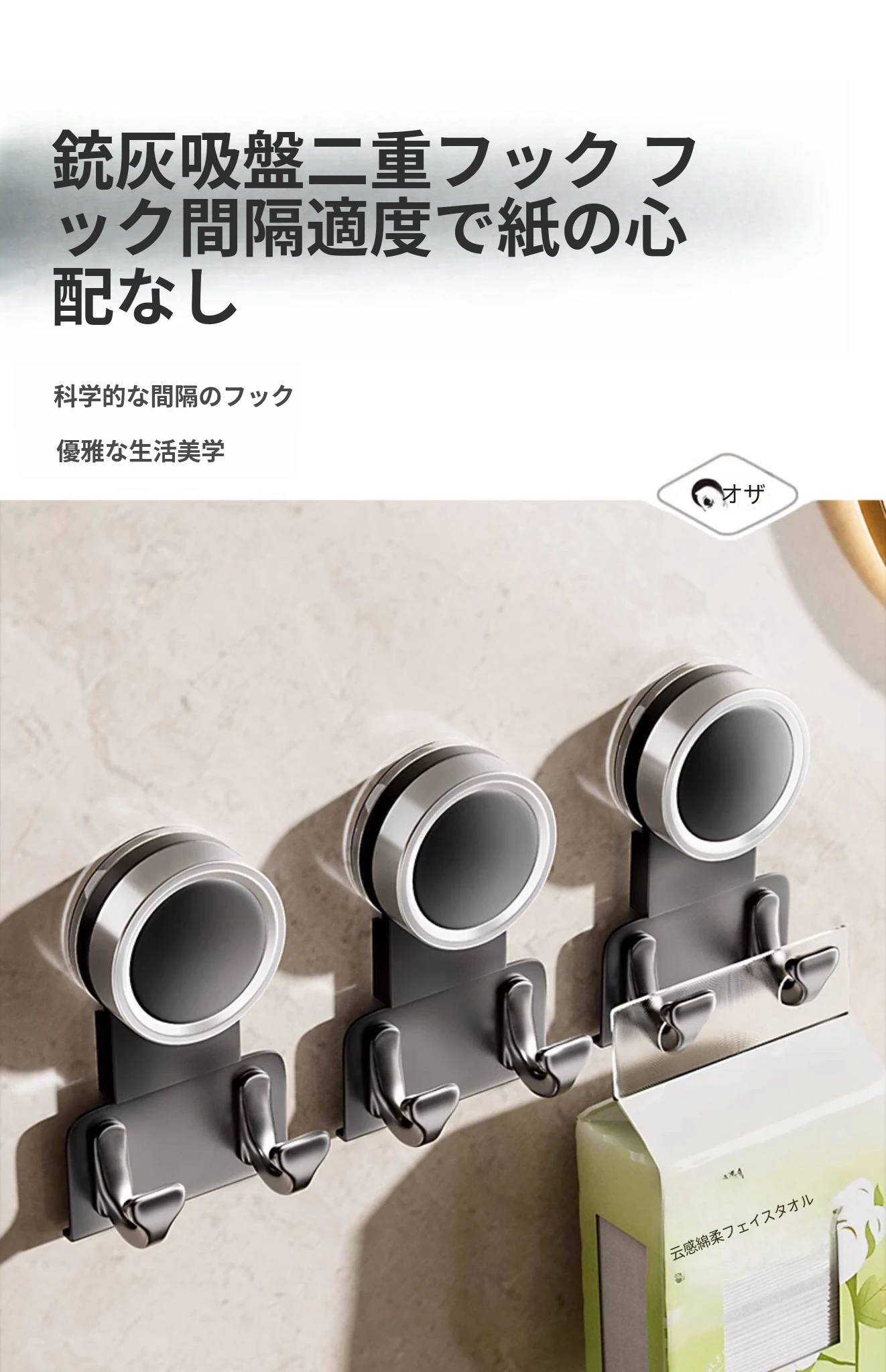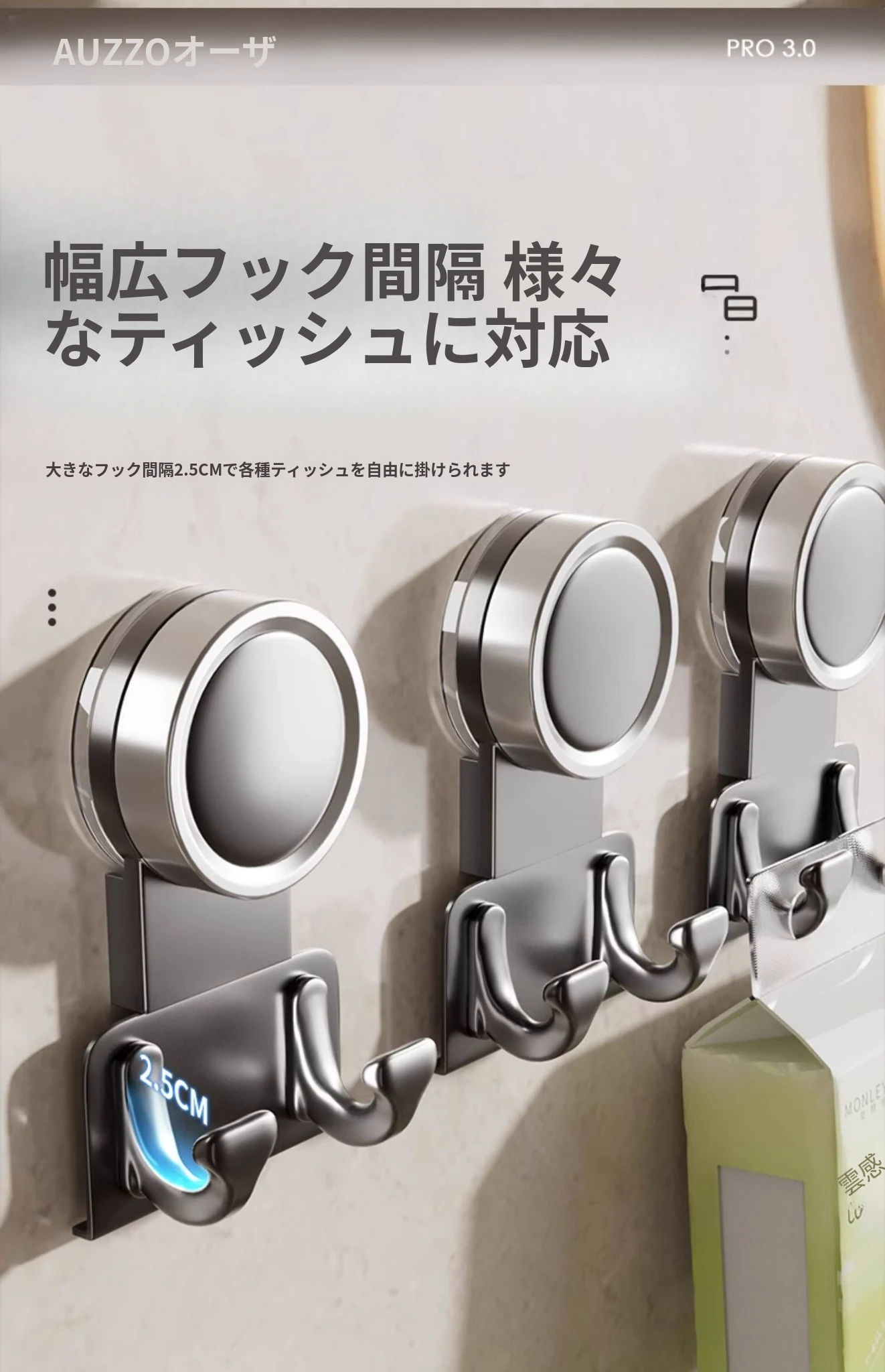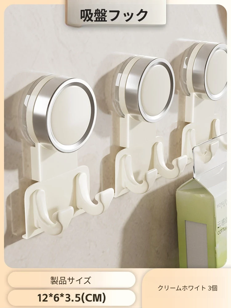【3個入り】吸盤フック【クリームホワイト】