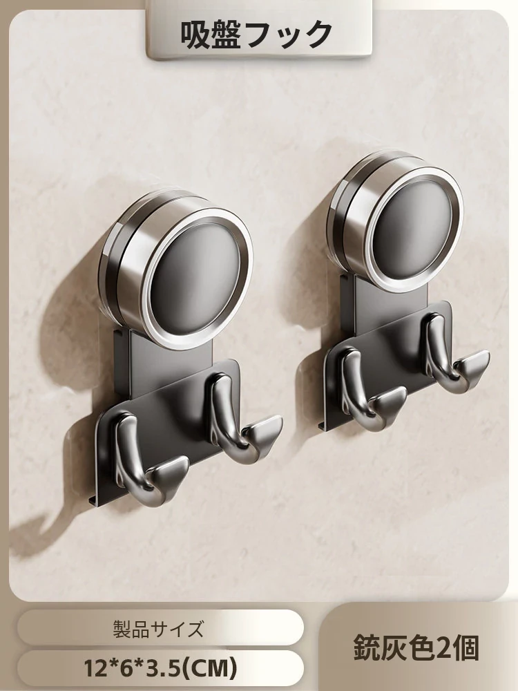 【2個入り】吸盤フック【ガンシップグレー】