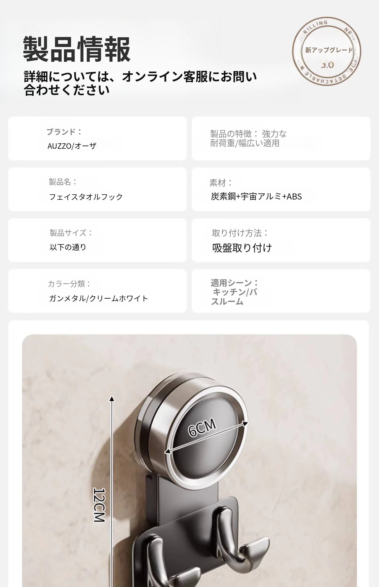 【1個入り】吸盤フック【クリームホワイト】