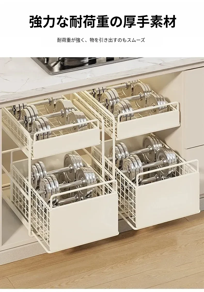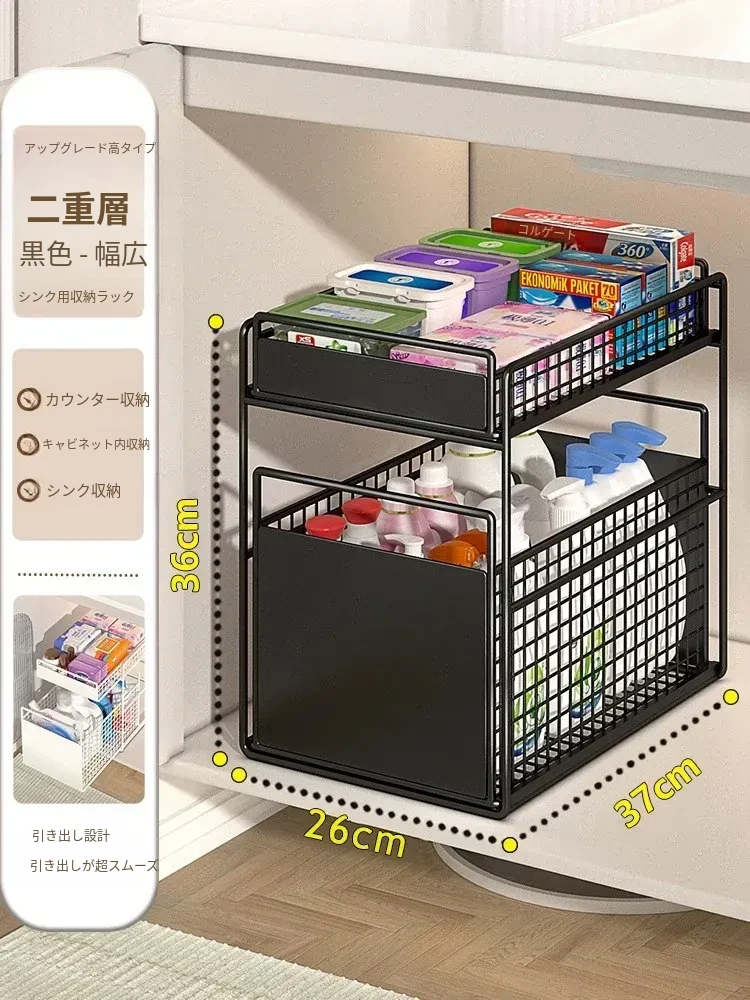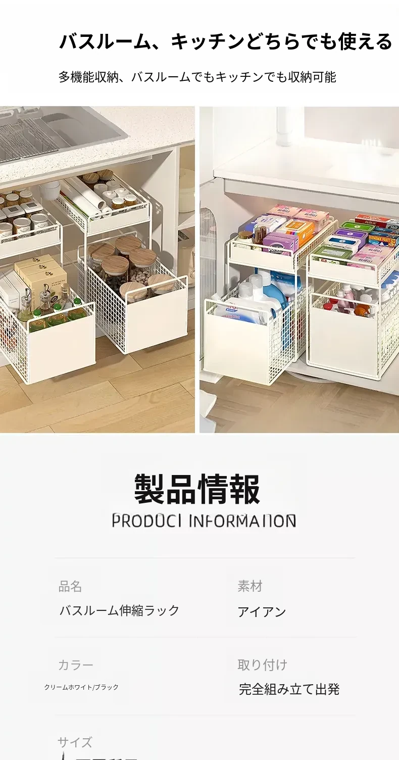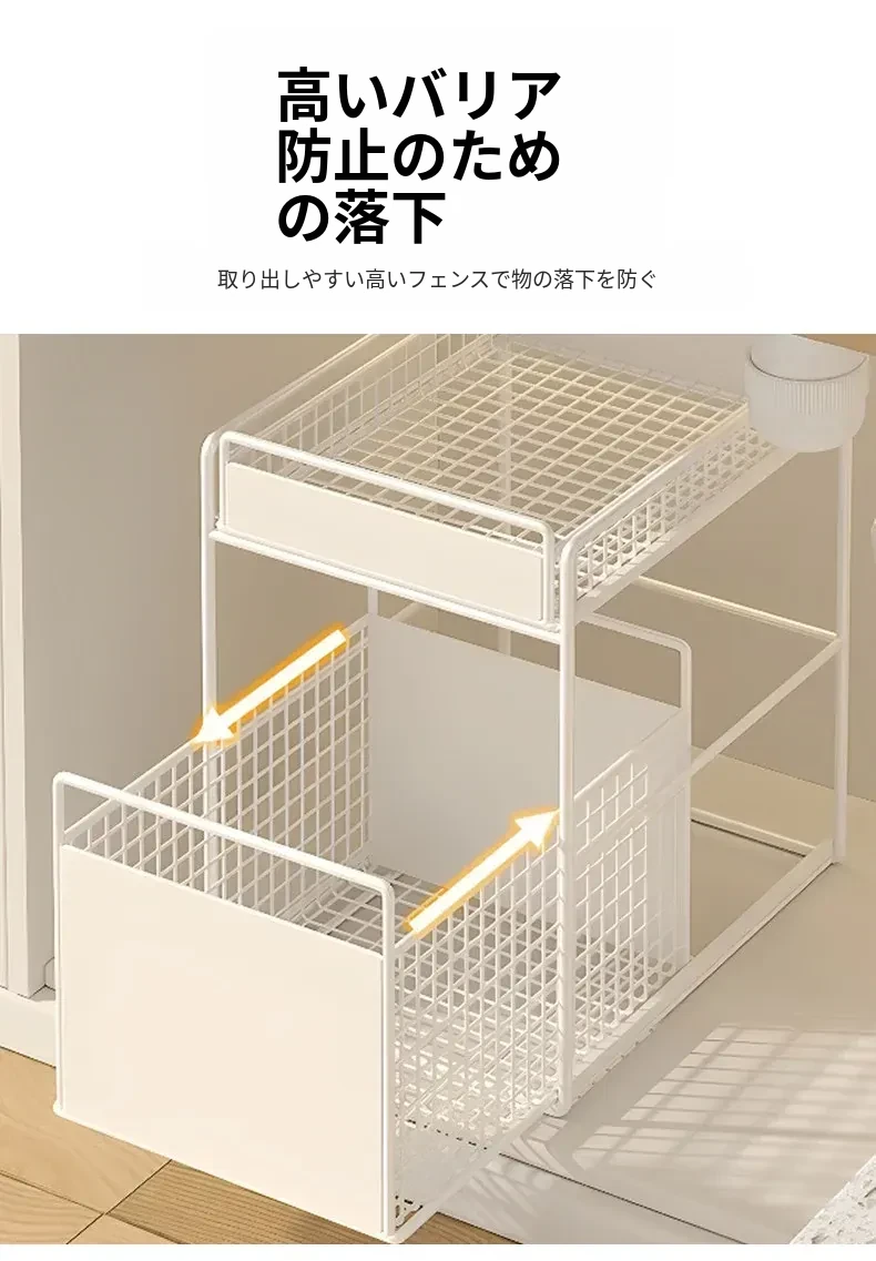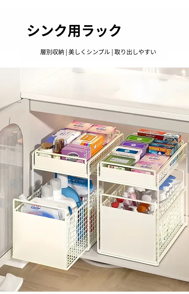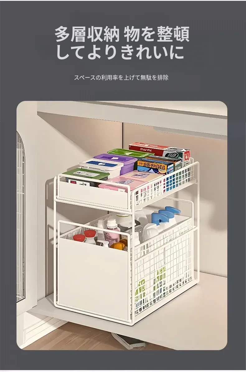 バスルームキャビネット下水槽用収納ラック キッチン引き出し式多段階専用ラタンバスケット トイレ収納分別ラックで、スッキリ整理整頓!あなたの生活空間を美しく整えます!