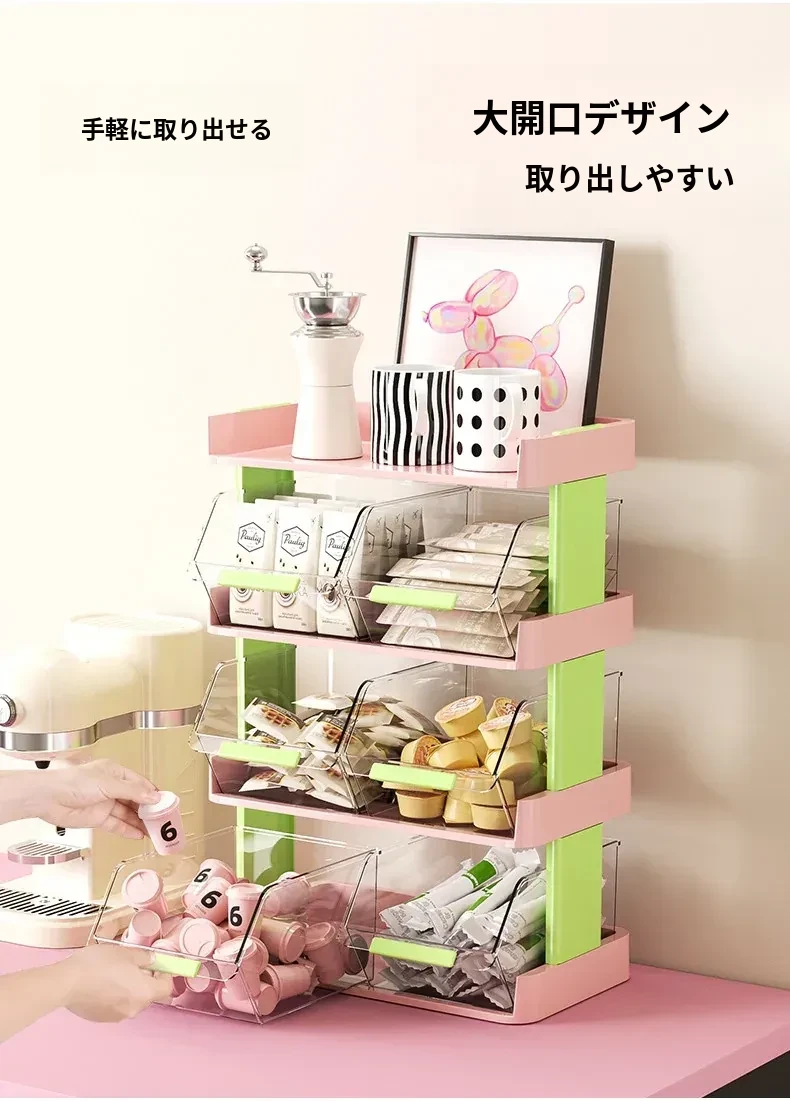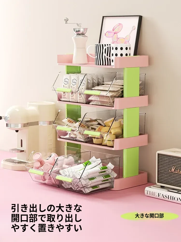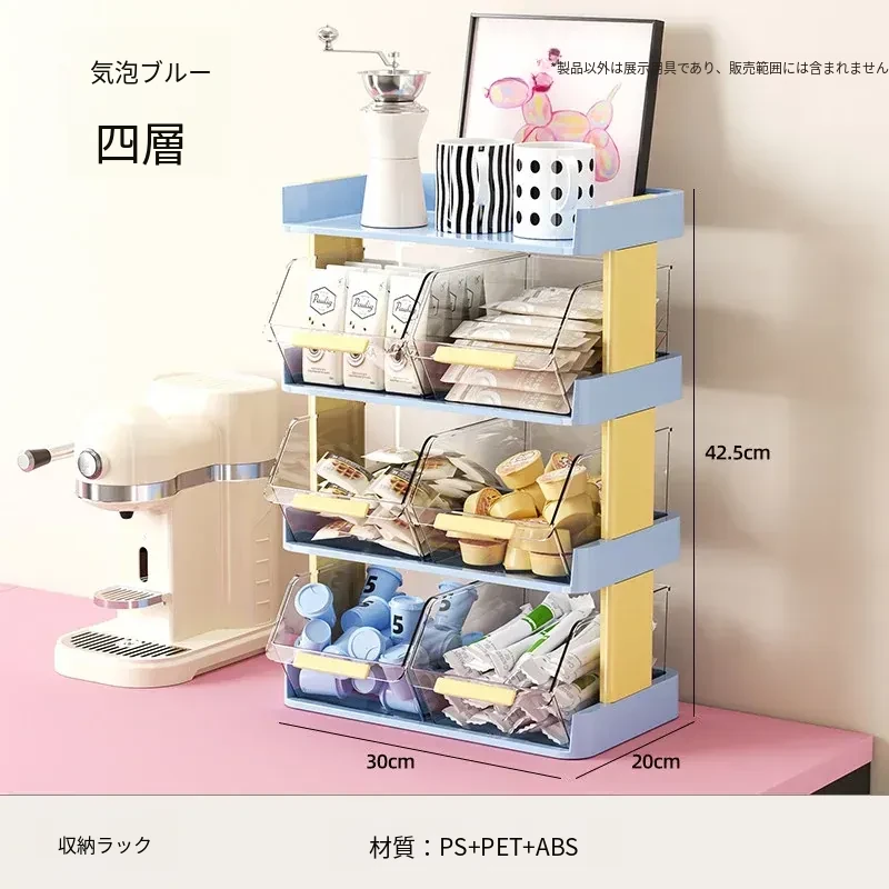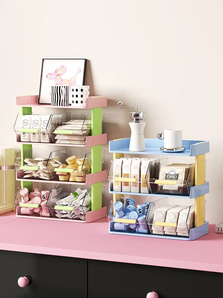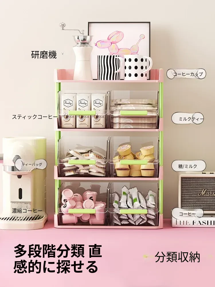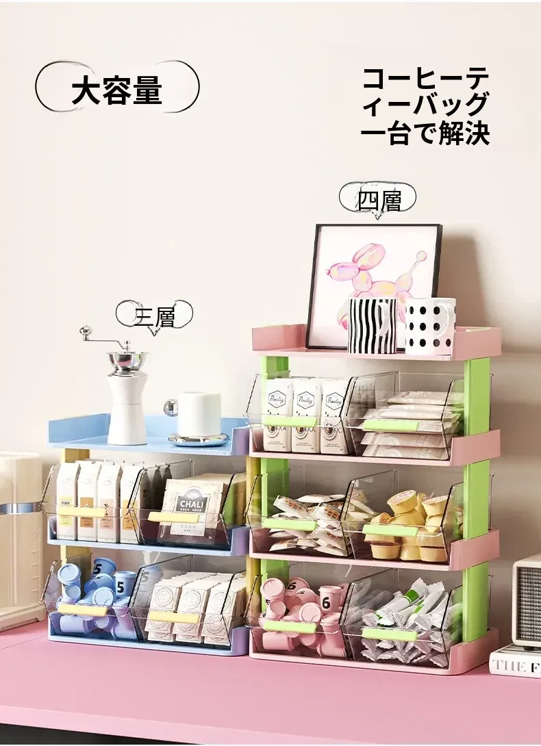 おしゃれなティーバッグ収納ボックス - オフィスやカフェのデスクに最適!多層設計でお茶やコーヒーカプセルをスッキリ整理。おやつや茶葉も一緒に収納できる便利アイテム!