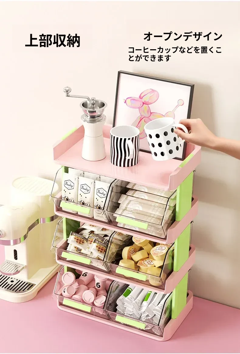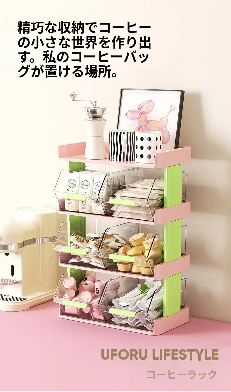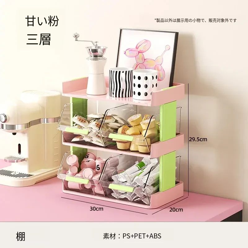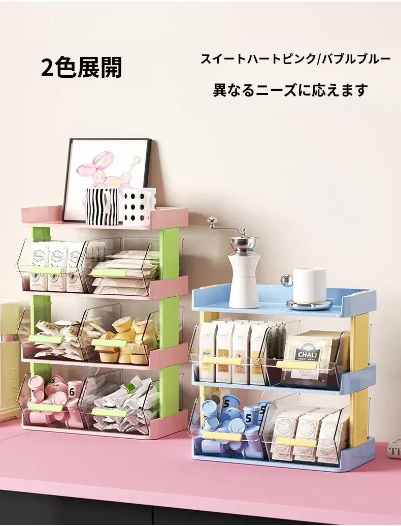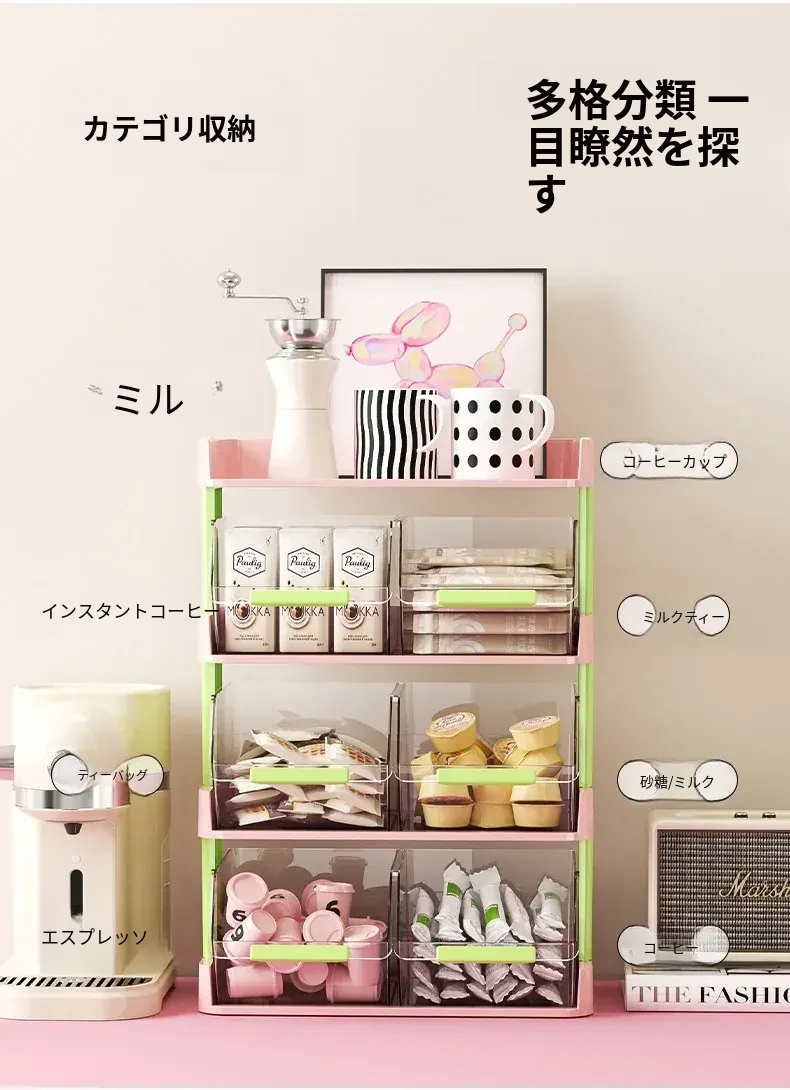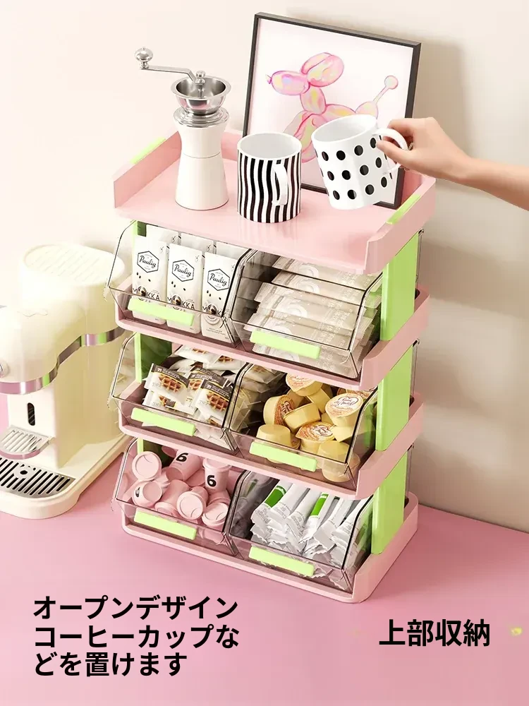 おしゃれなティーバッグ収納ボックス - オフィスやカフェのデスクに最適!多層設計でお茶やコーヒーカプセルをスッキリ整理。おやつや茶葉も一緒に収納できる便利アイテム!