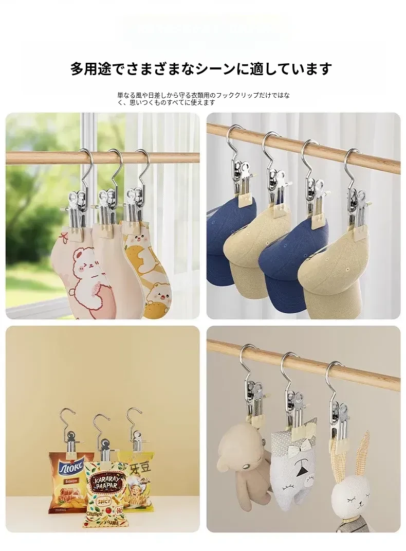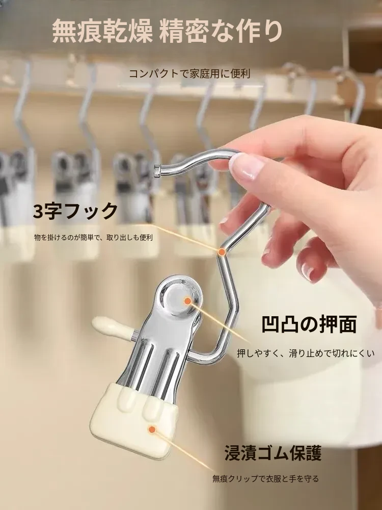 家庭用無痕衣類クリップ - 革新的な多機能ポータブルフック付き!靴下やパンツを簡単に干せる便利なクリップ。すっきり整理整頓できる洗濯の必需品!