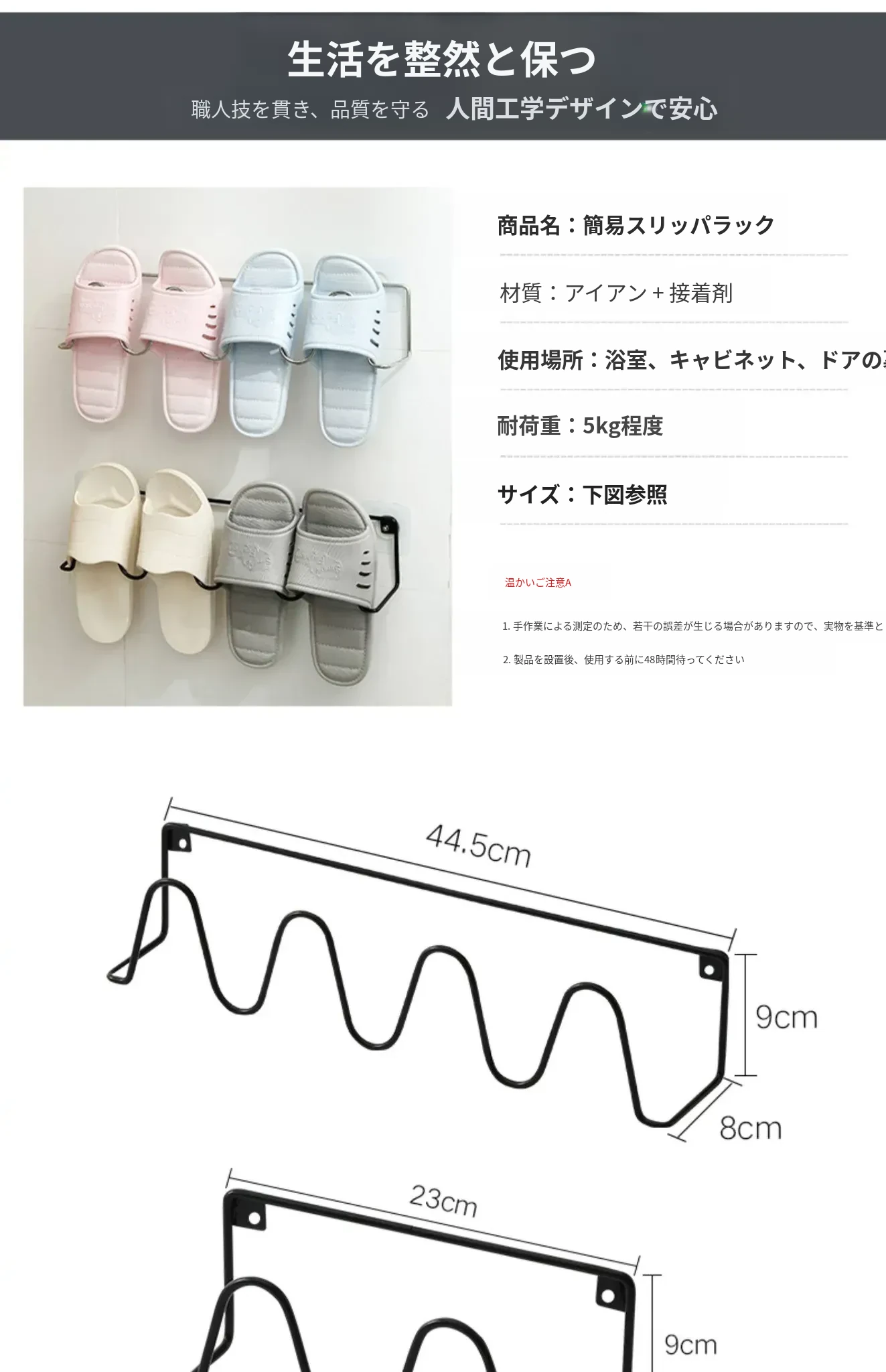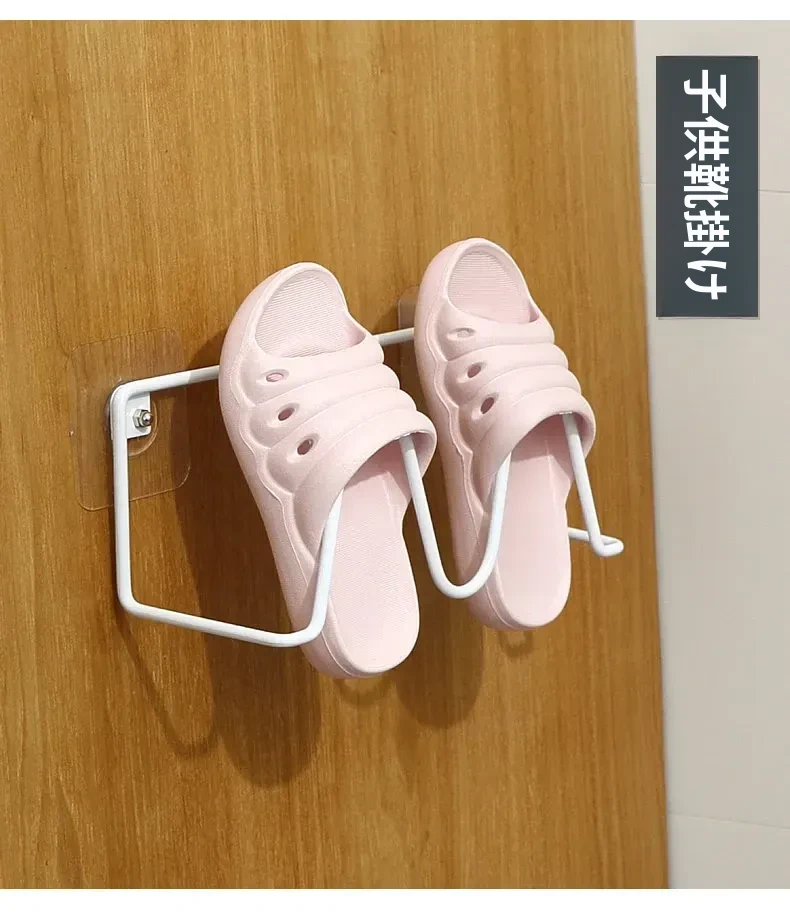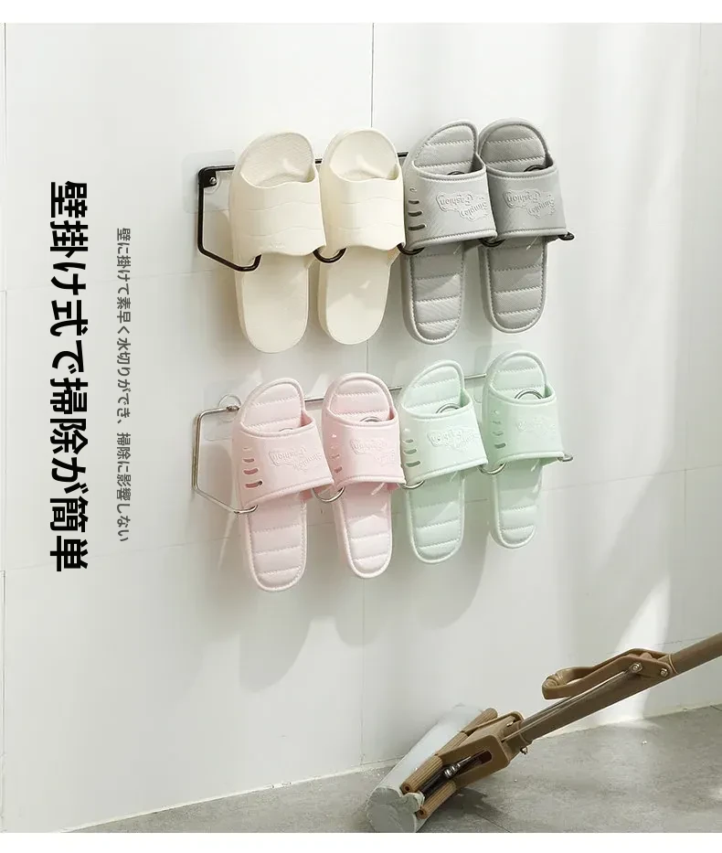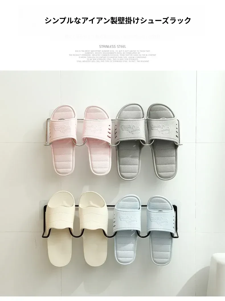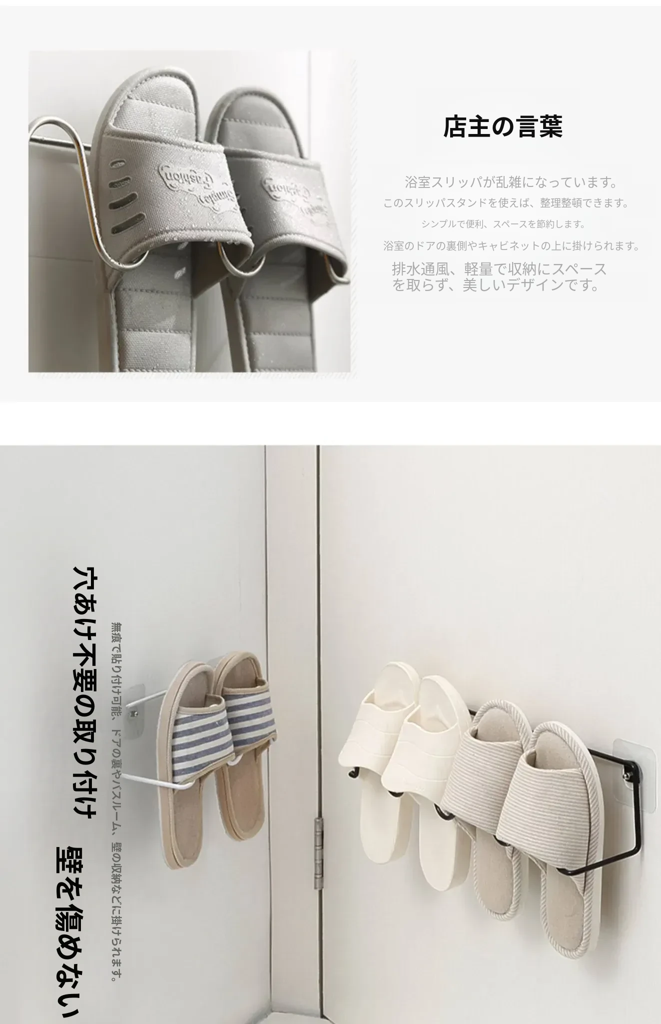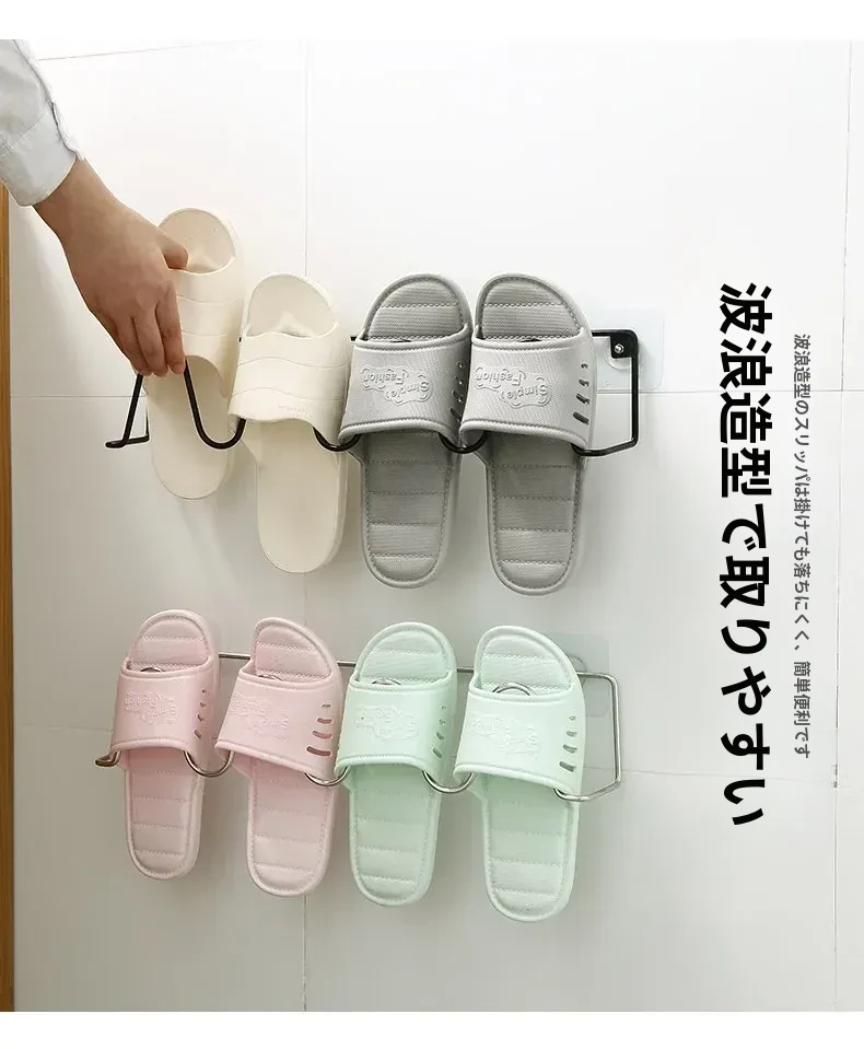 トイレ用スリッパラック - 壁掛け式で簡単取り付け!水切れが良く、清潔感を保つ収納グッズ。ドアの裏にもぴったりフィットし、省スペースでおしゃれなバスルームを実現!