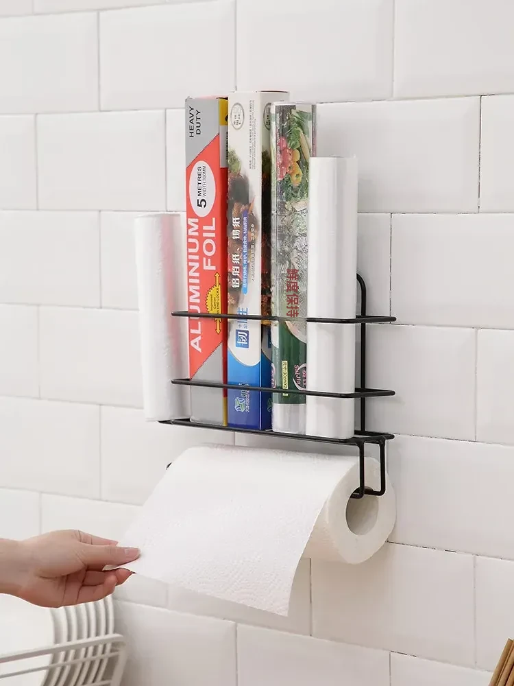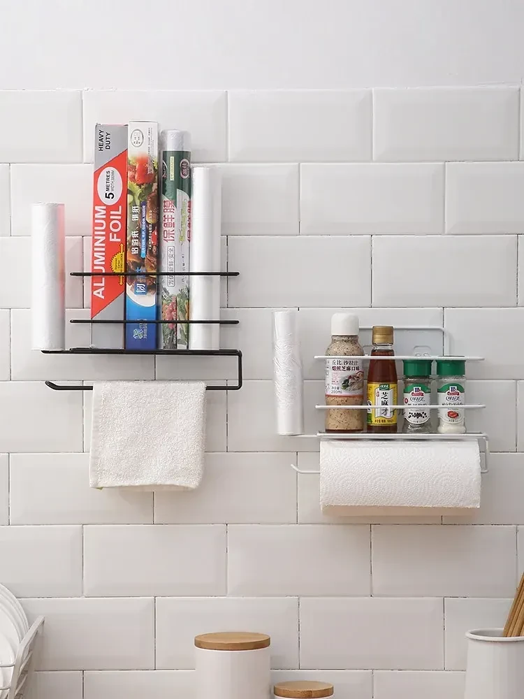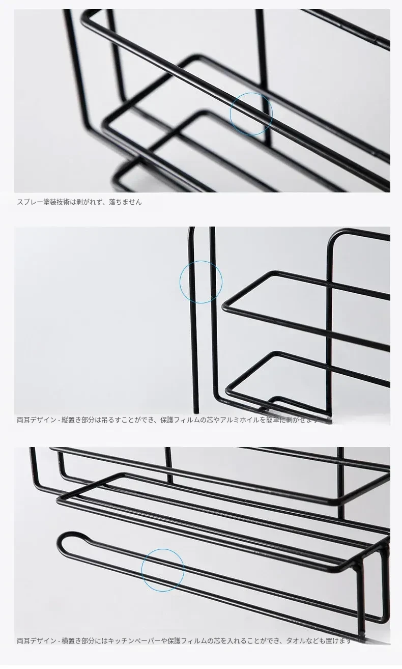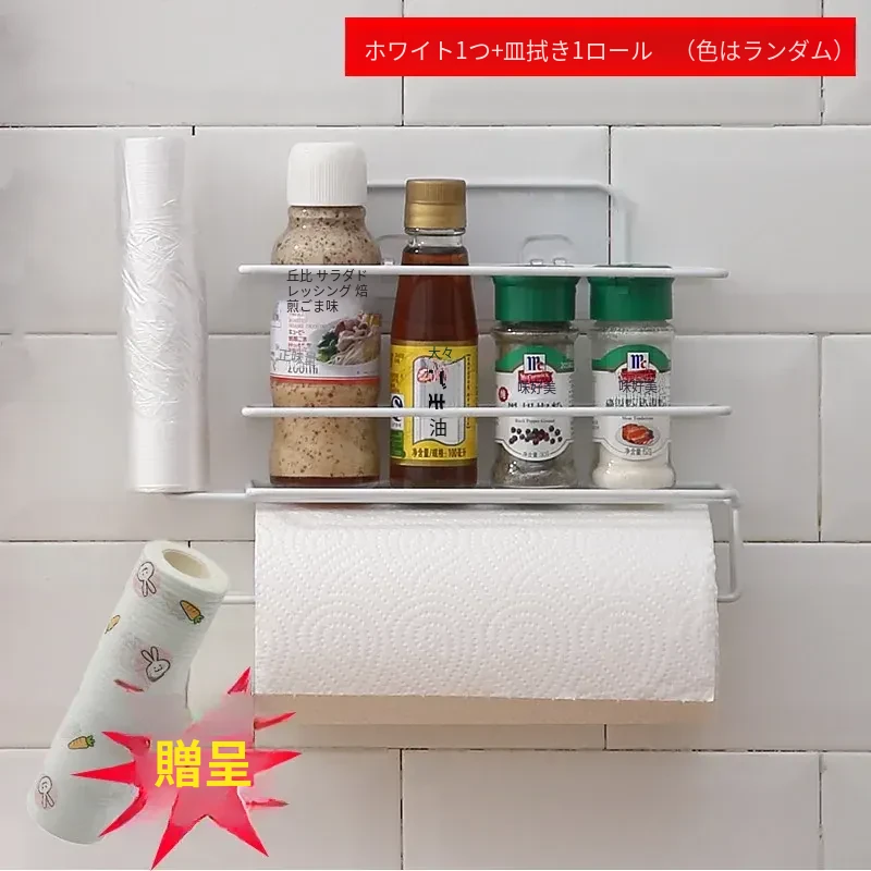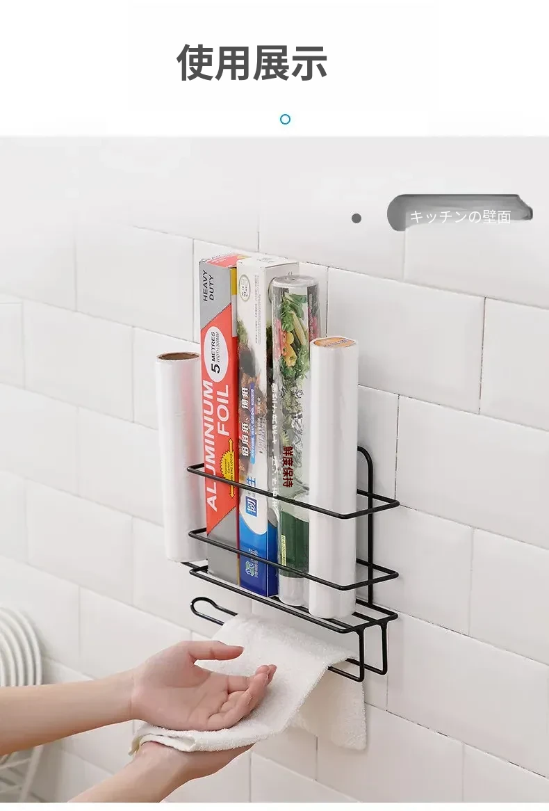 穴あけ不要!冷蔵庫横にぴったりフィットする保存袋&キッチンペーパー収納ラック - スペースを有効活用して、すっきりとしたキッチンを実現!