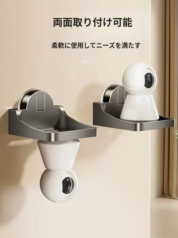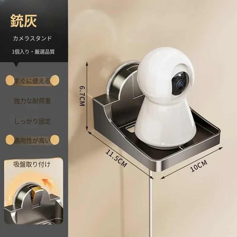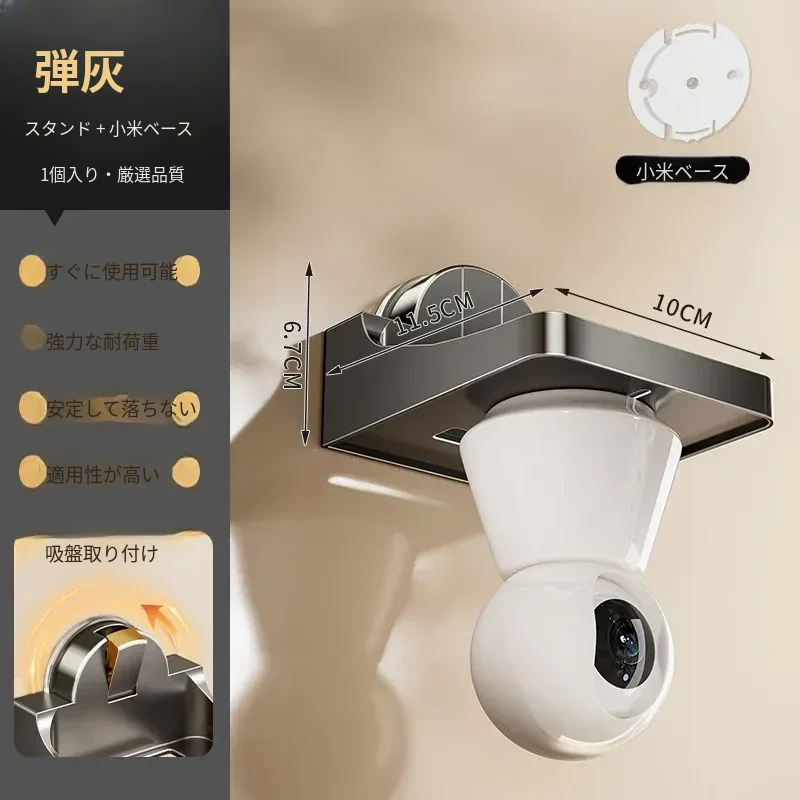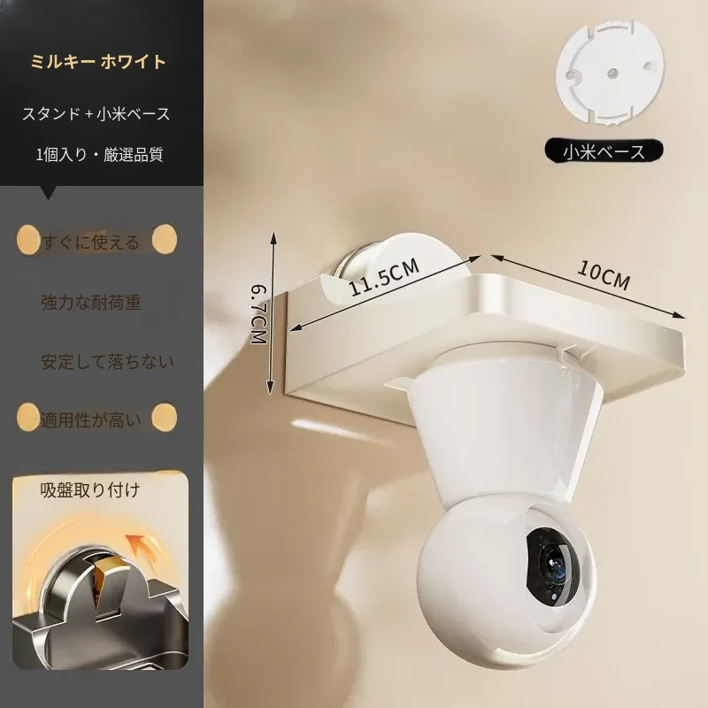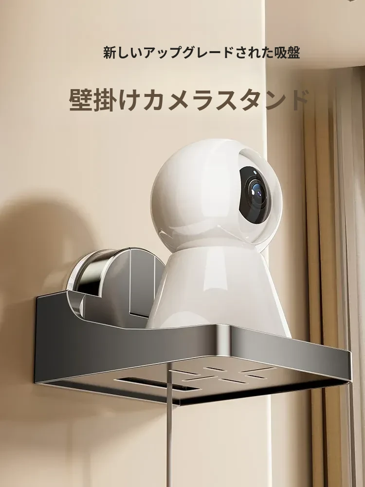 穴あけ不要!小米・萤石カメラ対応の吸盤式スタンド - 室内外の壁に簡単設置、便利な収納スペースを提供!