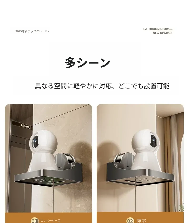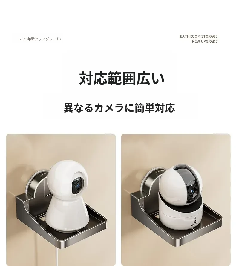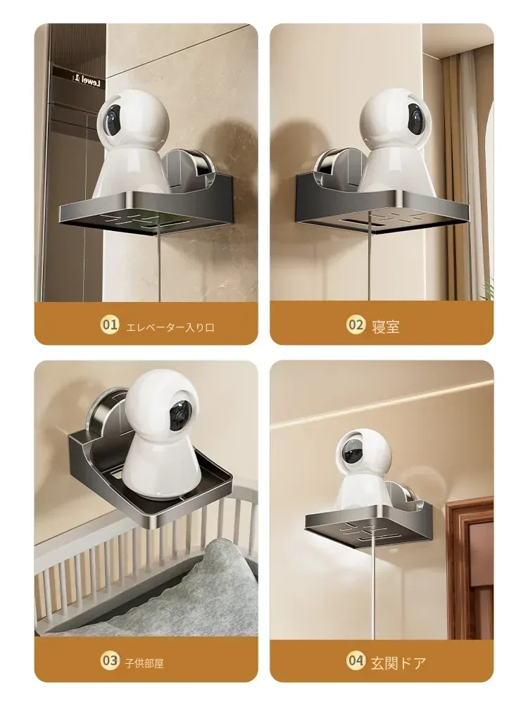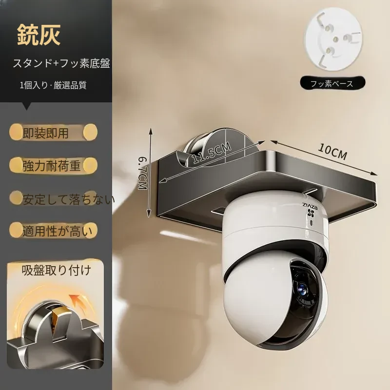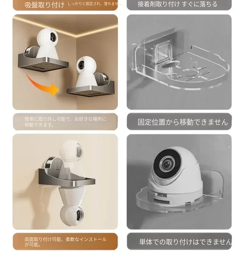 穴あけ不要!小米・萤石カメラ対応の吸盤式スタンド - 室内外の壁に簡単設置、便利な収納スペースを提供!