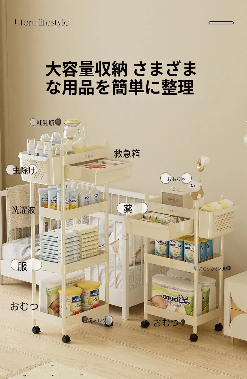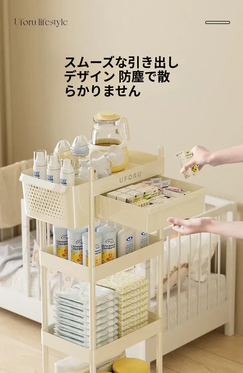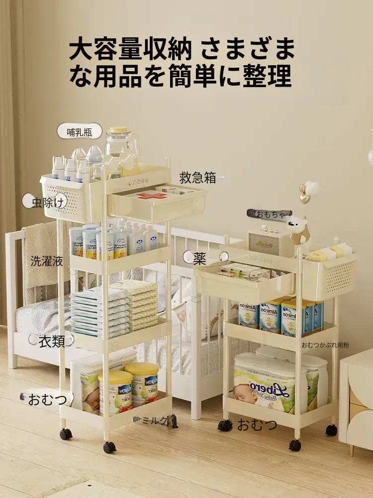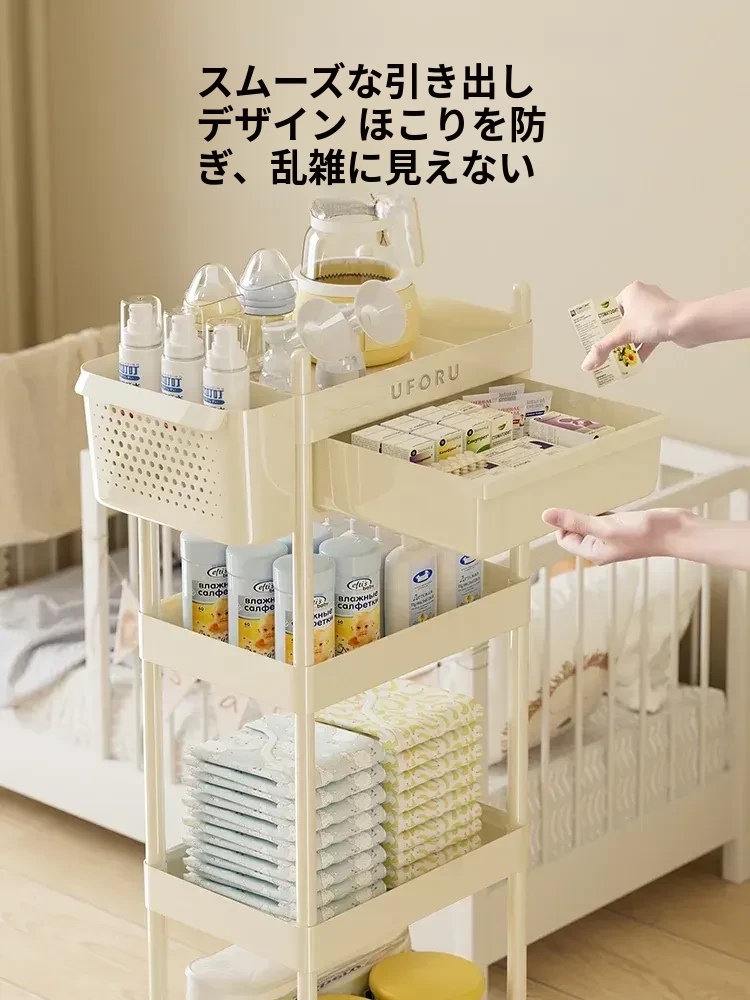 赤ちゃん用品収納ラック 移動式ベビーカー 寝室やベッドサイドに最適な引き出し収納キャビネット 赤ちゃんの授乳台としても使える便利な収納家具