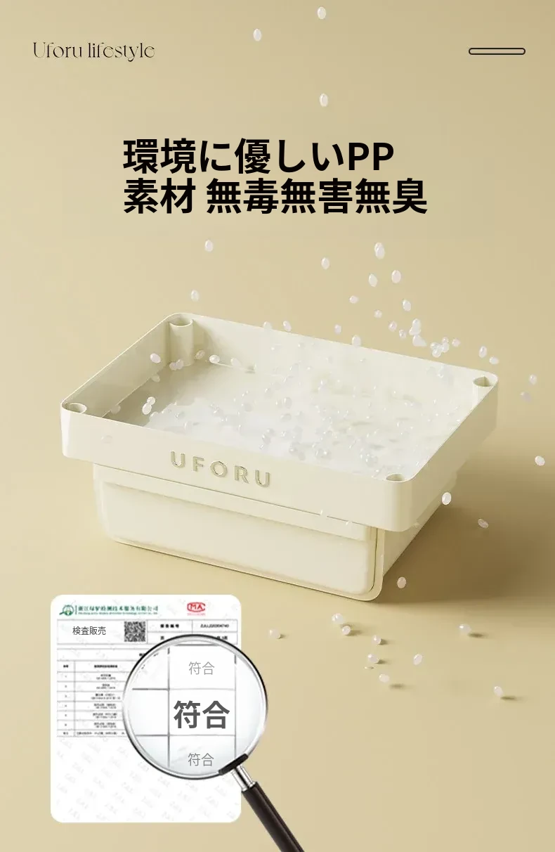 クリームホワイト-2段【引き出し付き】移動キャスター