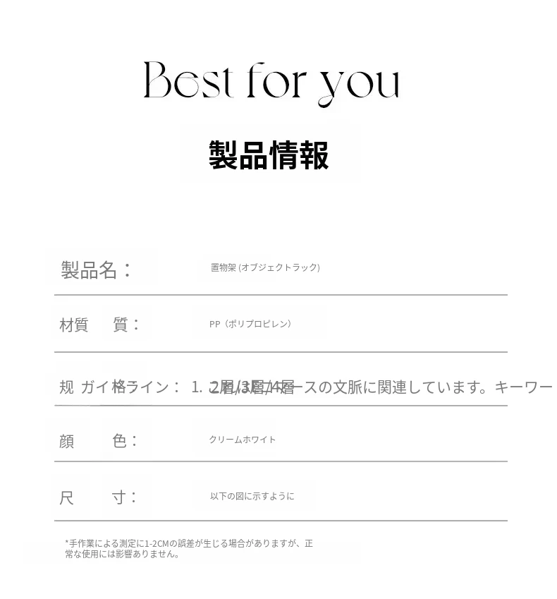 クリームホワイト-4段【引き出し付き】移動キャスター