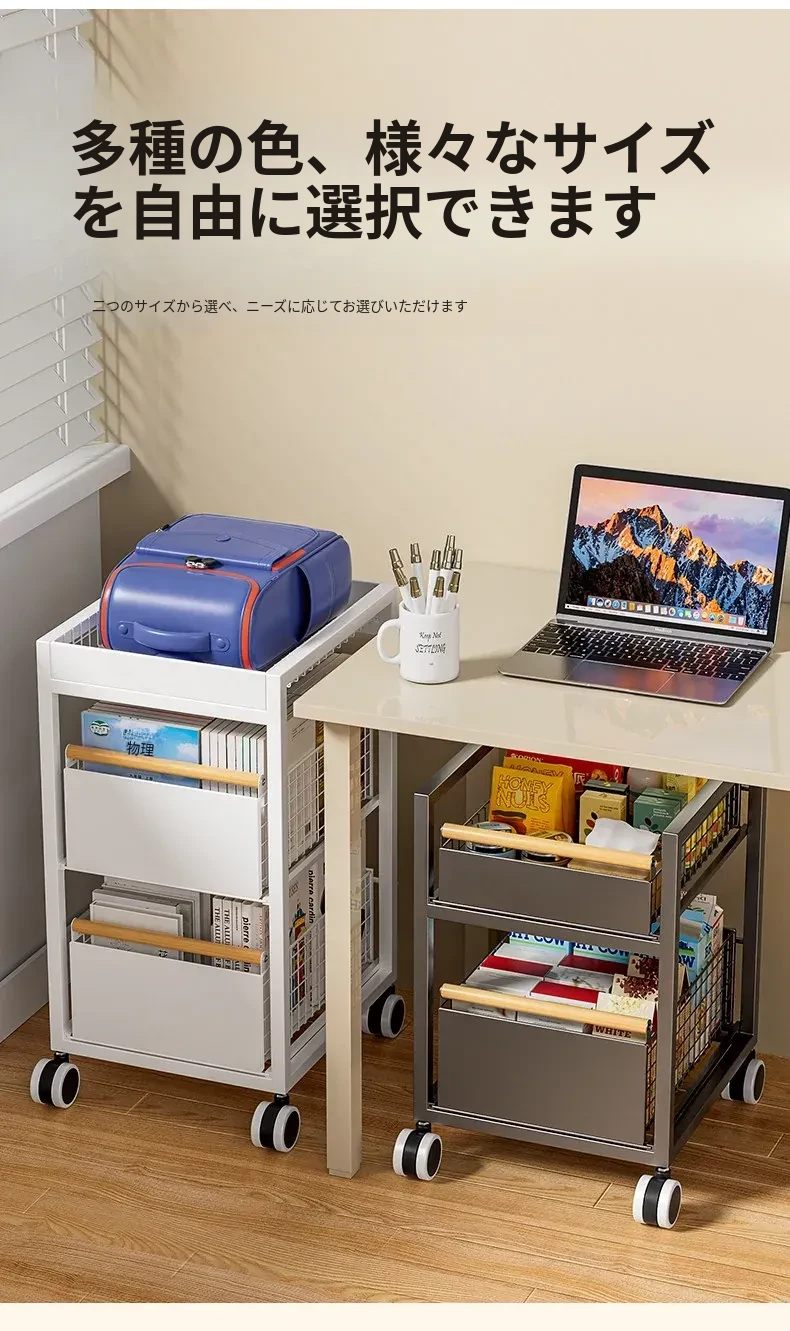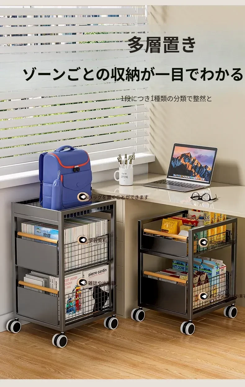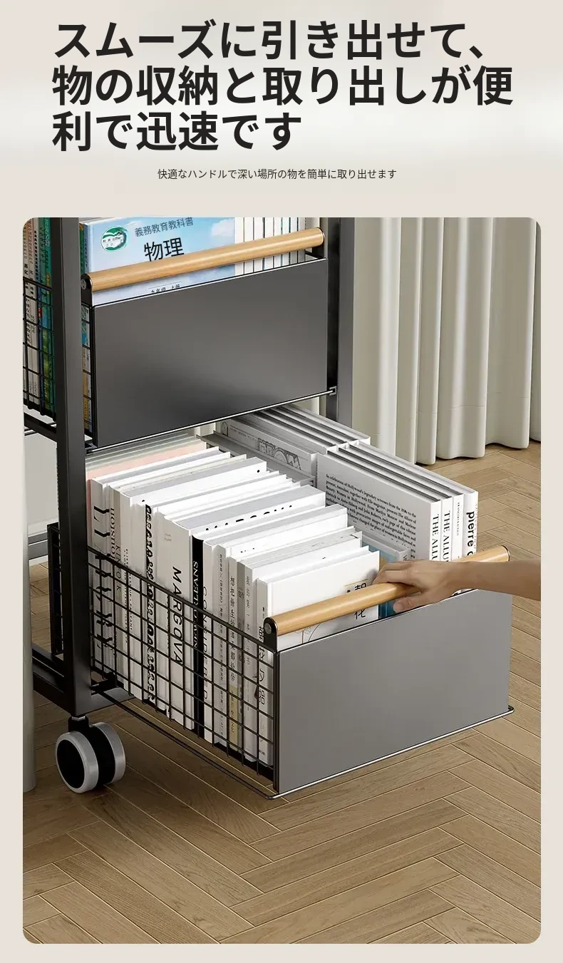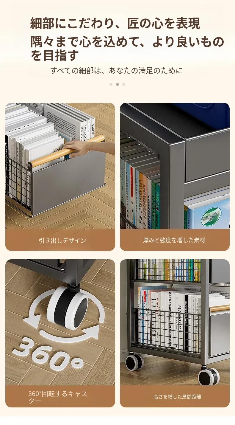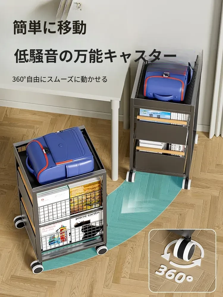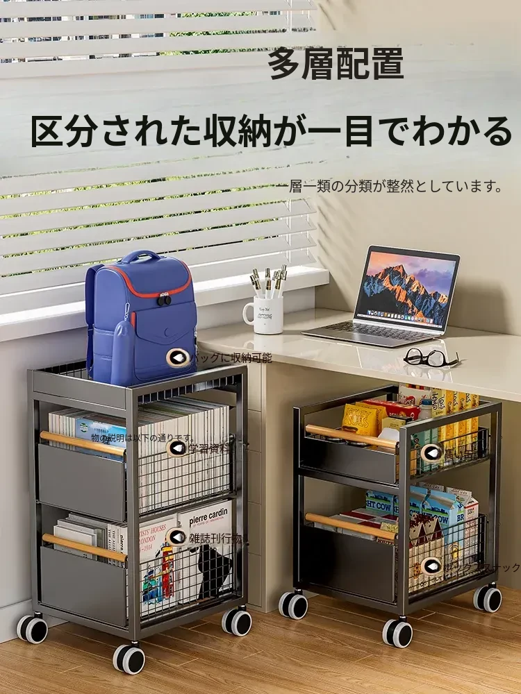 移動式書籍収納ラック - 宿舎のデスクの下にぴったり!三段階のスペースで本やスナックをすっきり整理。デザインもスタイリッシュで、どんな部屋にもマッチ!