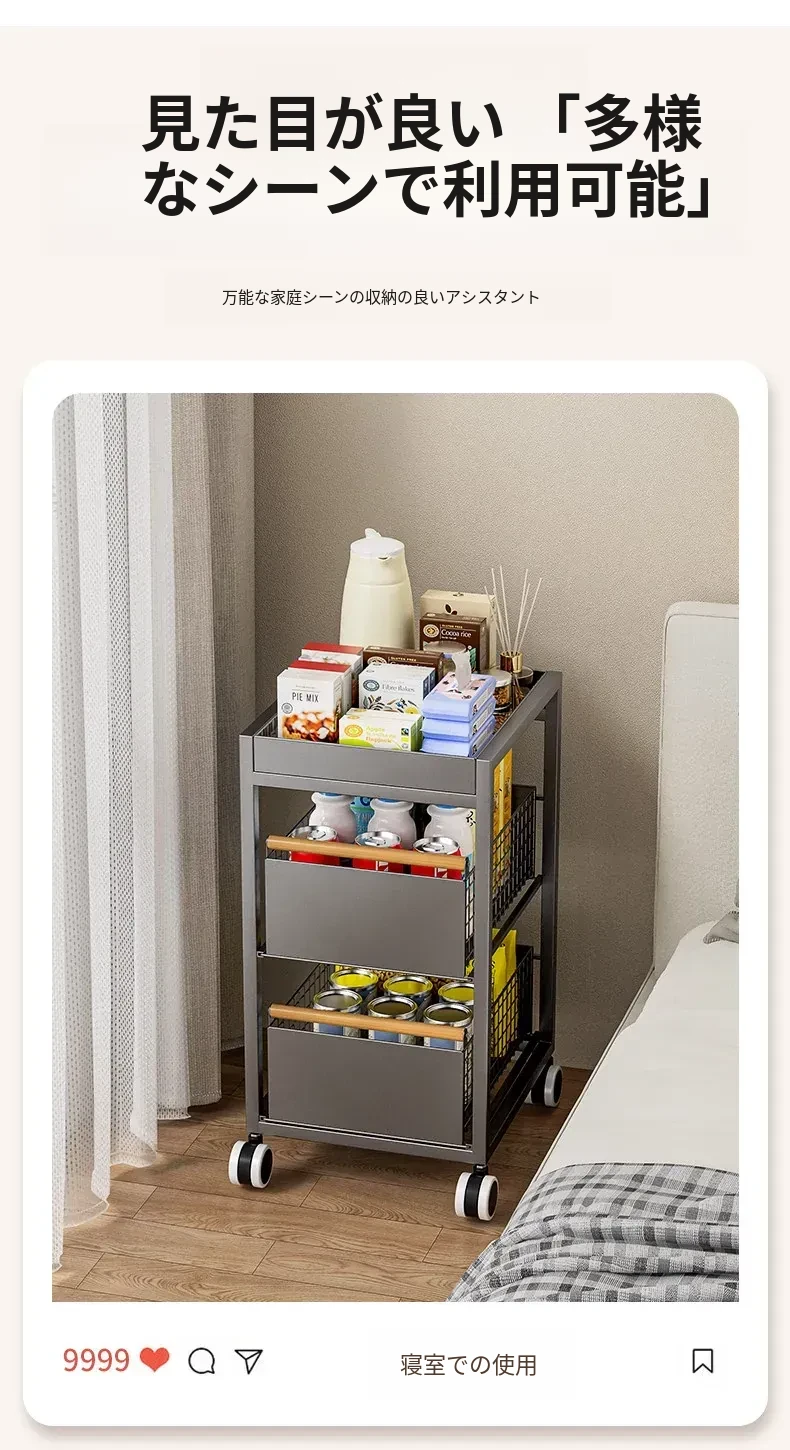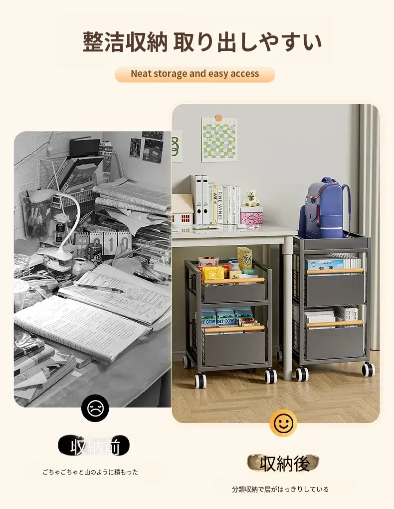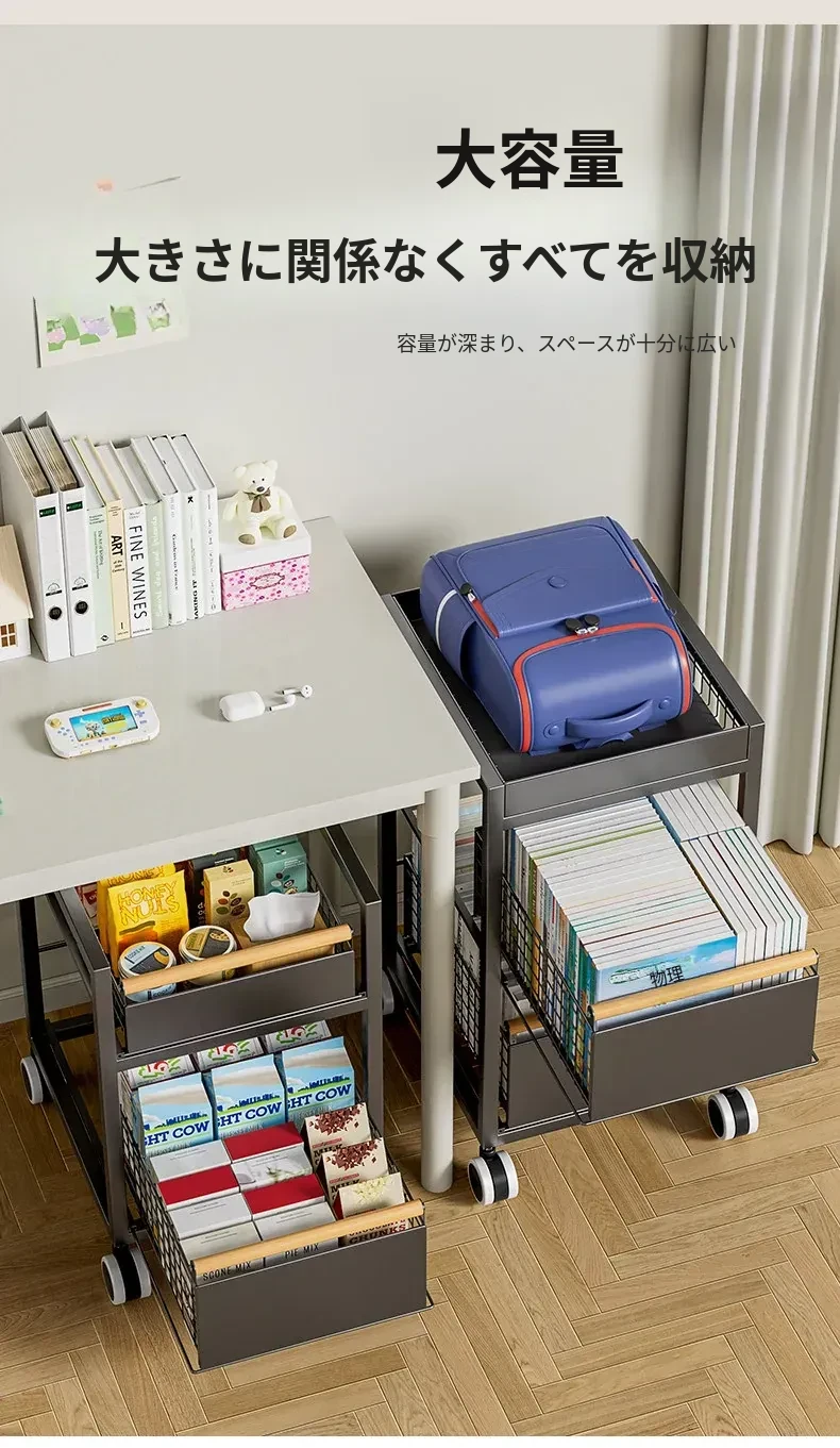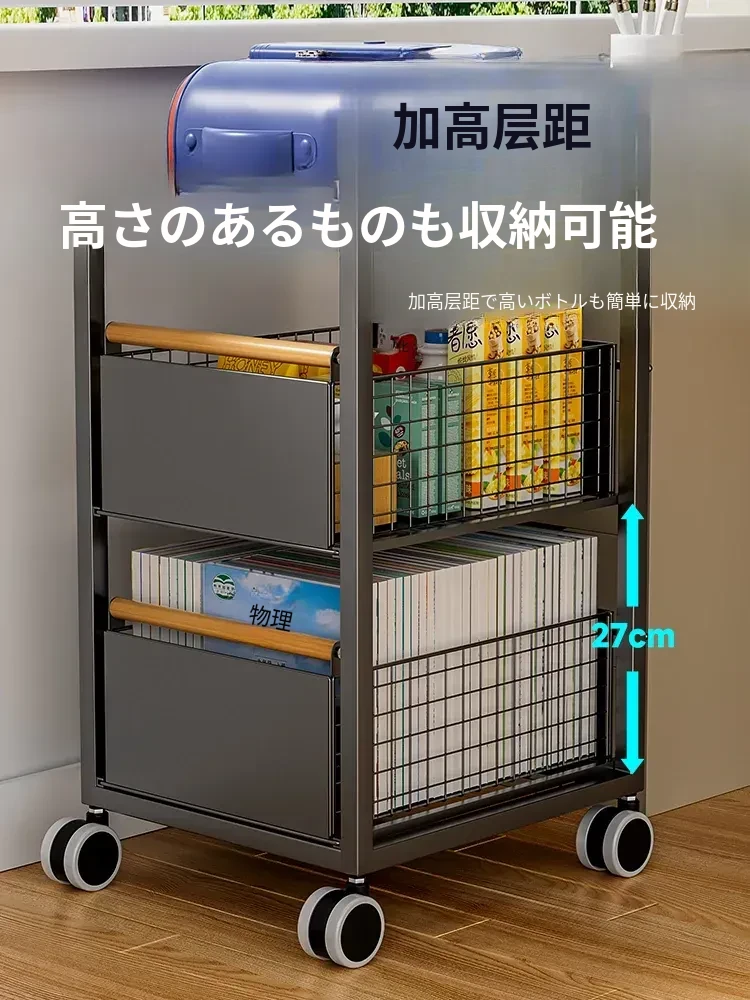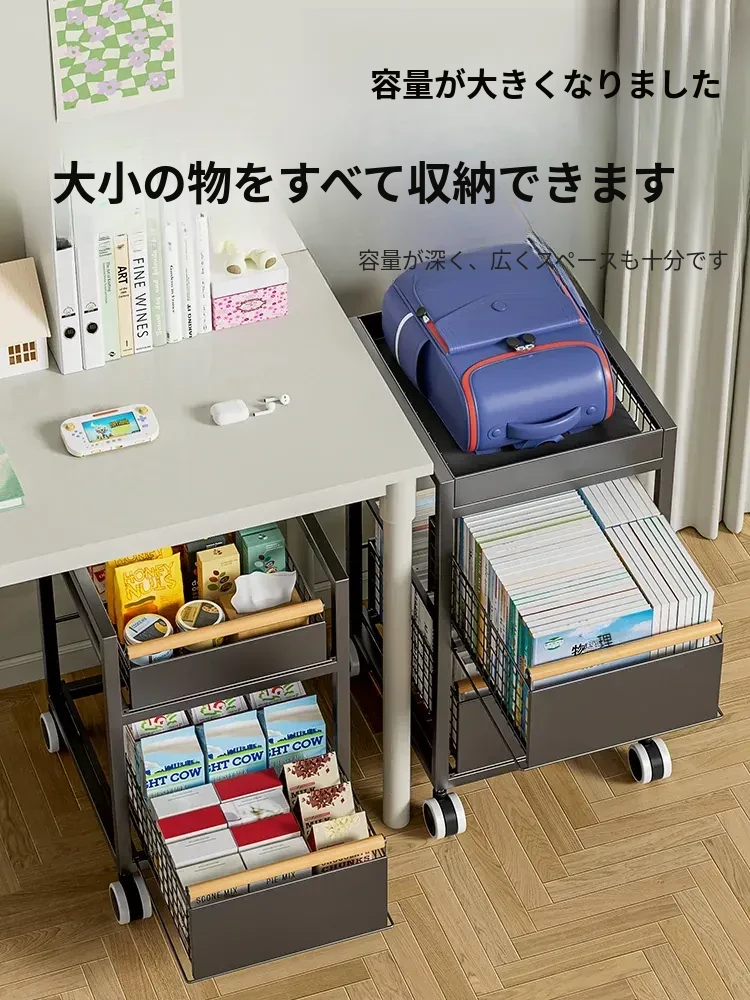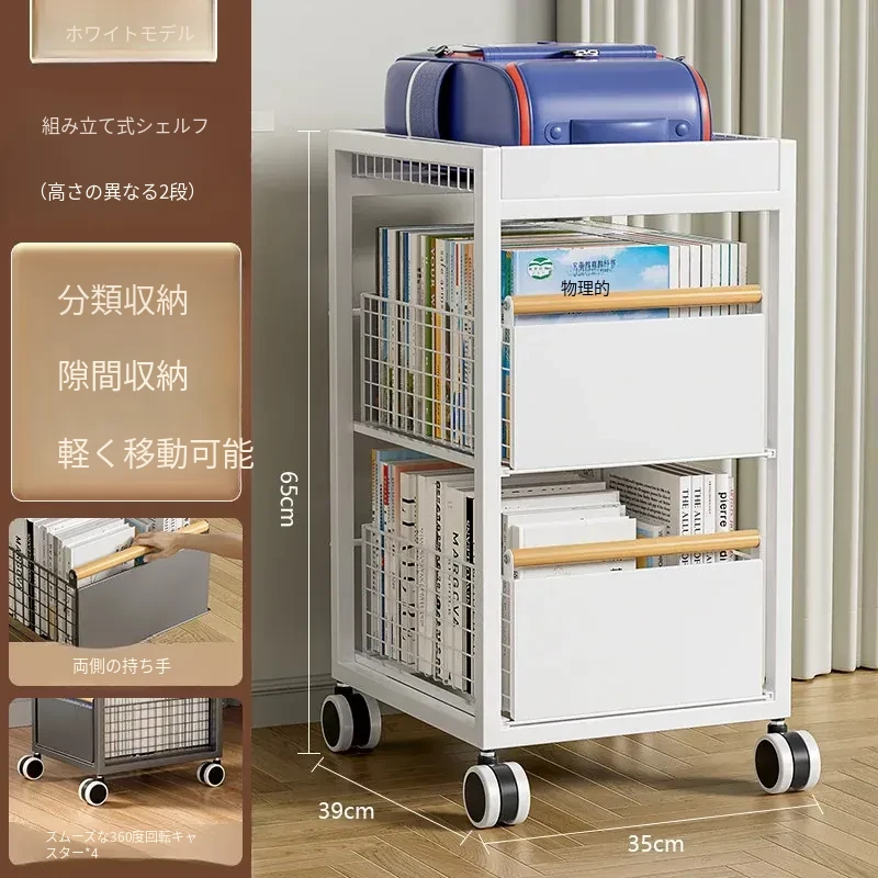 移動式書籍収納ラック - 宿舎のデスクの下にぴったり!三段階のスペースで本やスナックをすっきり整理。デザインもスタイリッシュで、どんな部屋にもマッチ!