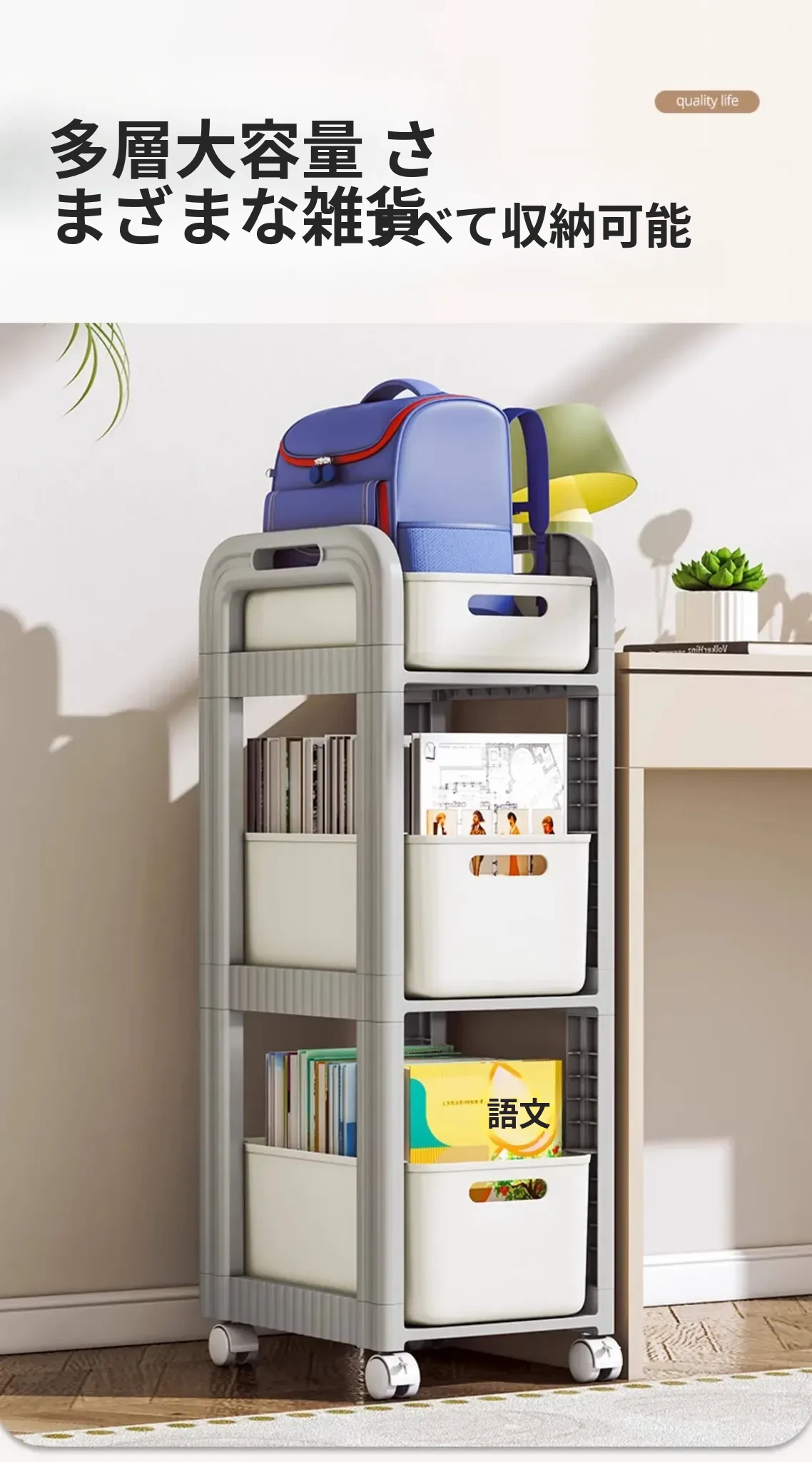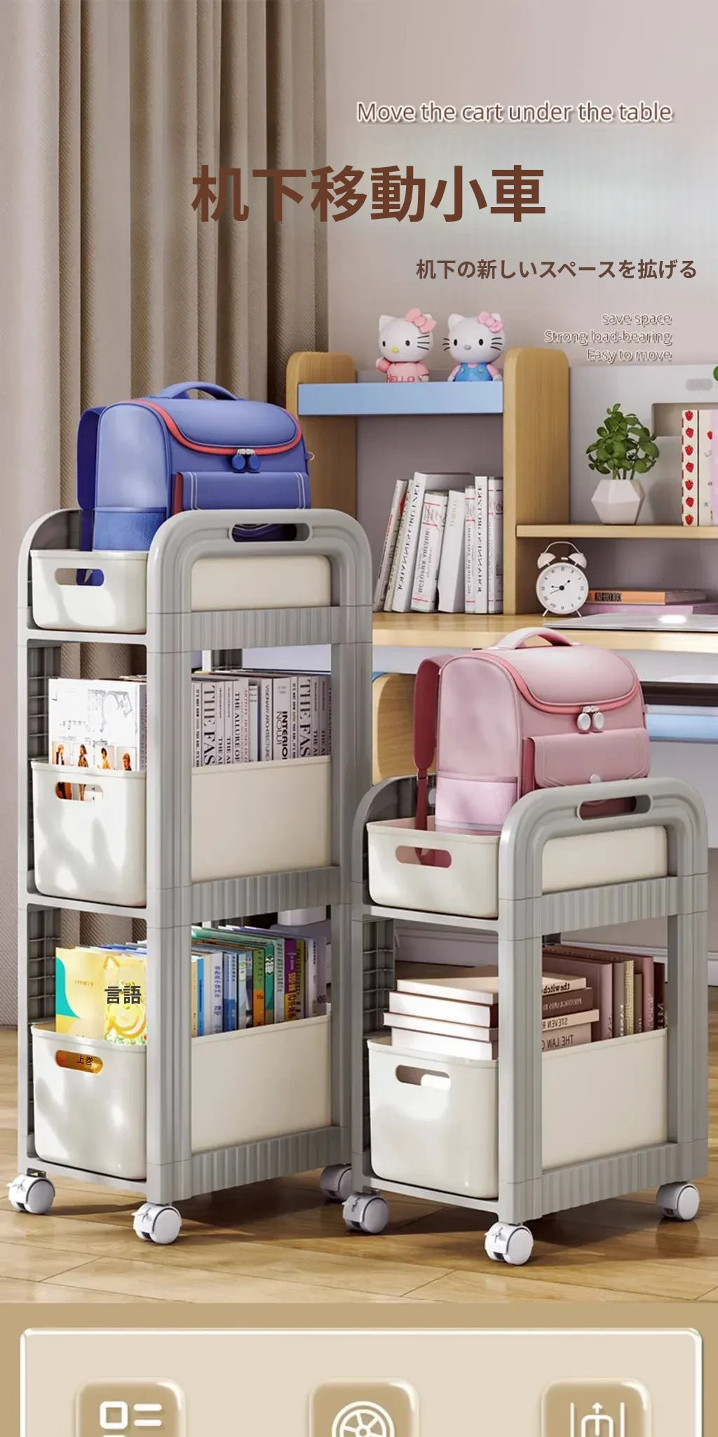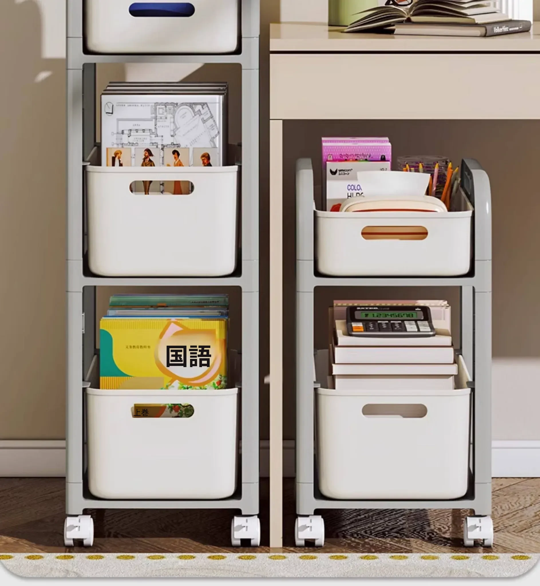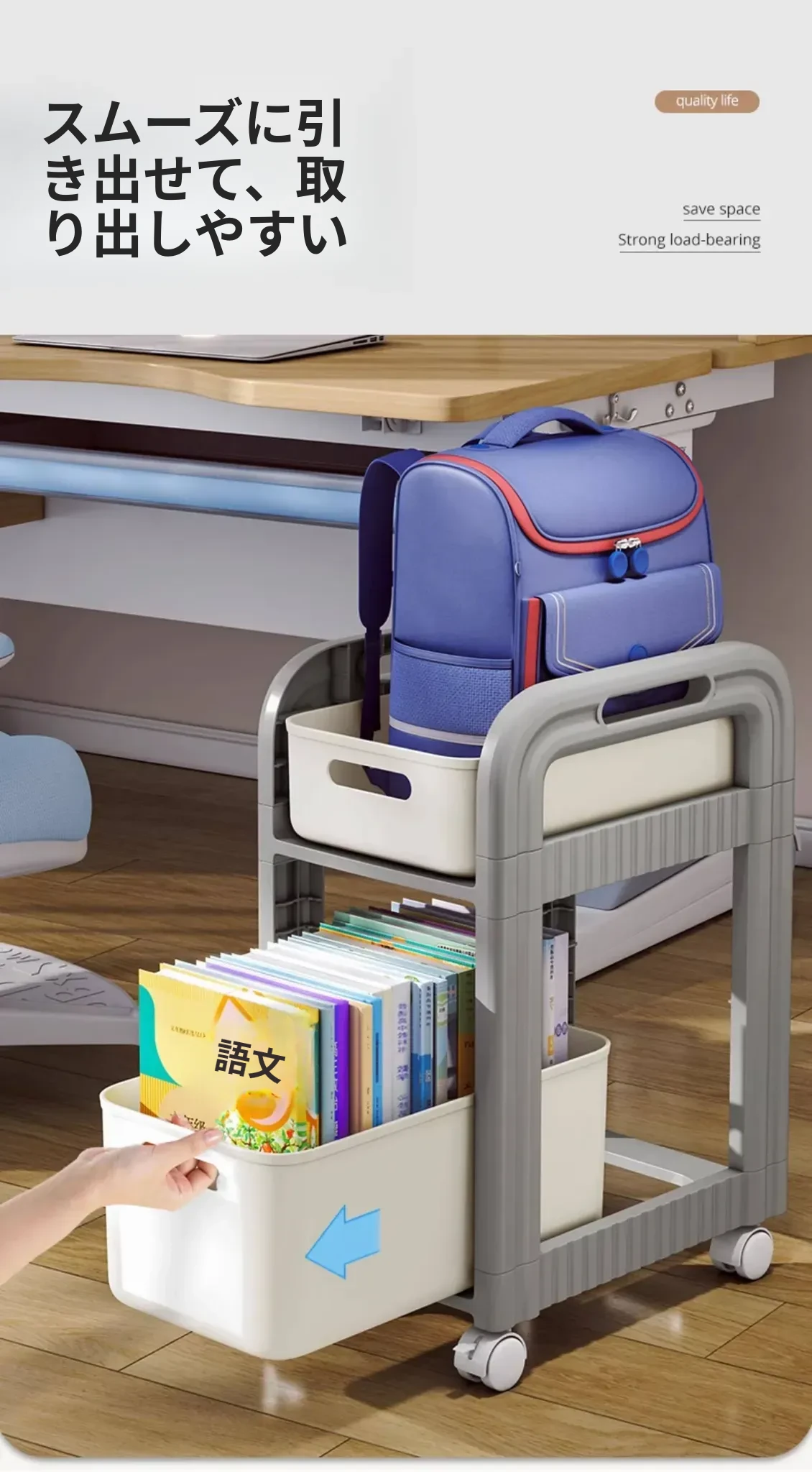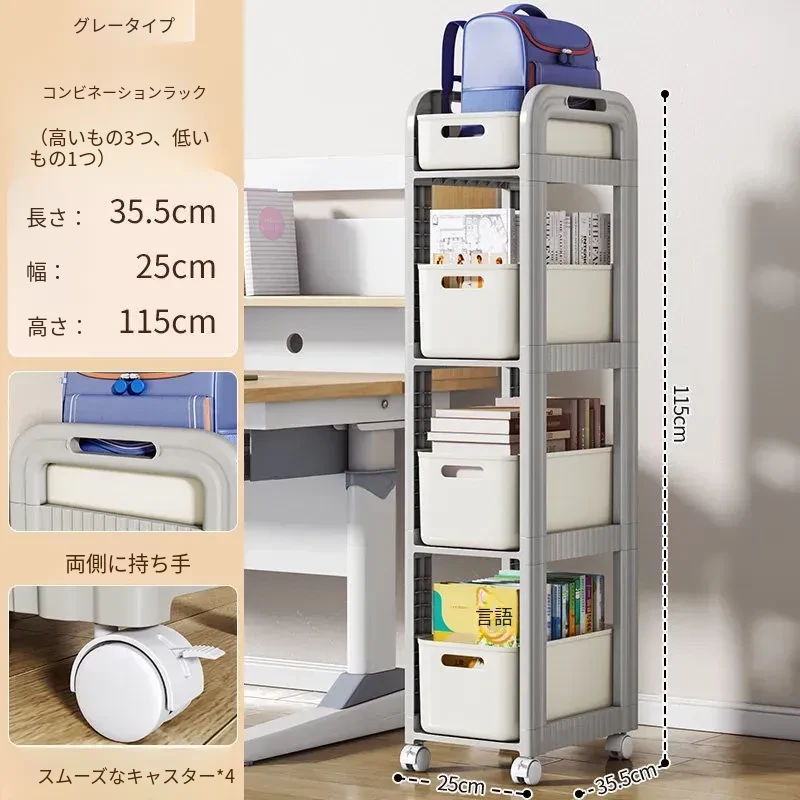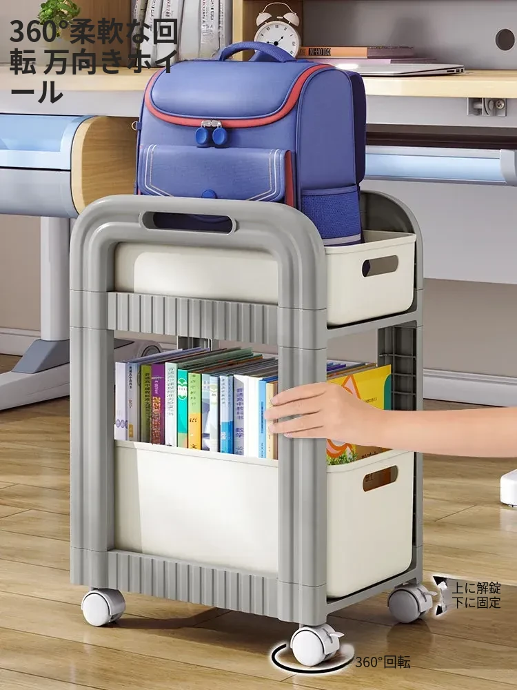 移動式ブックシェルフキャスター付き!デスク下にピッタリな収納ラックで、勉強道具や本をすっきり整理!学習効率アップの必需品です。