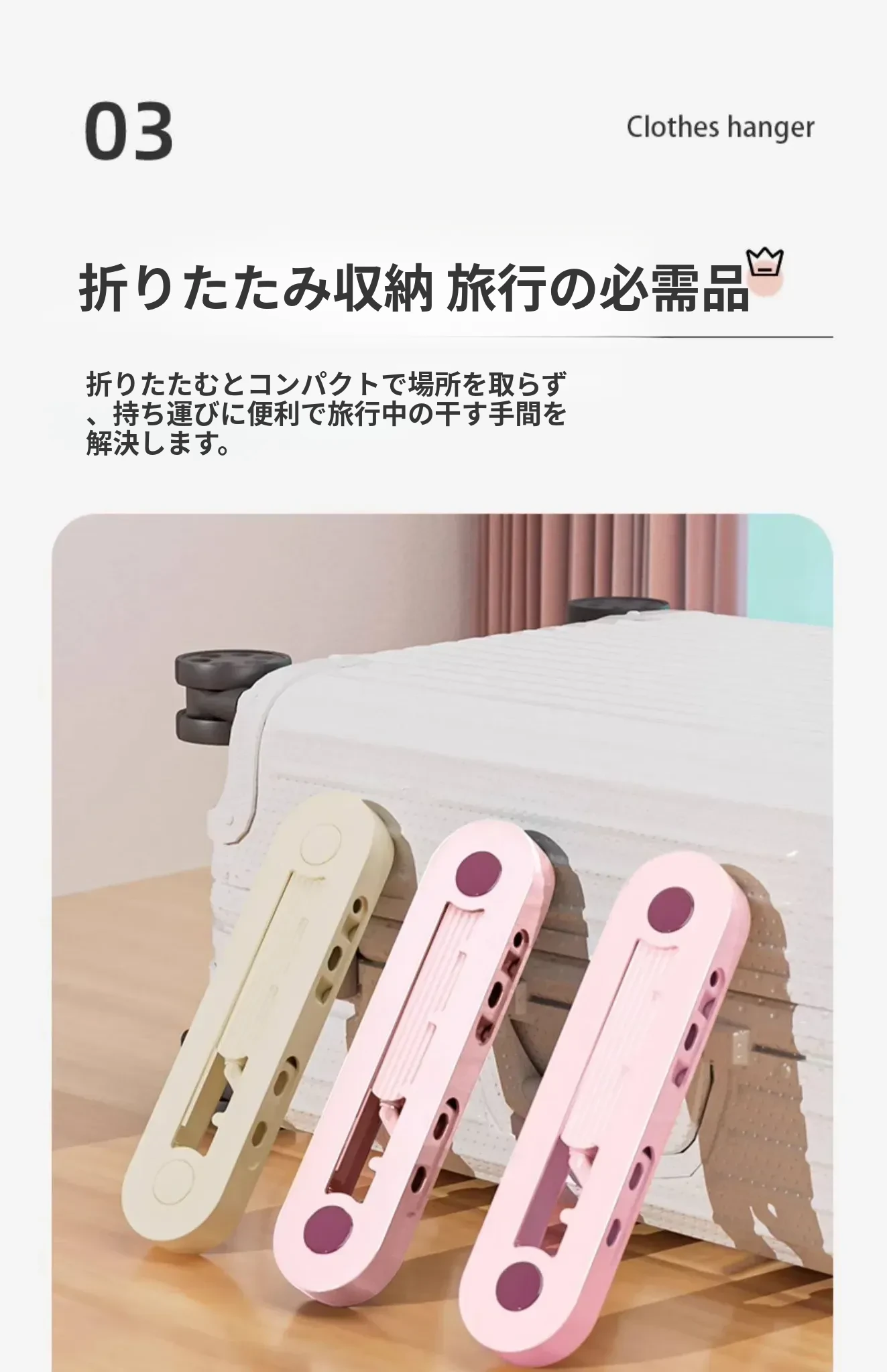 旅行用ポータブルハンガー - 出張やホテルに最適!折りたたみ式で省スペース、簡単に取り付け可能な穴なしデザイン。伸縮機能でどんな場所でも便利に使える、あなたの旅行の必需品!