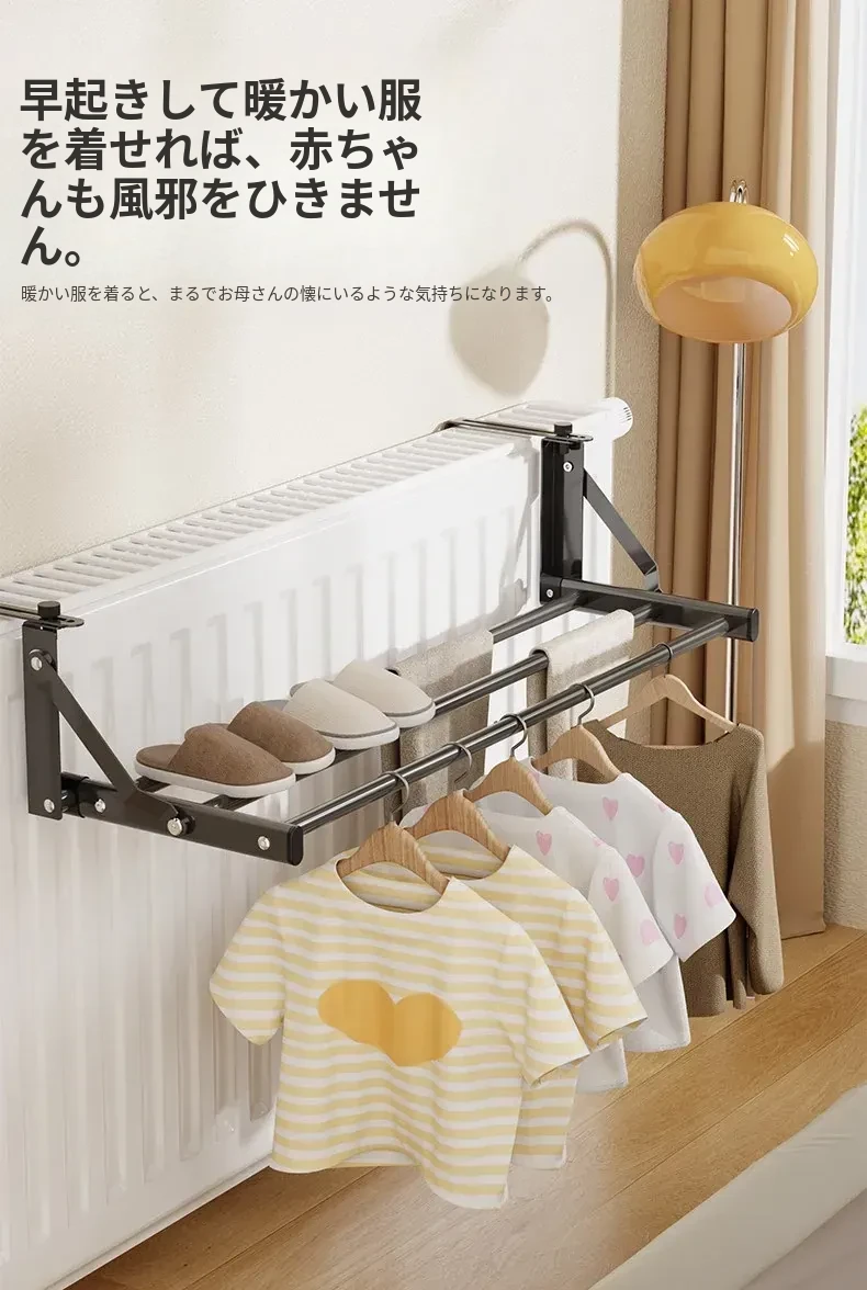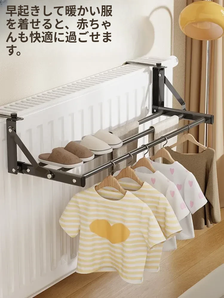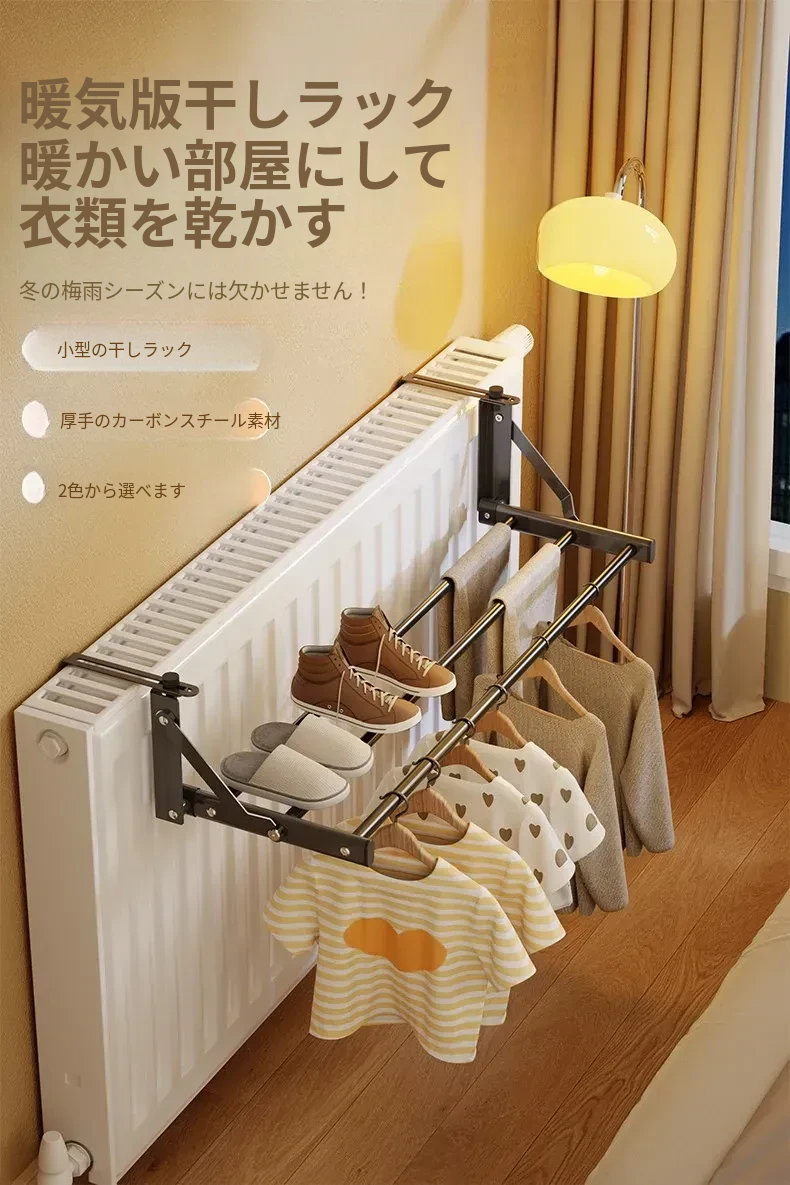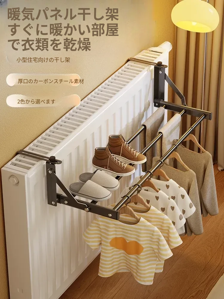 暖房用伸縮型衣類干しフック - 暖房パイプ専用の便利な収納ラック、靴も干せる!お部屋をスッキリ整理し、快適に衣類を乾かす必需品!