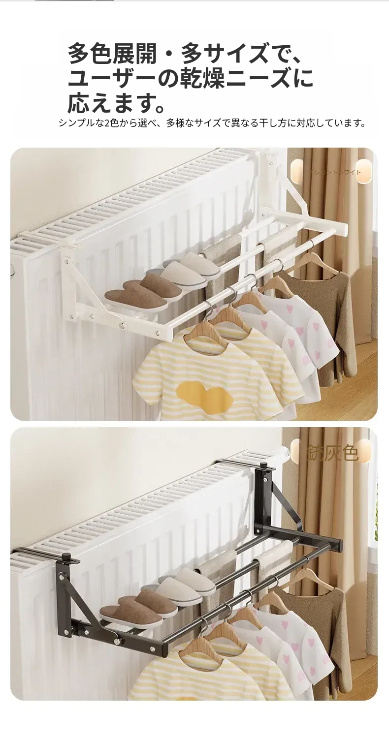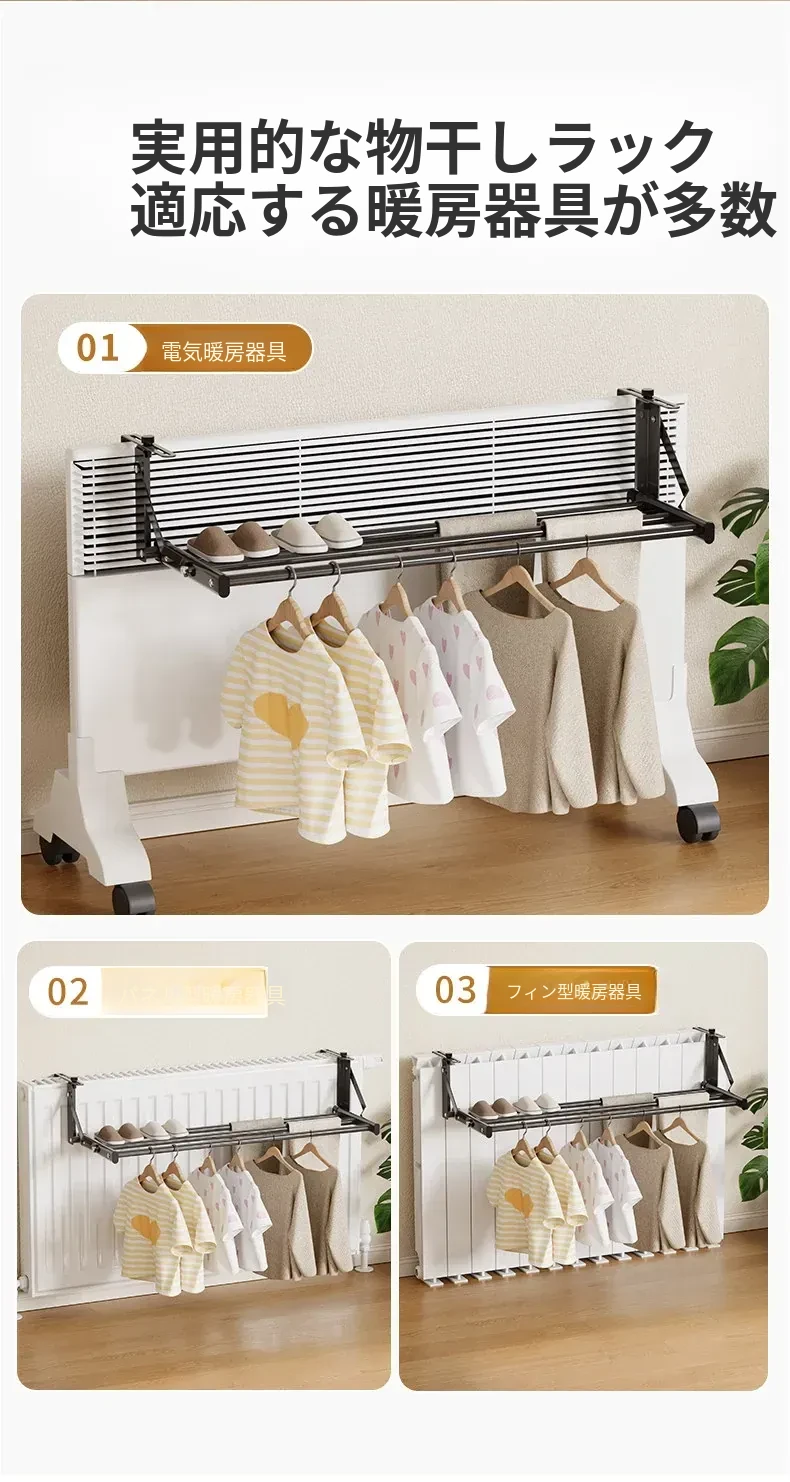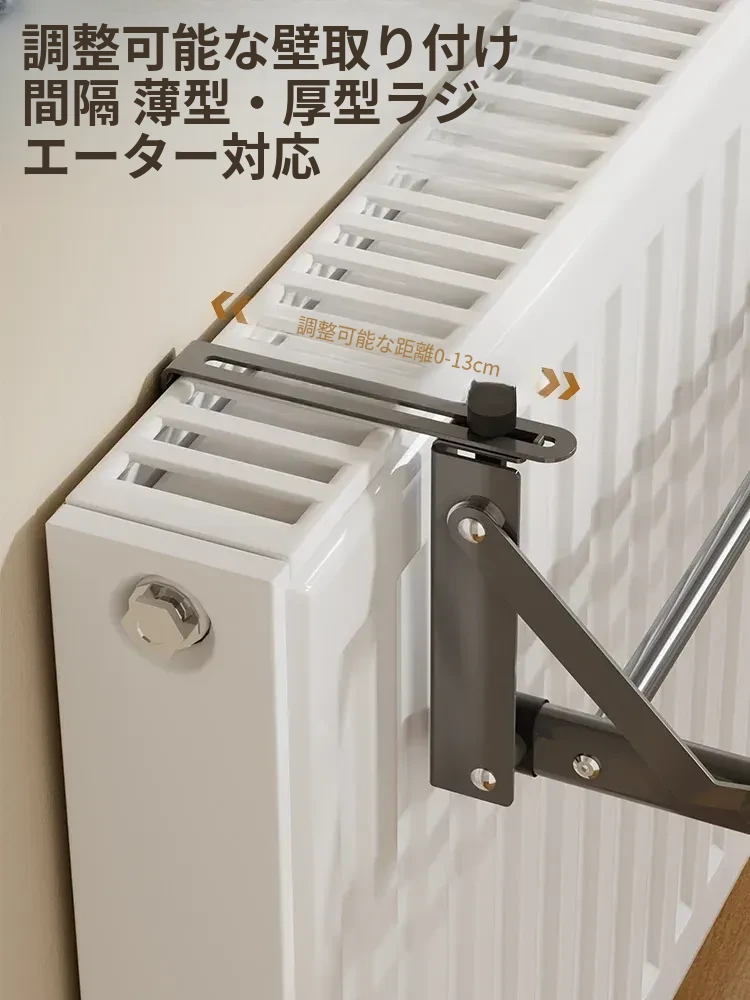 暖房用伸縮型衣類干しフック - 暖房パイプ専用の便利な収納ラック、靴も干せる!お部屋をスッキリ整理し、快適に衣類を乾かす必需品!