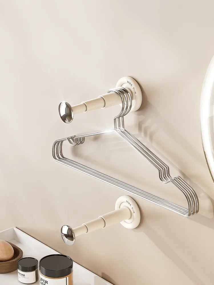 壁掛け式の伸縮可能な物干しハンガー - 取り付け不要で、お家のバルコニーをスッキリ整理!衣類を美しく干せる便利な収納ラック。