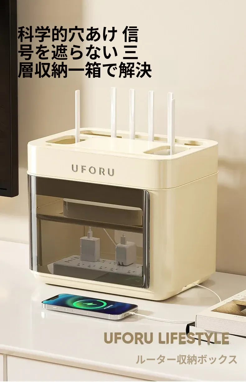 Wi-Fiルーター収納ボックス - テレビボックスや電源タップをすっきり整理!デスク上を美しく保つためのワイヤレス光モデムスタンド、生活空間をスマートに演出する必需品!