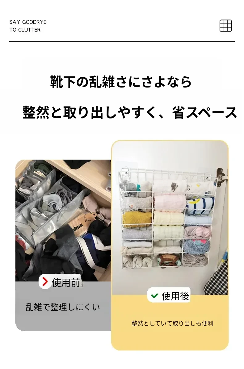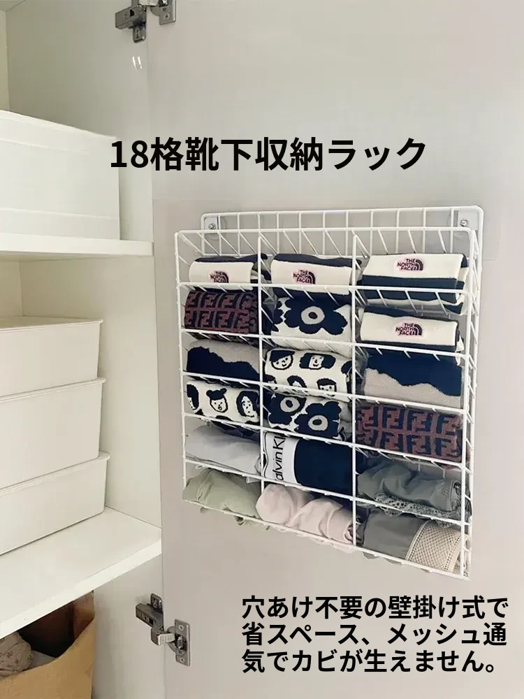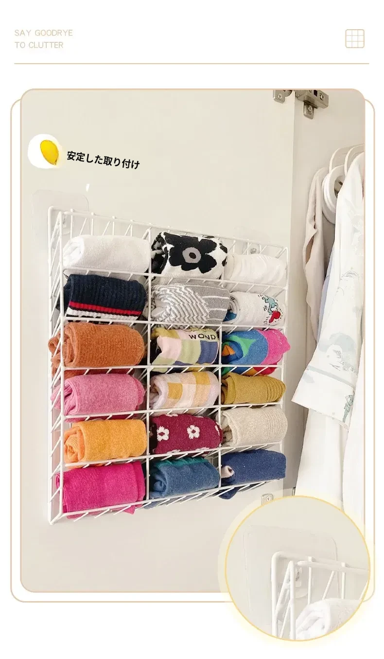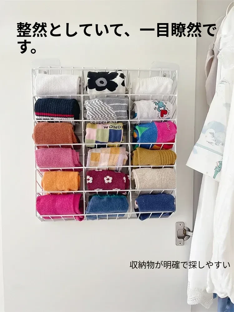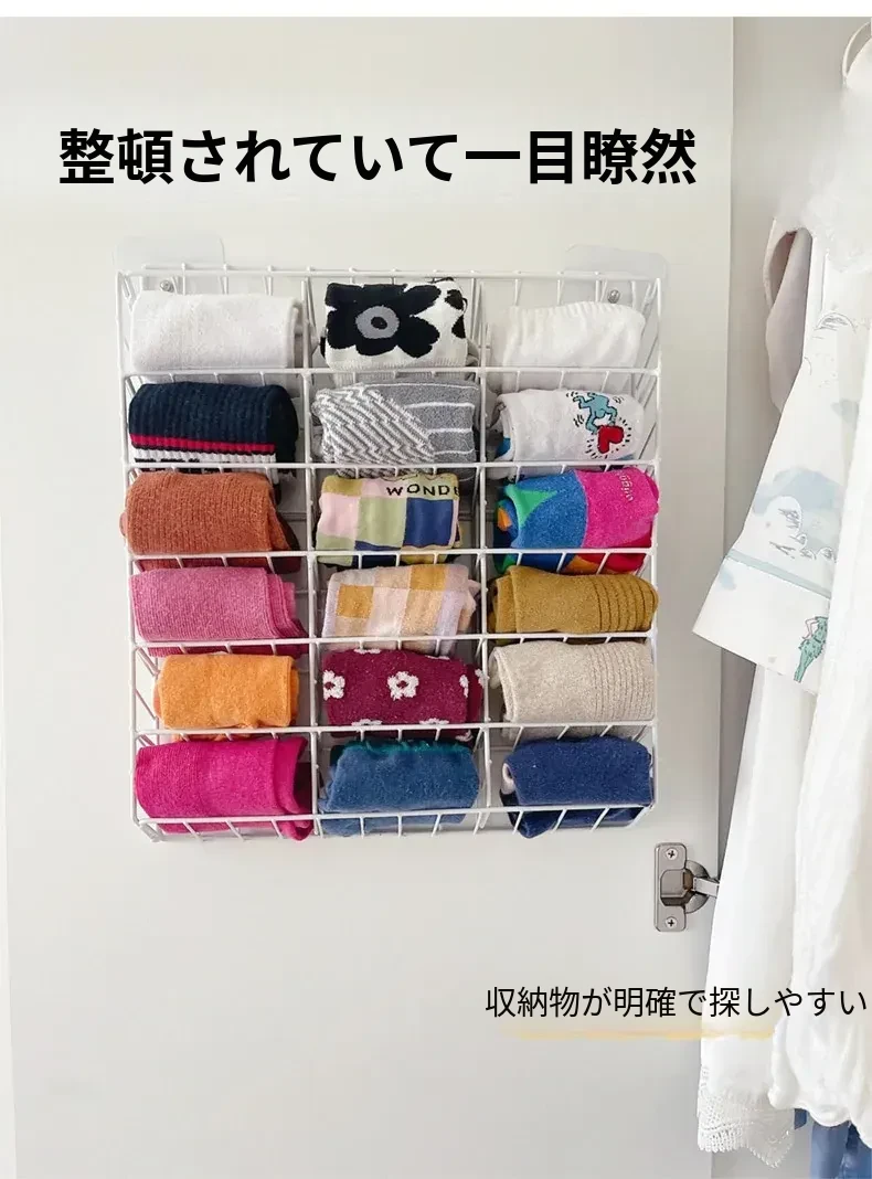 靴下収納の神!クローゼットの内側を有効活用する壁掛け式インナー分けボックス。学生寮にも最適な便利アイテム!シンプルでスタイリッシュなデザインで、収納も楽々♪