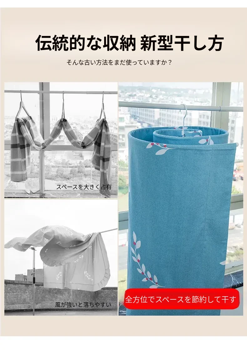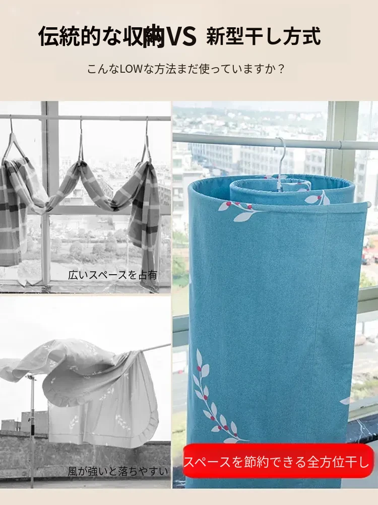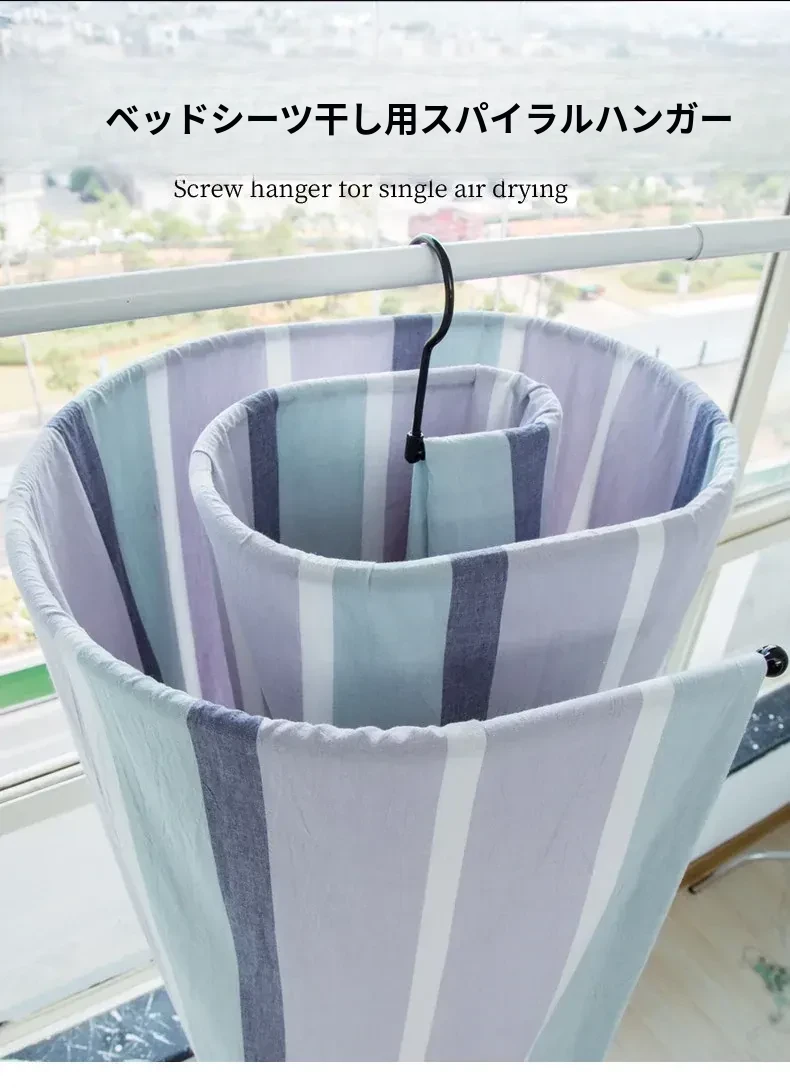 「螺旋式衣類乾燥ラック - スネイルデザインの回転式ハンガー、家族や学生に最適!ベッドシーツや布団も簡単に干せる便利アイテム!」
