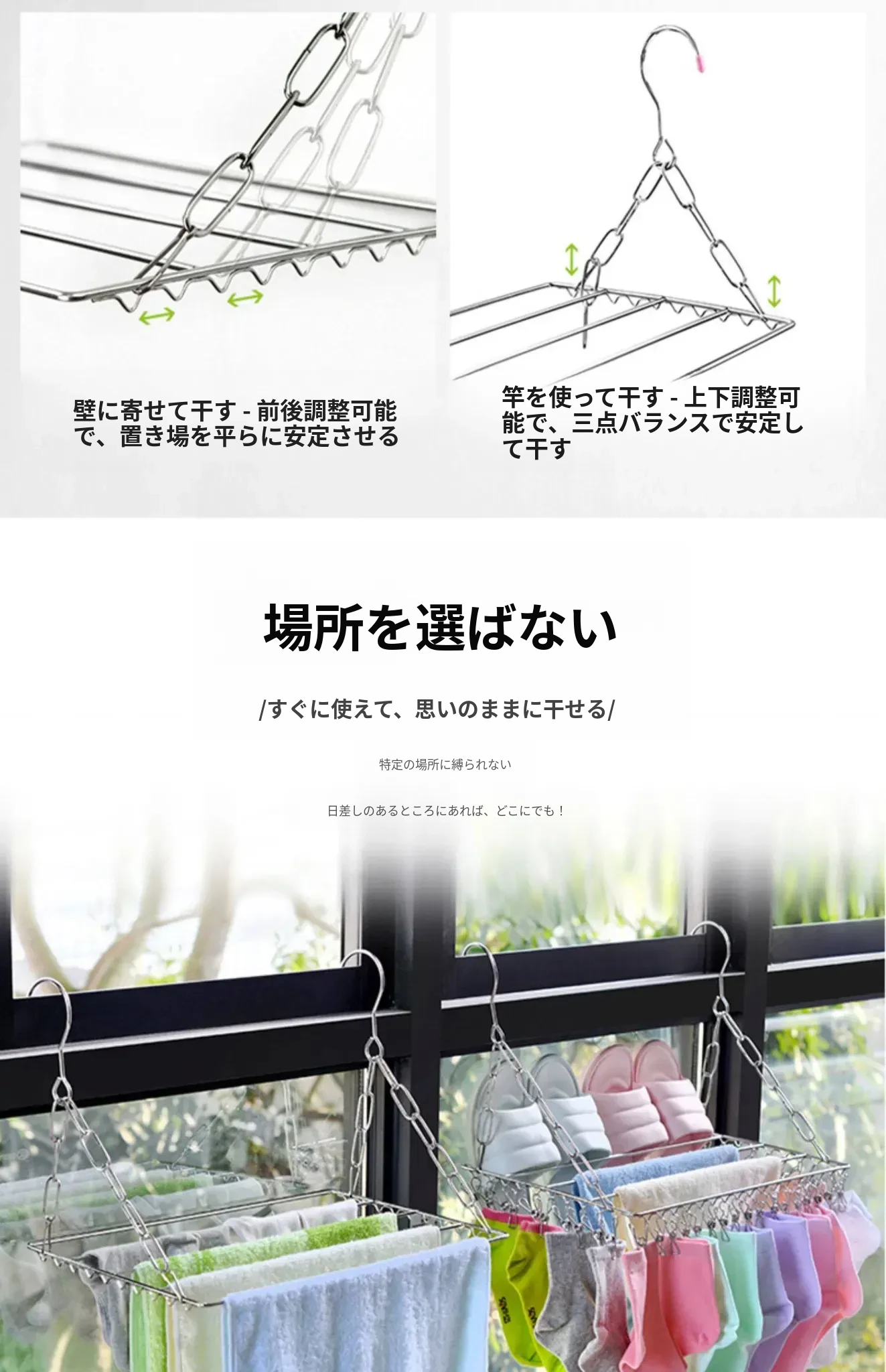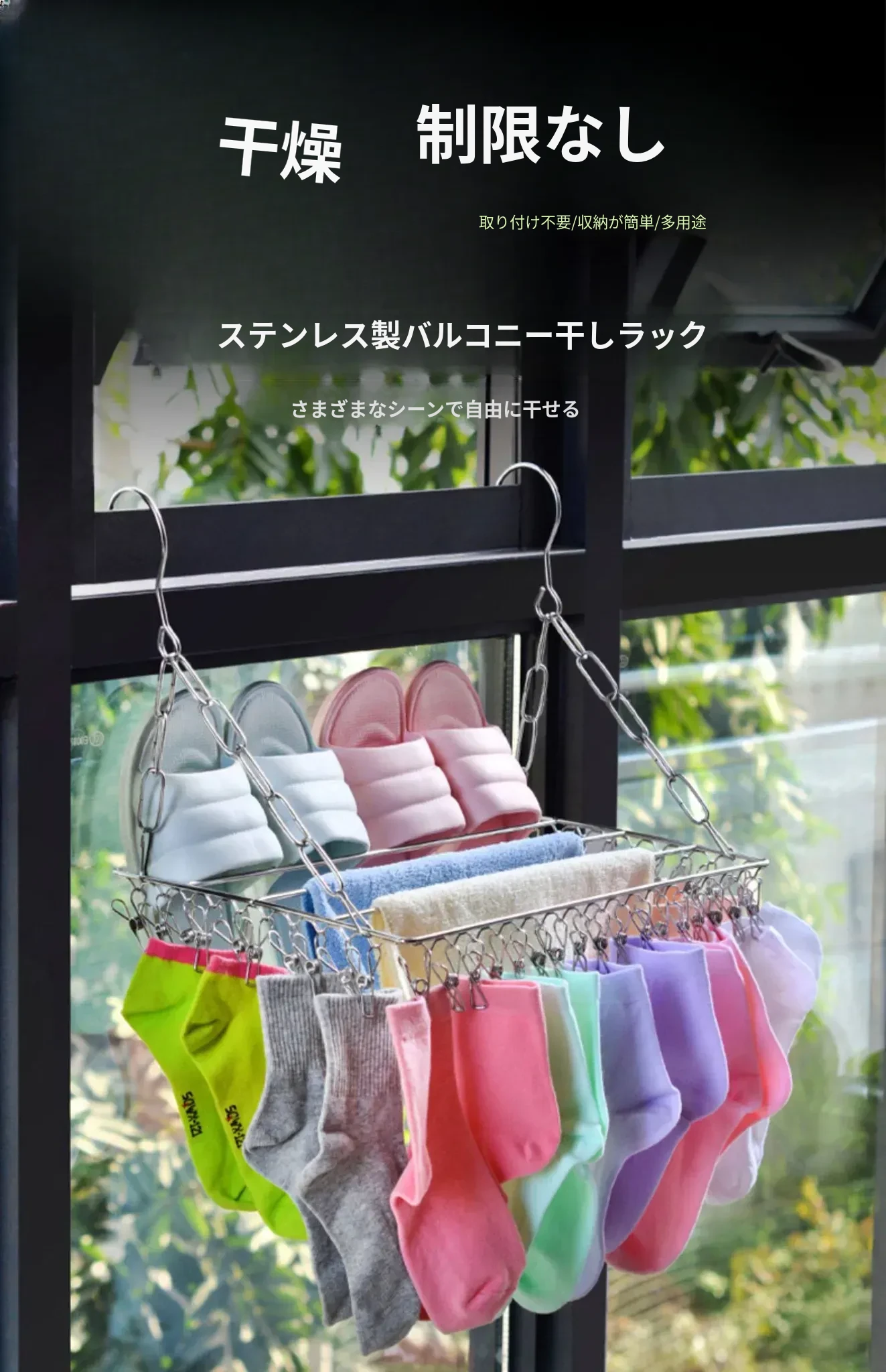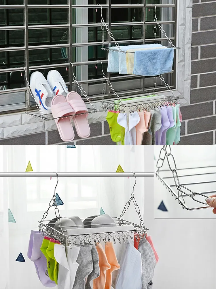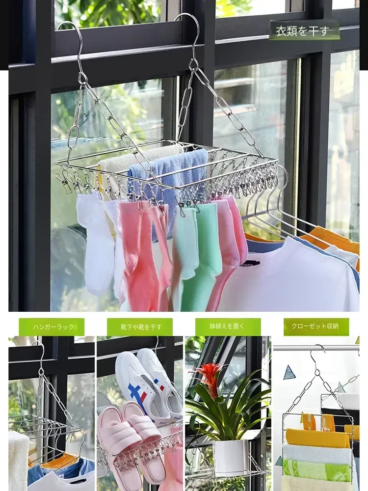 ステンレス製靴乾燥ラック - 家庭用インナー、靴下、衣類干しに最適!バルコニーで靴下を効率よく乾かせる多機能クリップ付き!