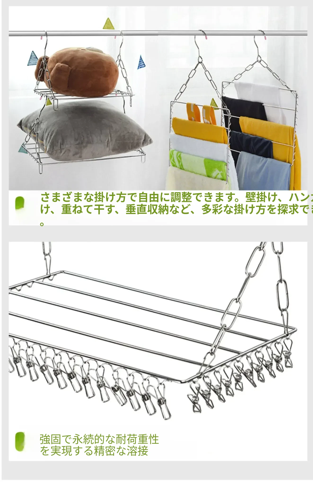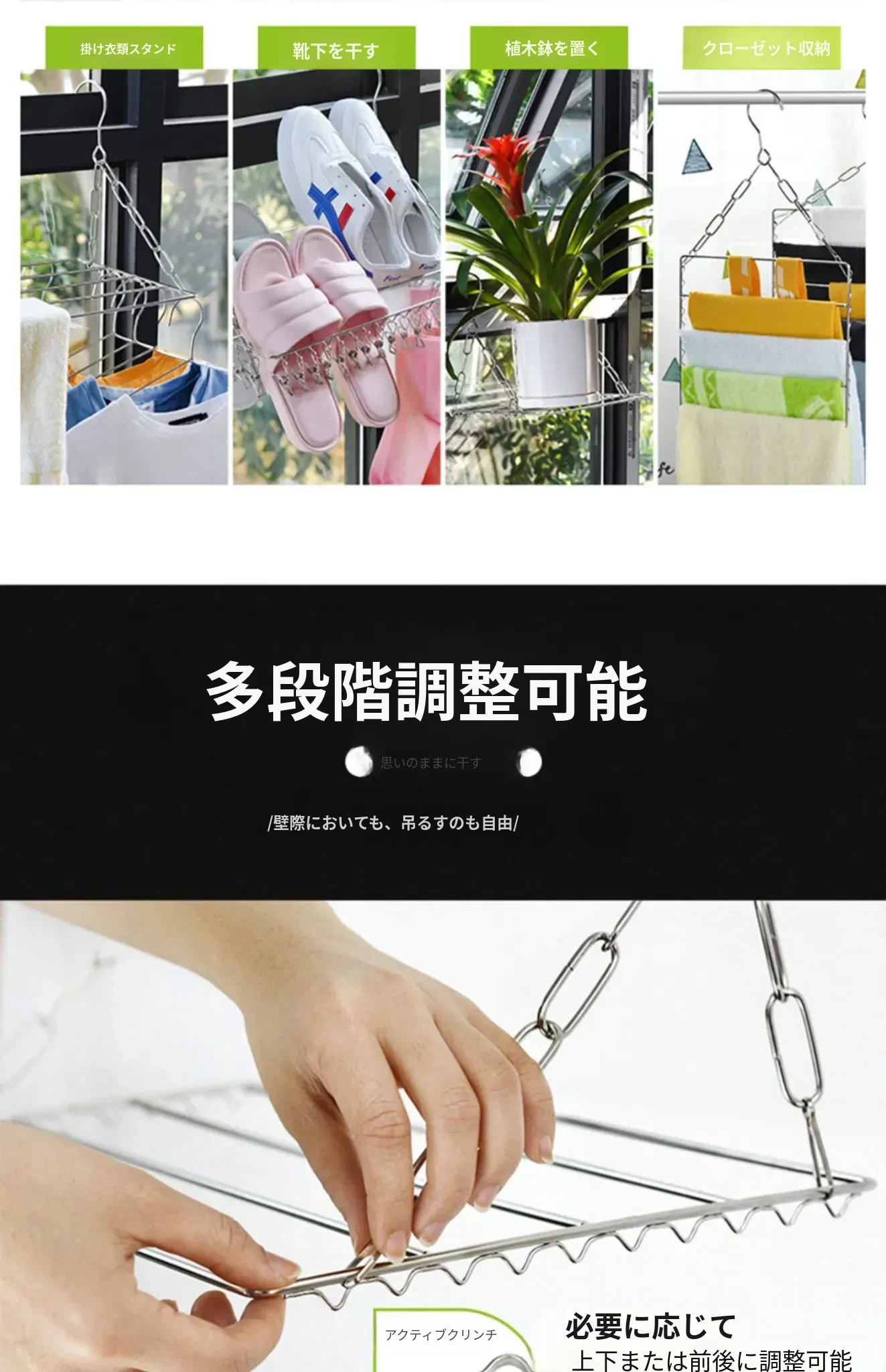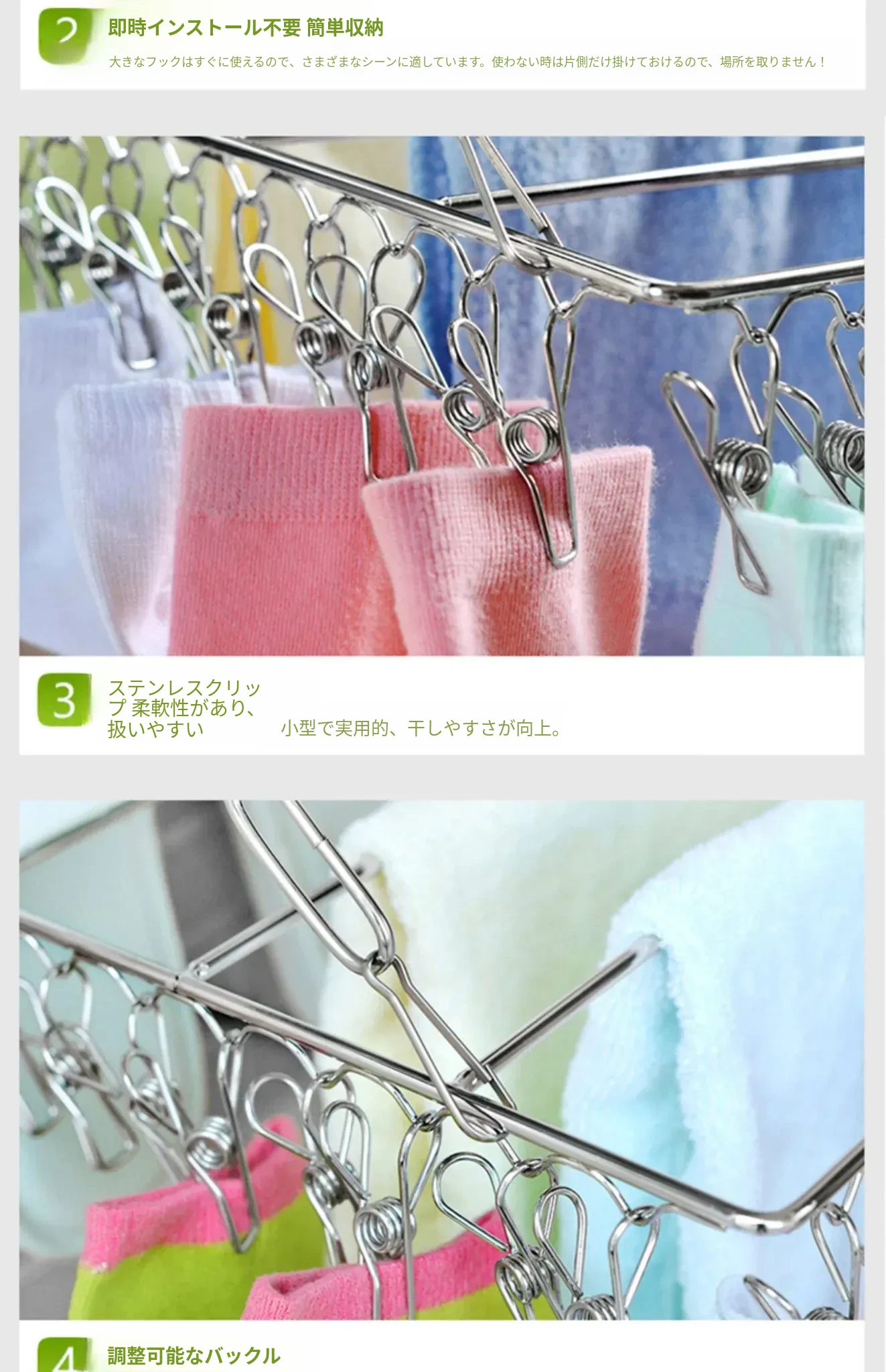 ステンレス製靴乾燥ラック - 家庭用インナー、靴下、衣類干しに最適!バルコニーで靴下を効率よく乾かせる多機能クリップ付き!