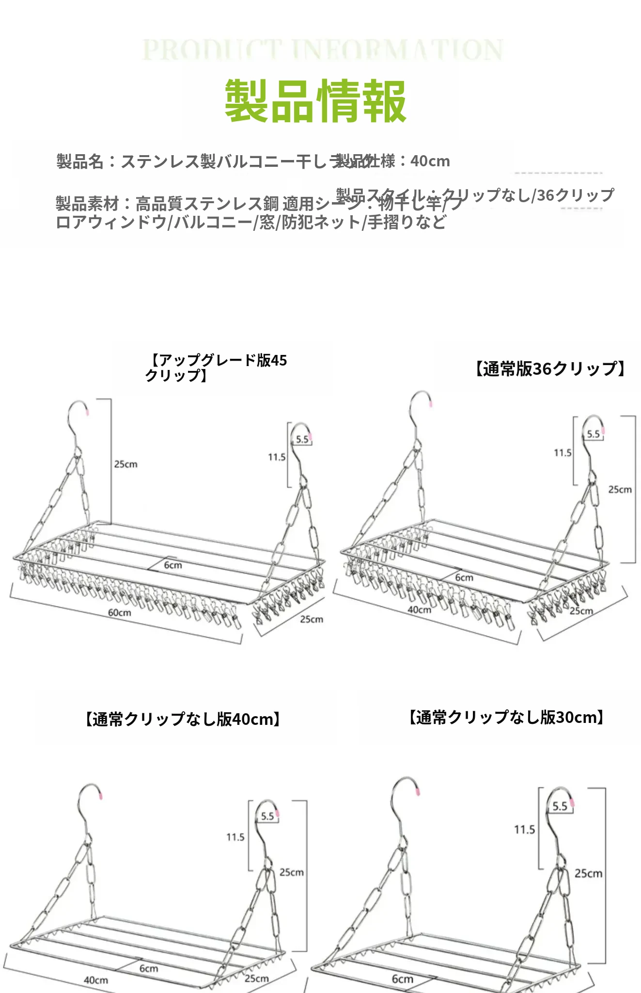 通常クリップ付き【40cm36クリップ】
