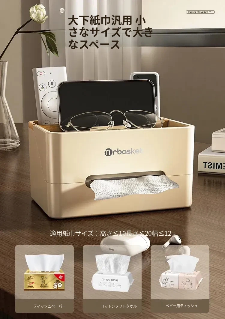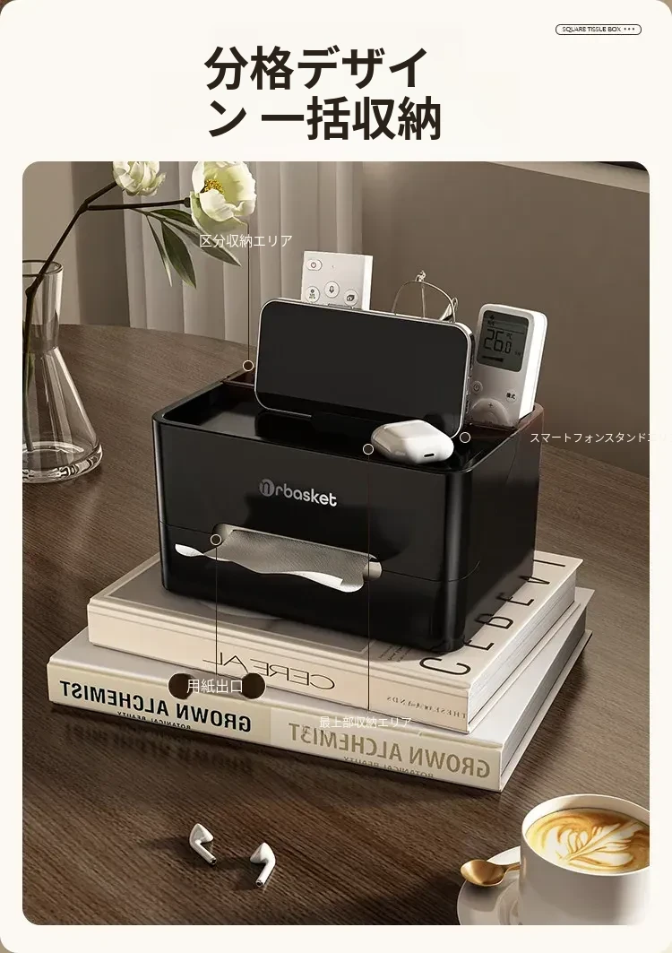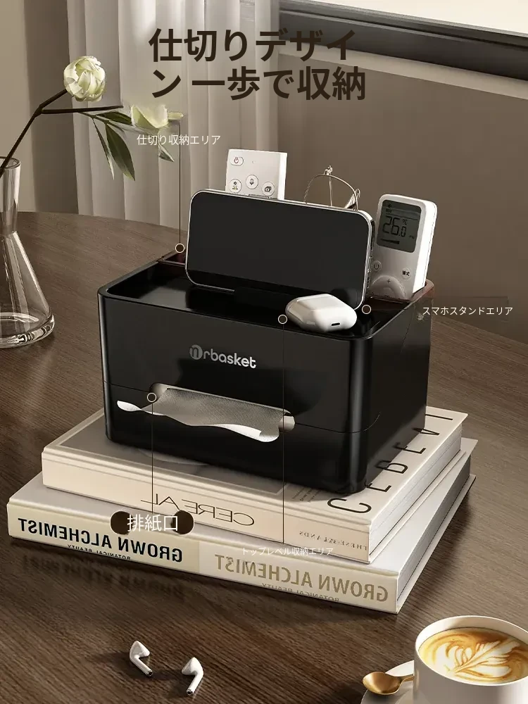 多機能デスクティッシュボックス|家庭用・リビング・コーヒーテーブル用|リモコン整理もできるおしゃれな収納ボックス|高級感あふれるデザインで、生活空間を格上げ!