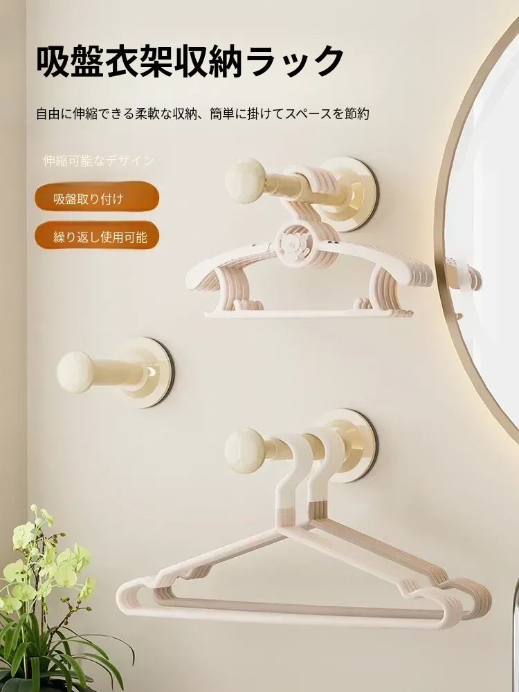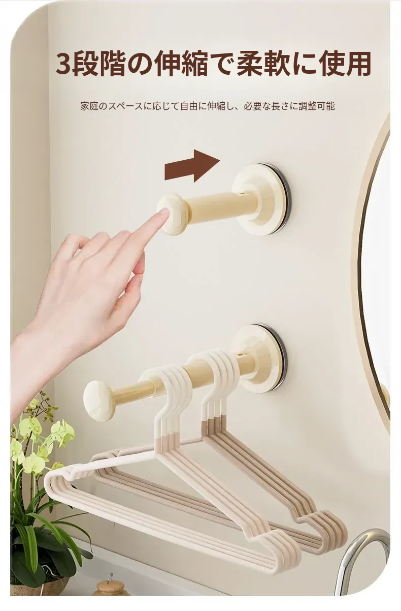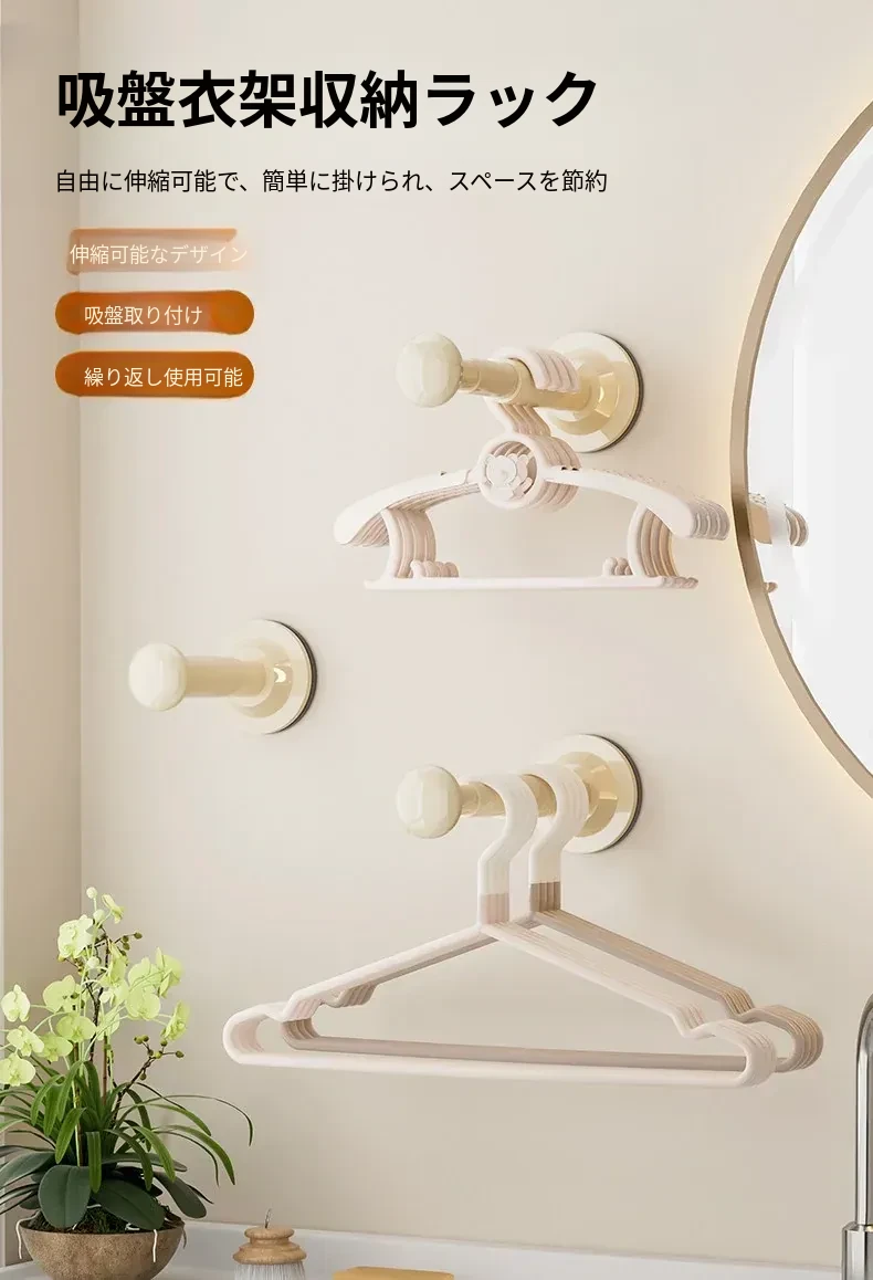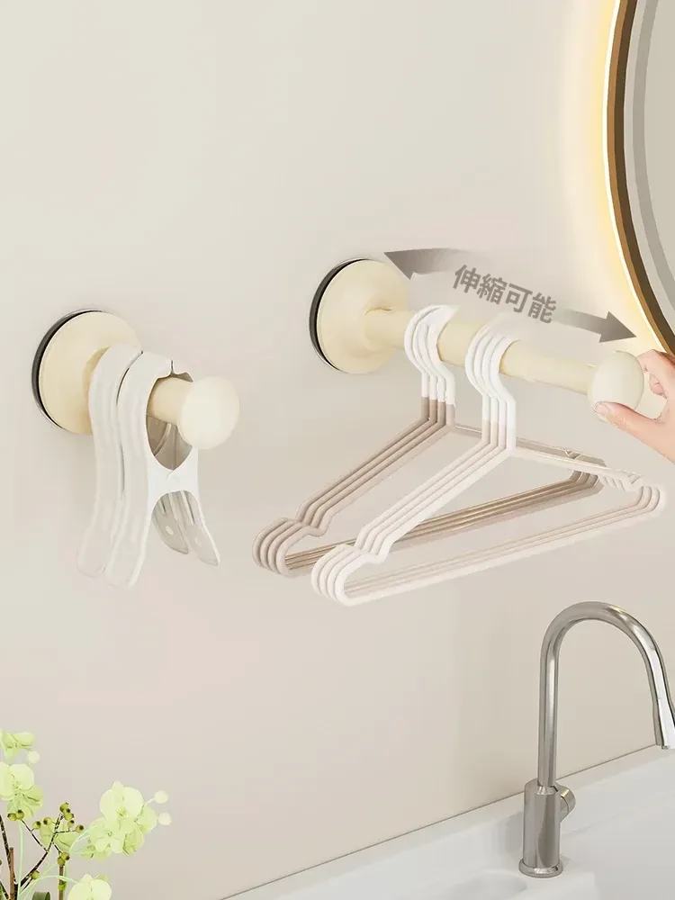 吸盤式衣類ハンガー収納神器!家で使える、穴を開けずに取り付けられるバルコニー壁掛け多機能伸縮整理ラック。洗濯物もスッキリ!おしゃれで便利なハンガーラックです。