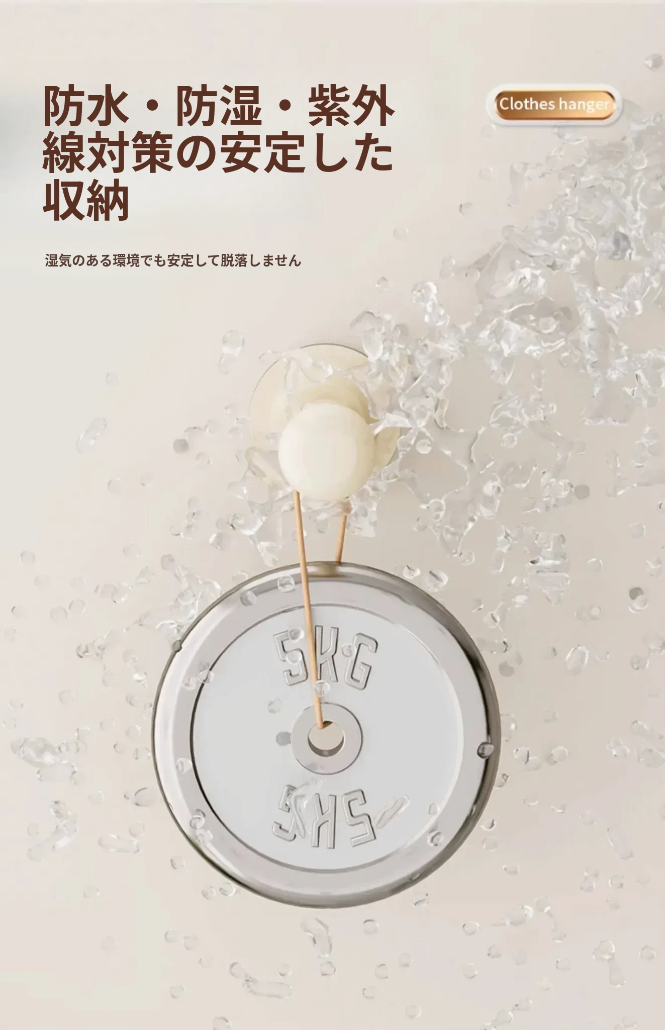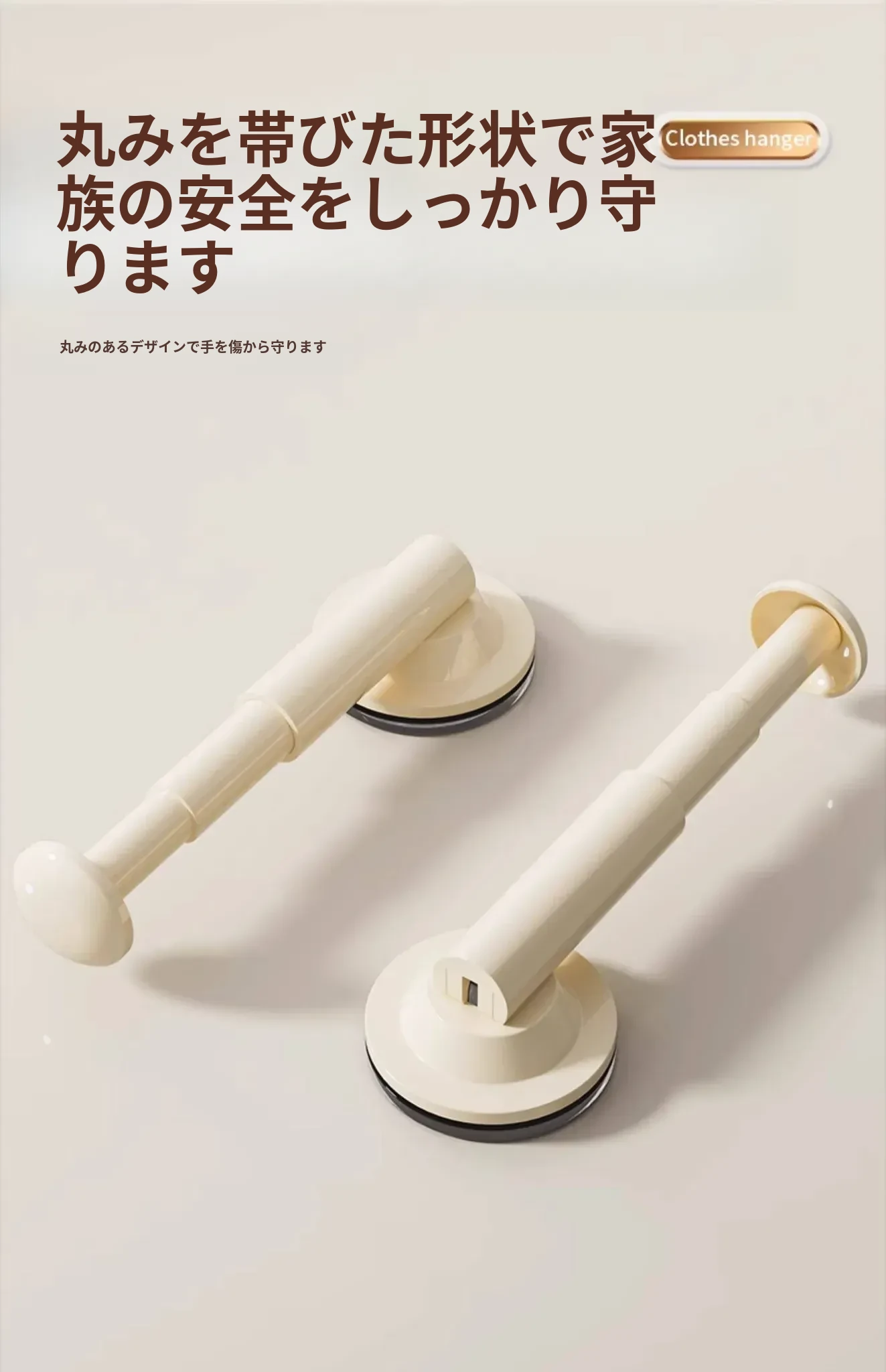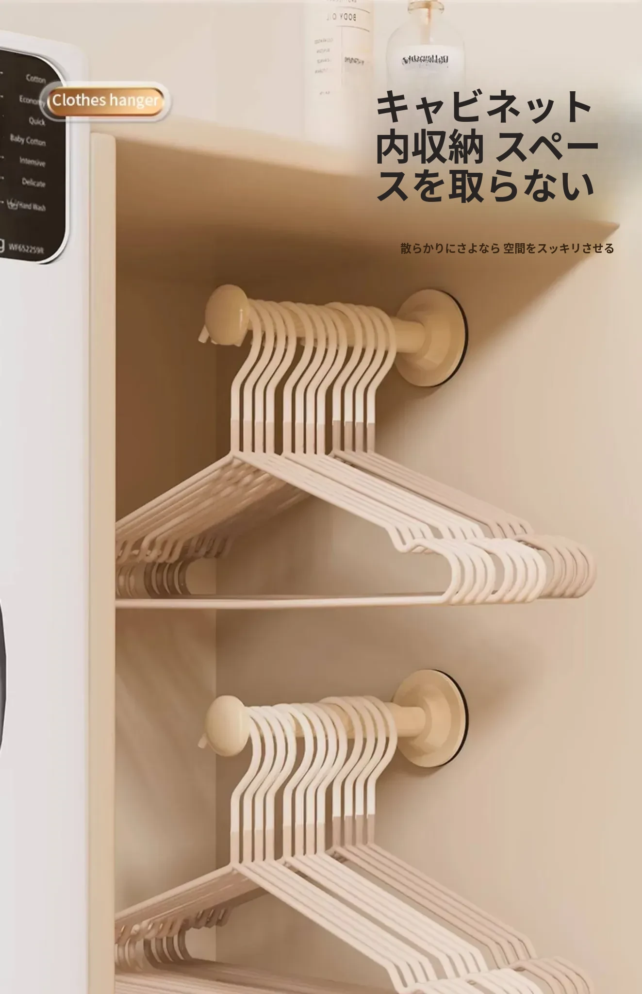 クリームホワイト - 吸盤ハンガー収納ラック(2個入り)