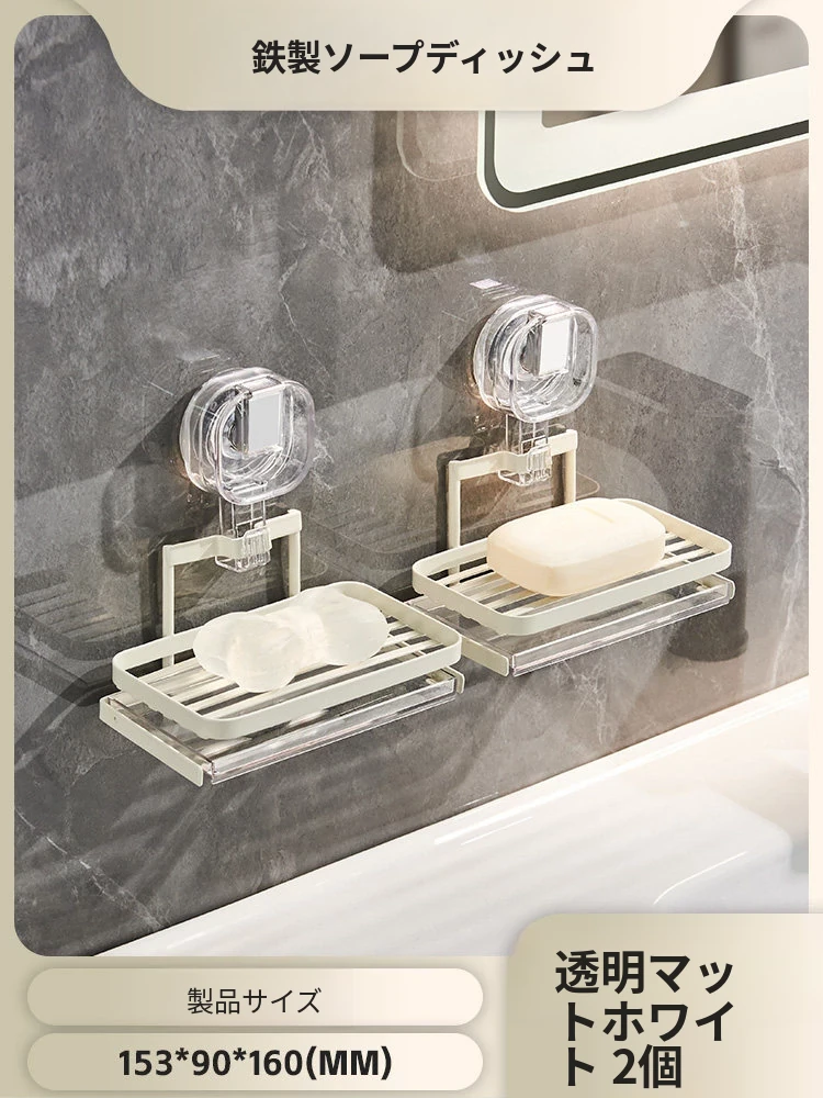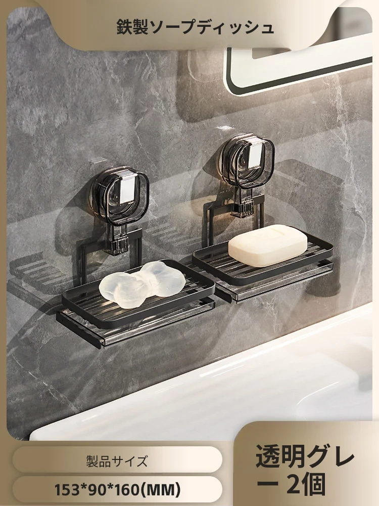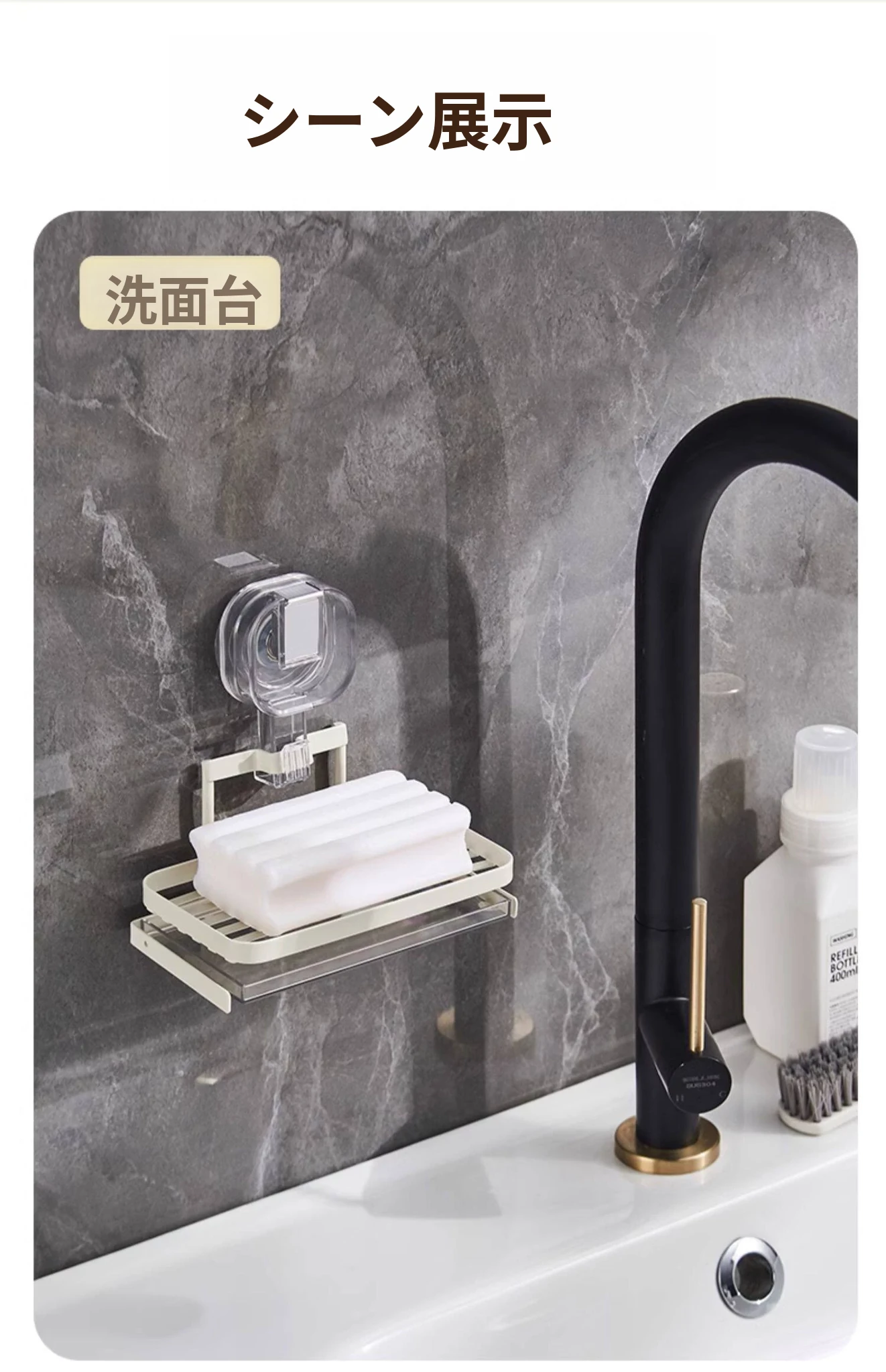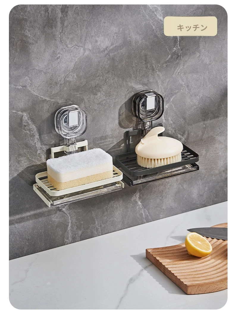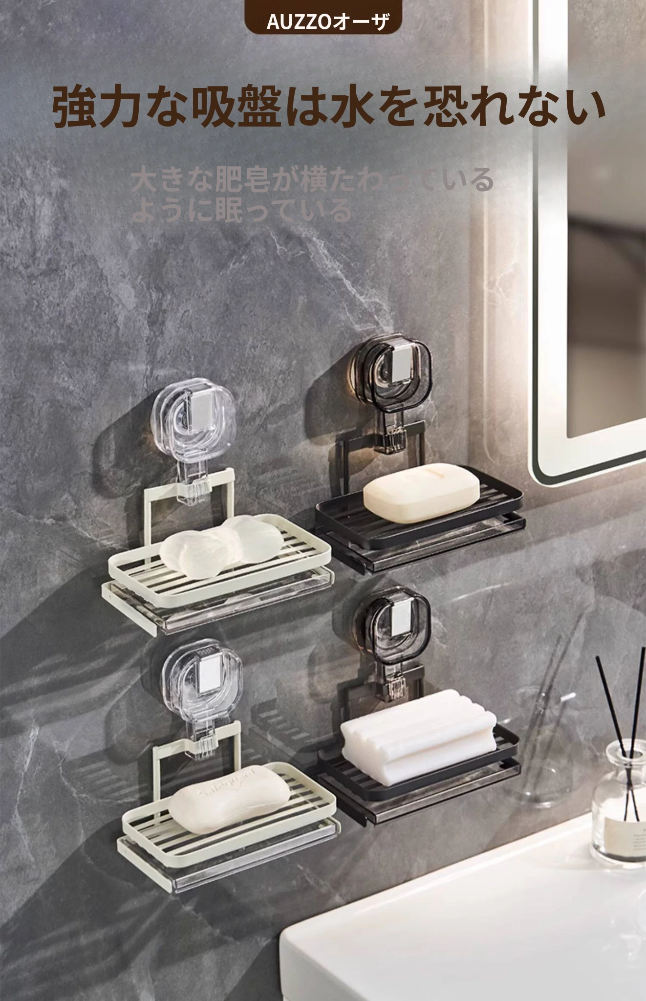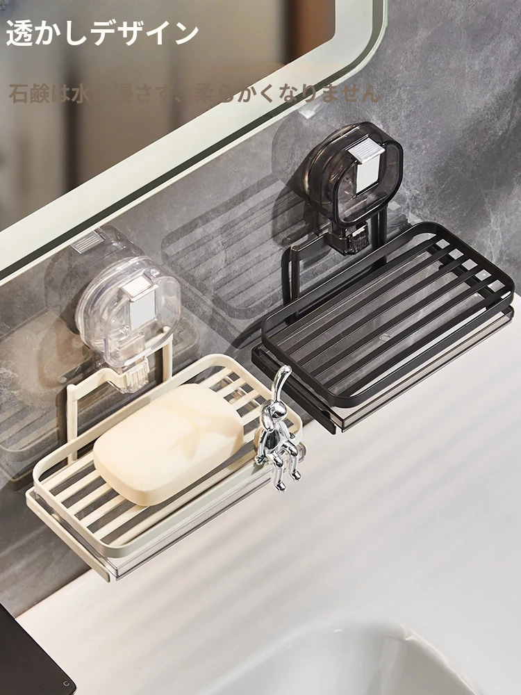 吸盤式ソープディッシュ - 新登場!穴あけ不要で簡単取り付け、バスルームやトイレに最適な衛生的な石鹸ホルダー。水切れも良く、香り豊かな石鹸をおしゃれに収納できる便利なアイテム!