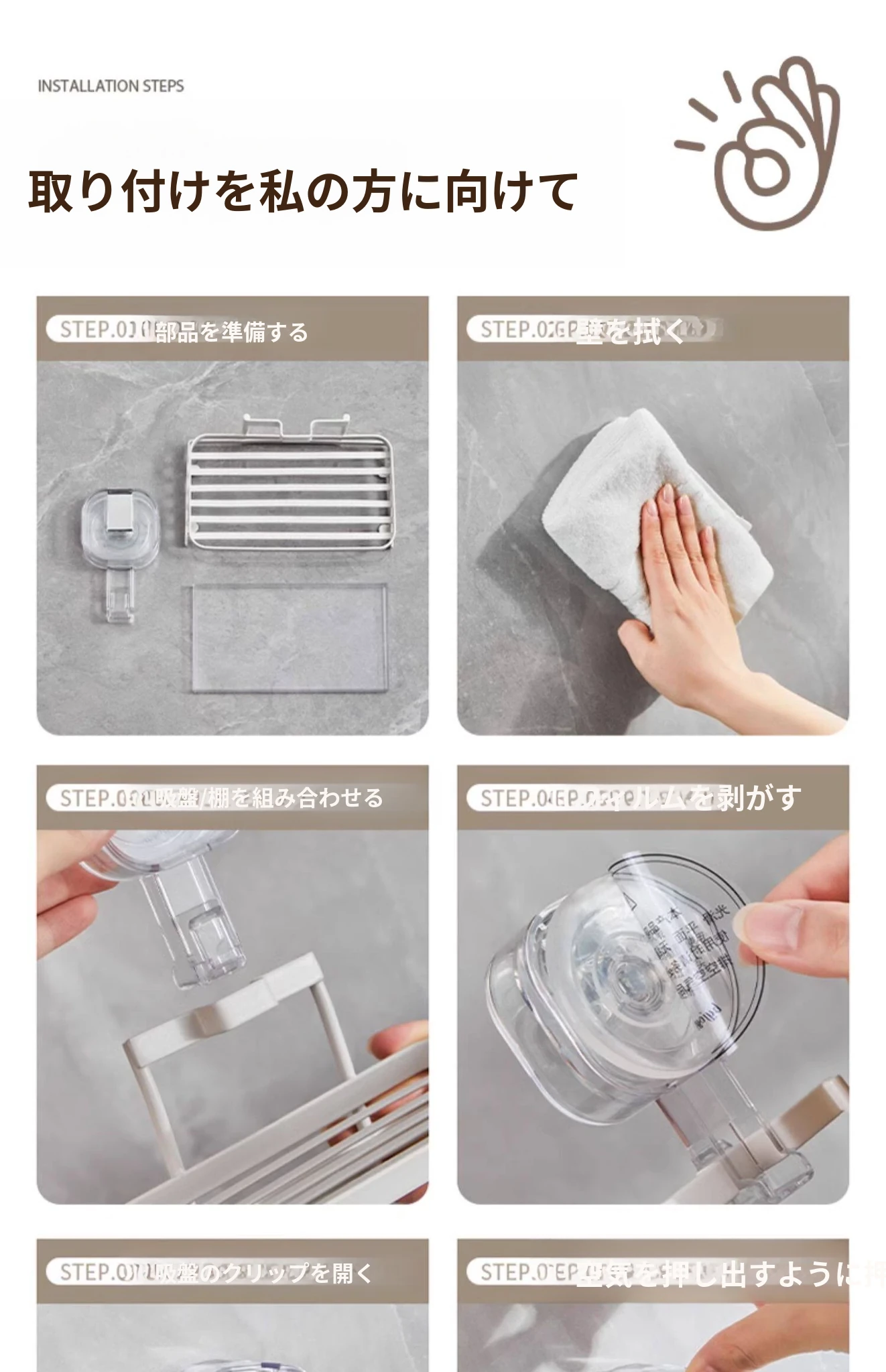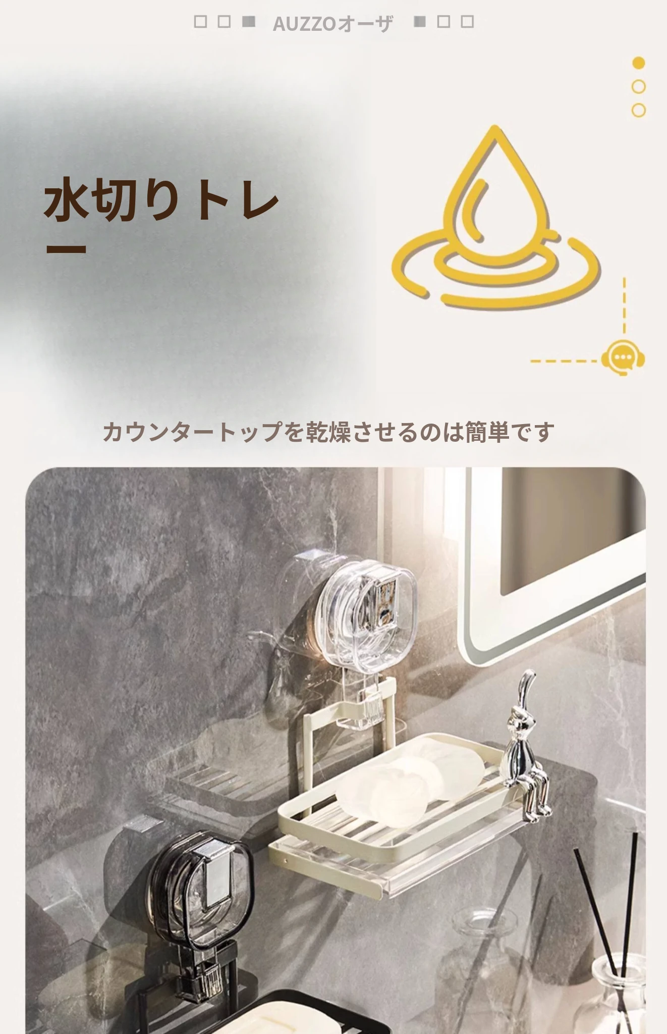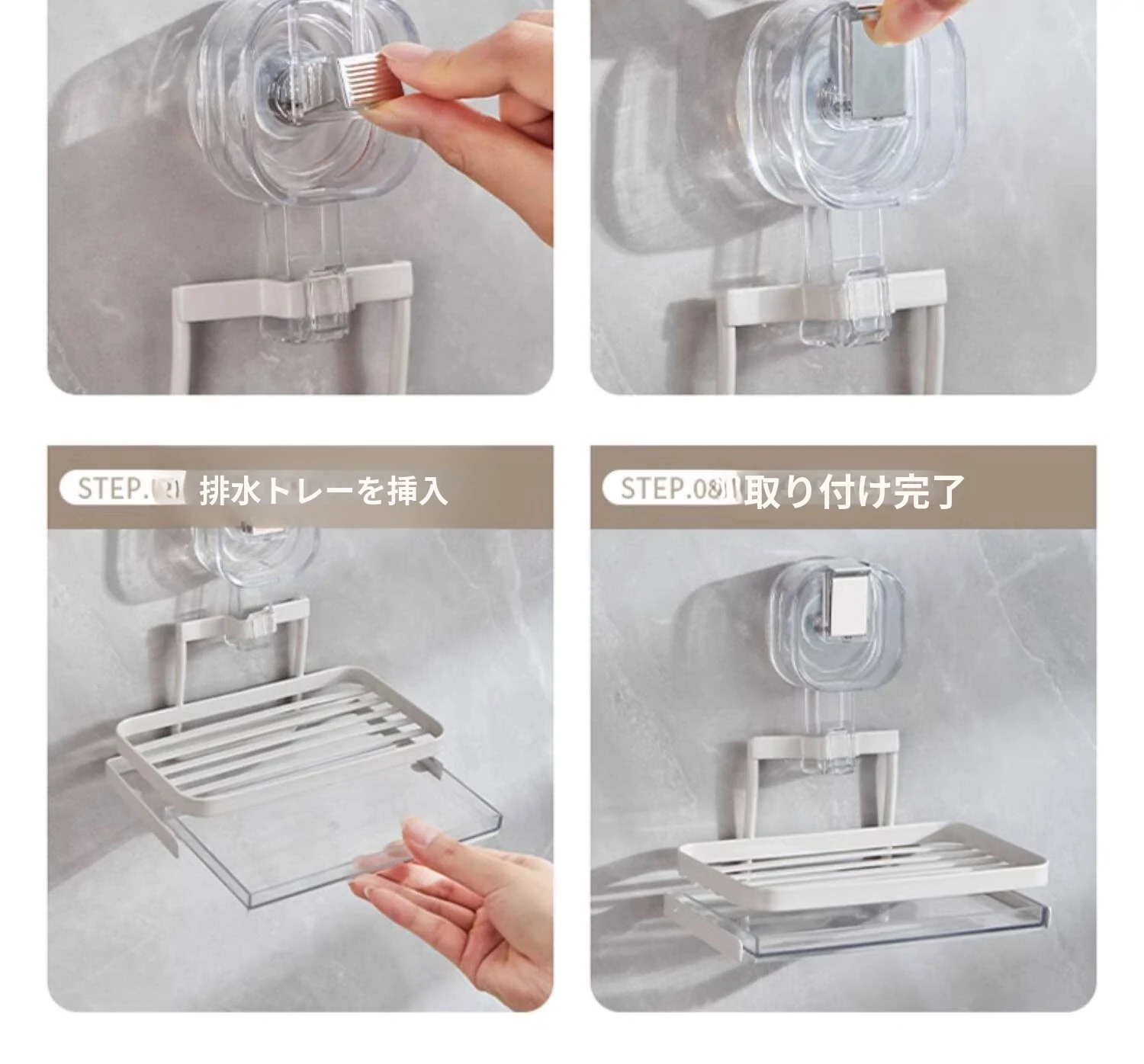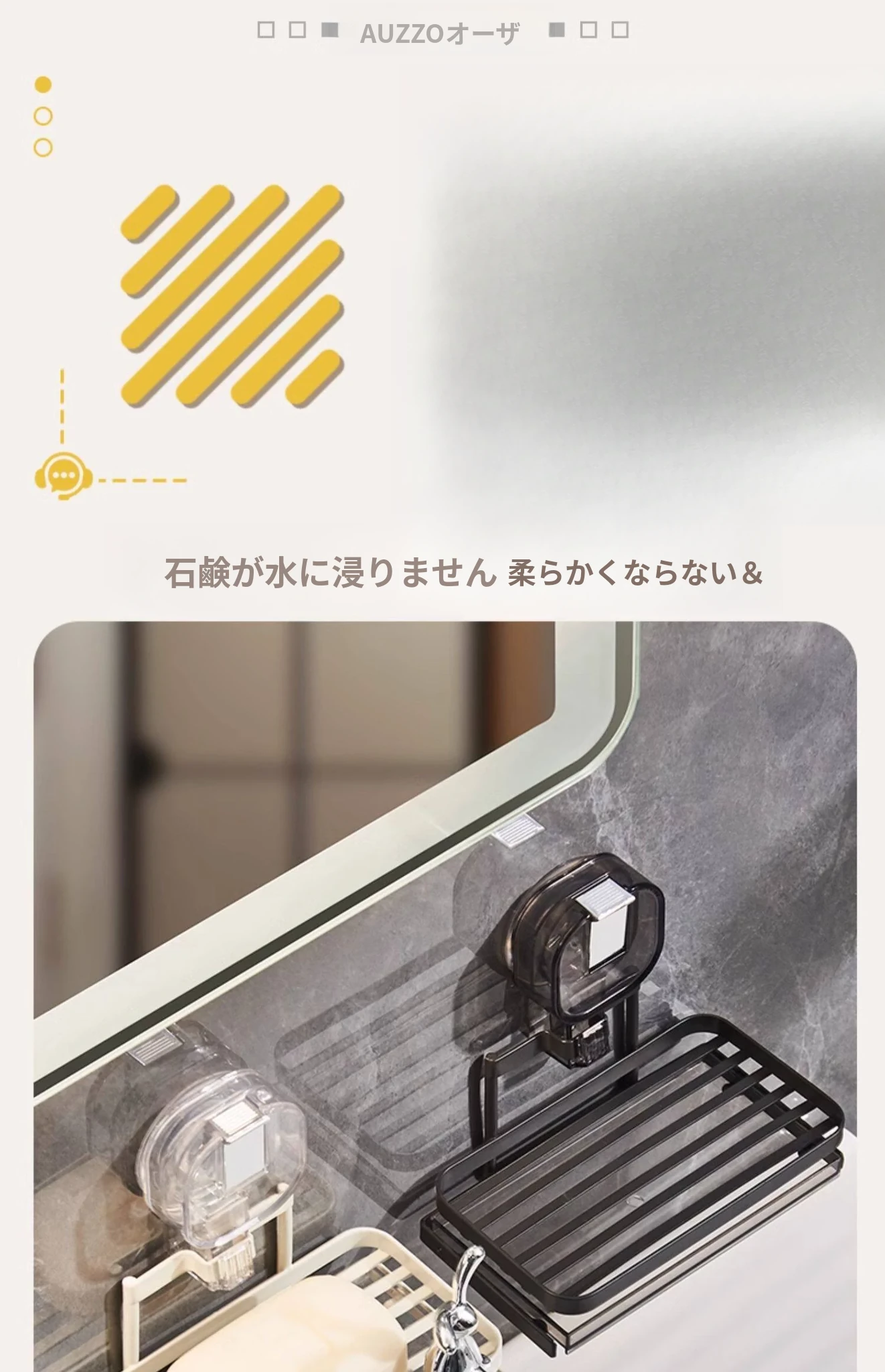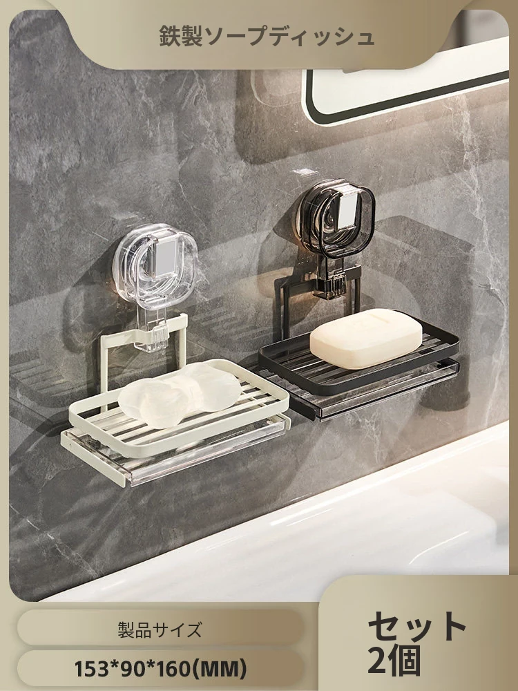 吸盤式ソープディッシュ - 新登場!穴あけ不要で簡単取り付け、バスルームやトイレに最適な衛生的な石鹸ホルダー。水切れも良く、香り豊かな石鹸をおしゃれに収納できる便利なアイテム!