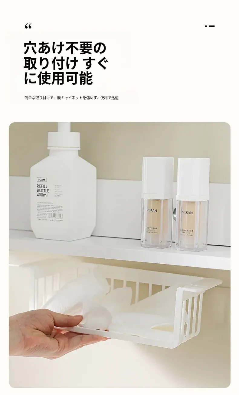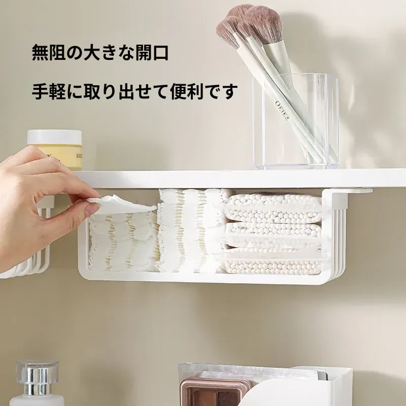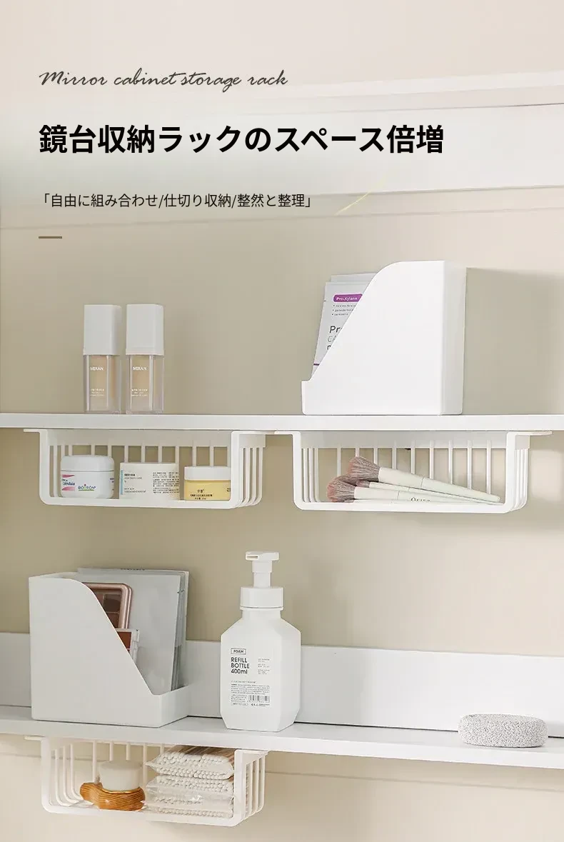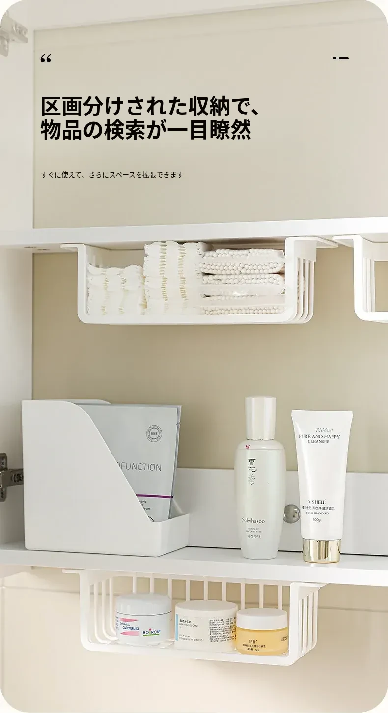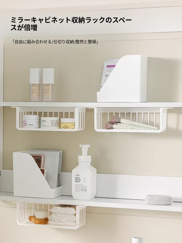 鏡台下収納ボックス|バスルーム用化粧品整理|クレンジングコットン・綿棒・フェイスマスク用|透明ディスプレイラック・ハンギングバスケットでスッキリ整理!