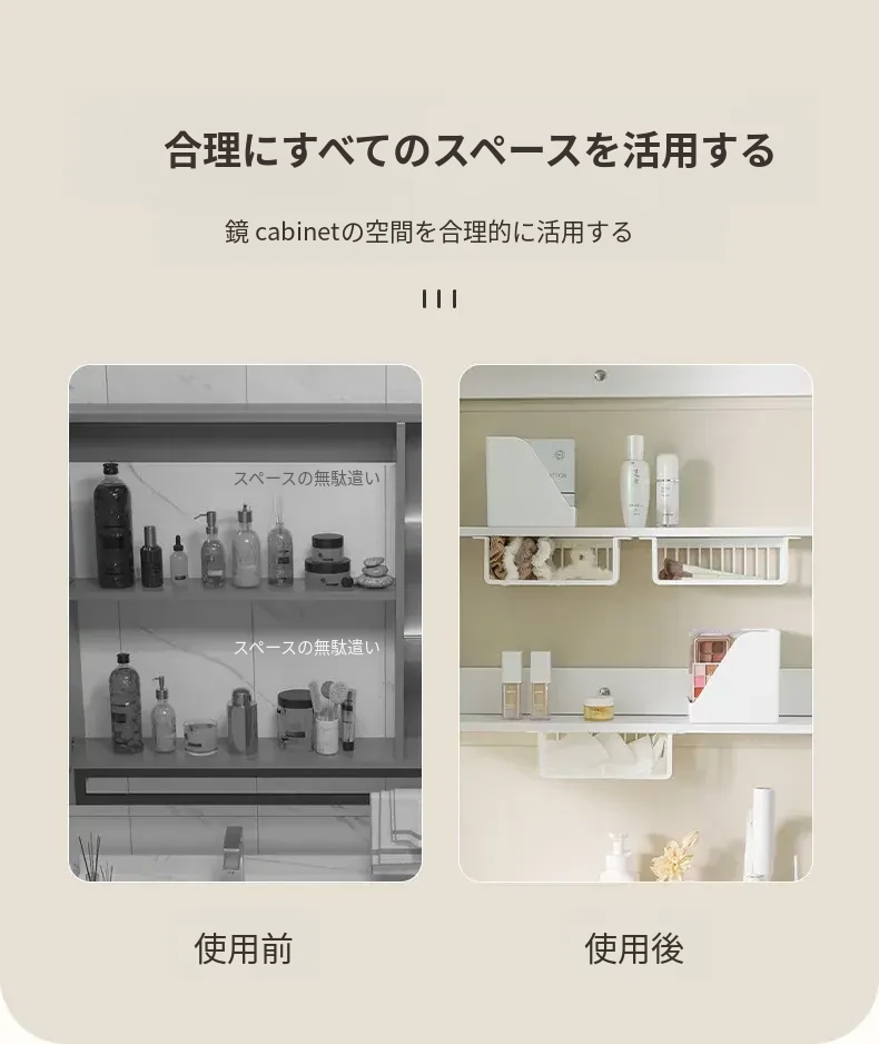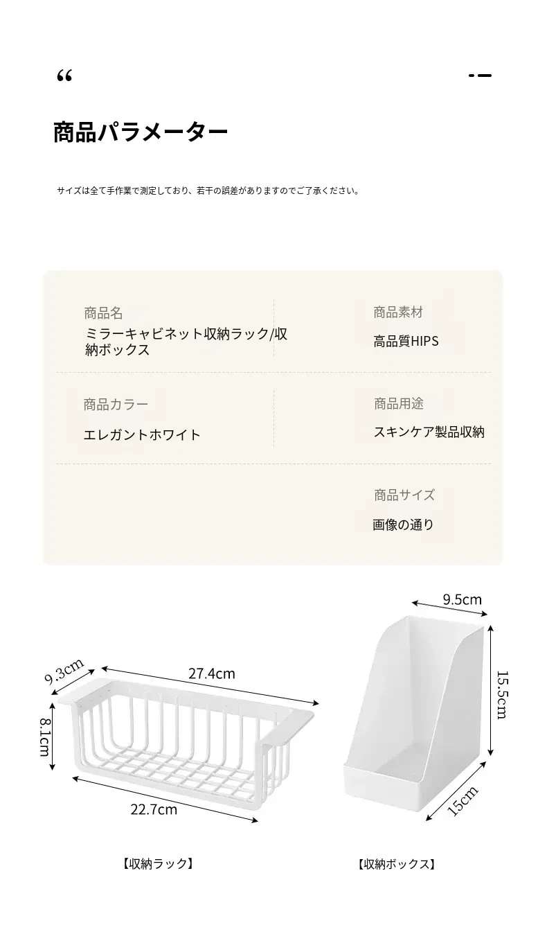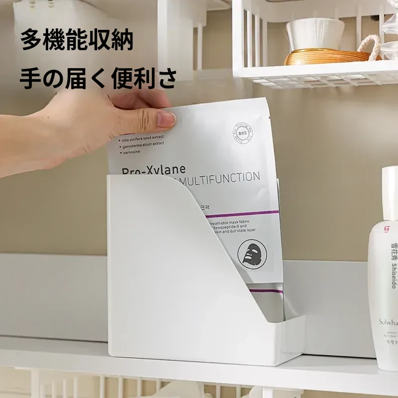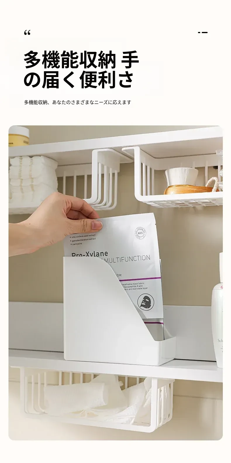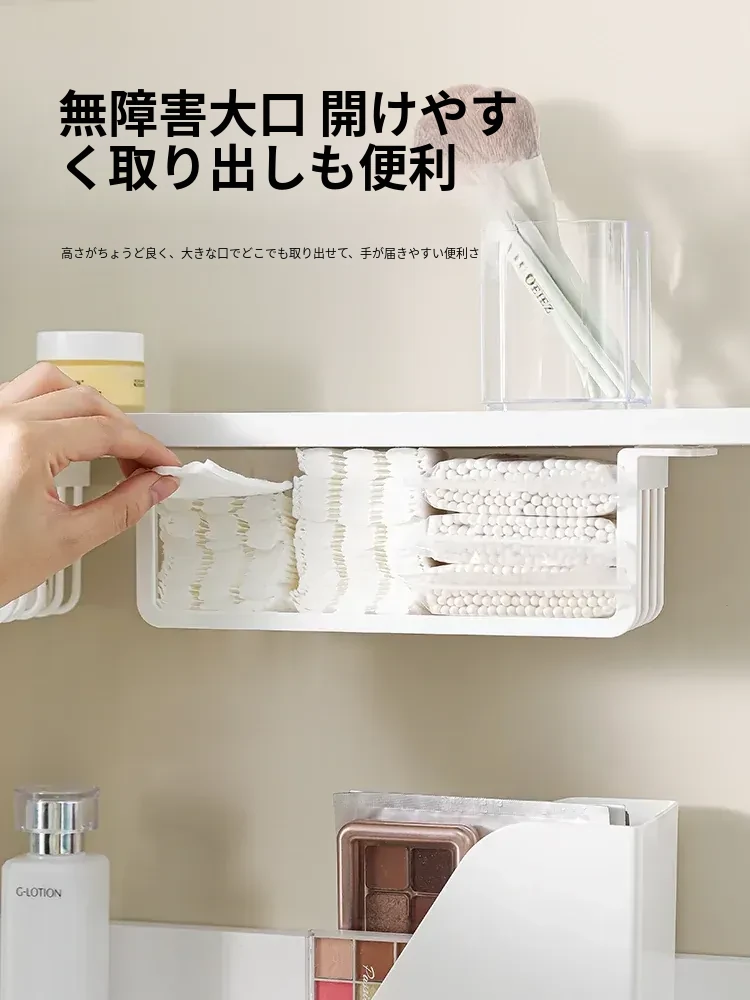 鏡台下収納ボックス|バスルーム用化粧品整理|クレンジングコットン・綿棒・フェイスマスク用|透明ディスプレイラック・ハンギングバスケットでスッキリ整理!