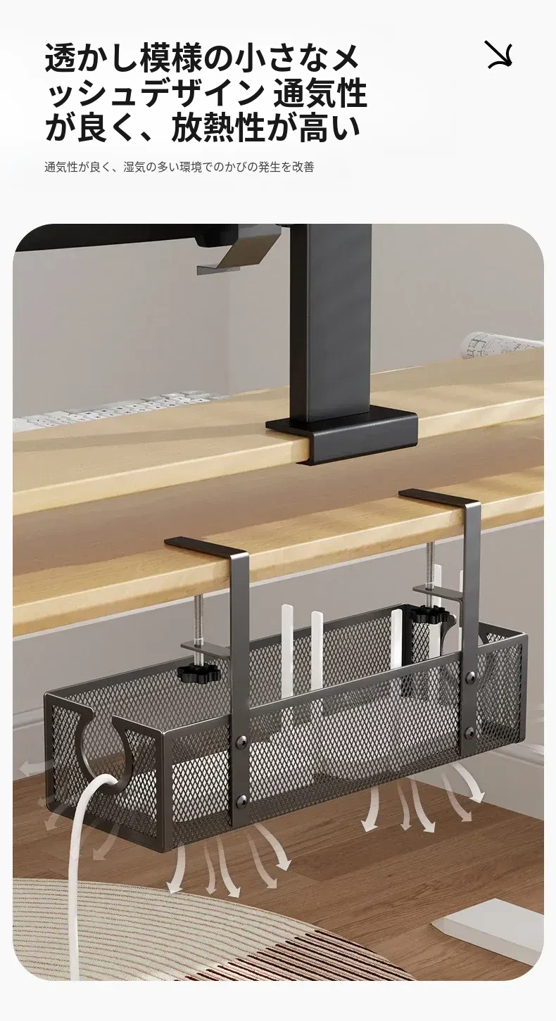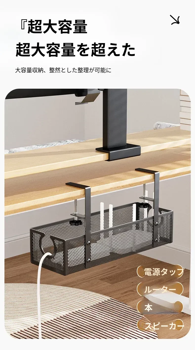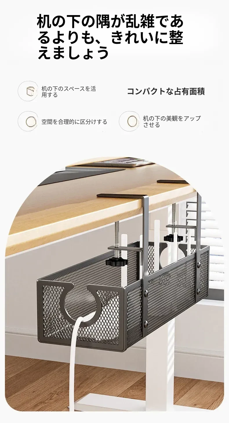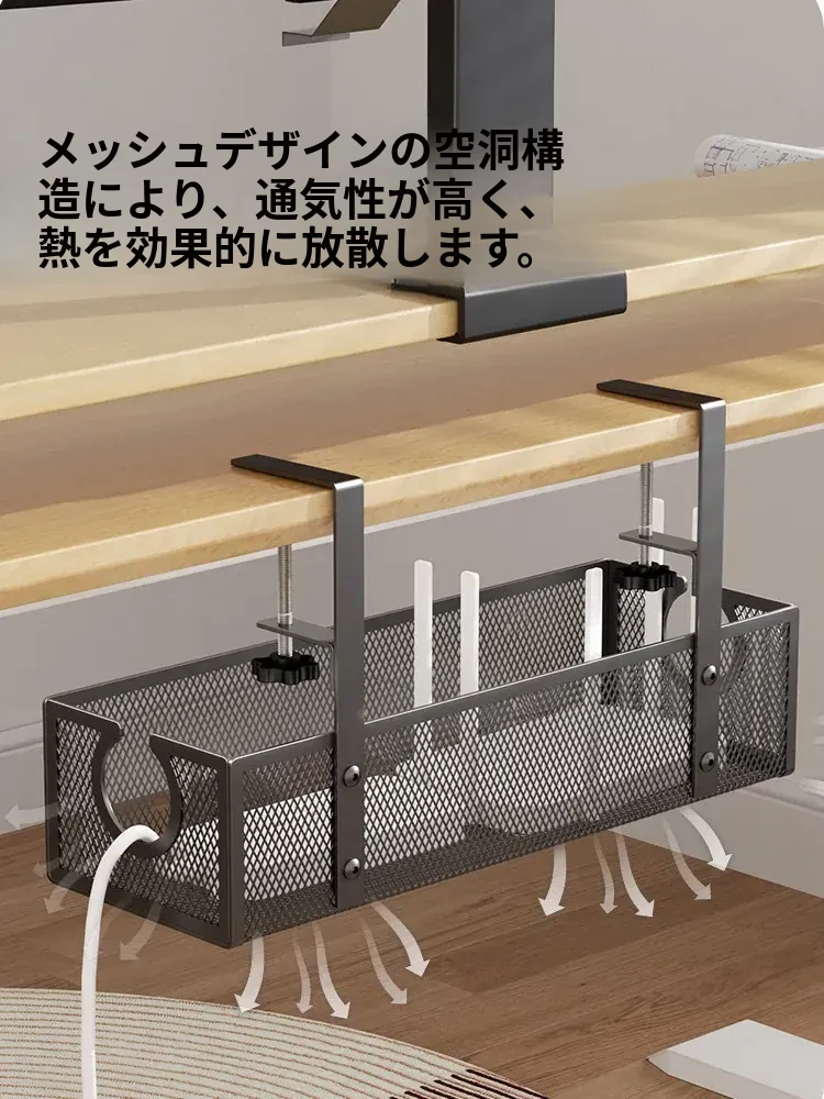 デスク下の電源ケーブル整理ラック - 配線をスッキリ整頓!作業スペースを有効活用するための便利グッズ。ケーブルの絡まりを防ぎ、快適な環境を実現します!