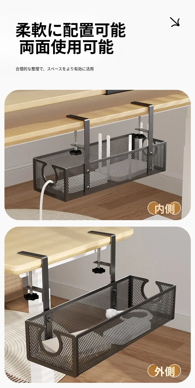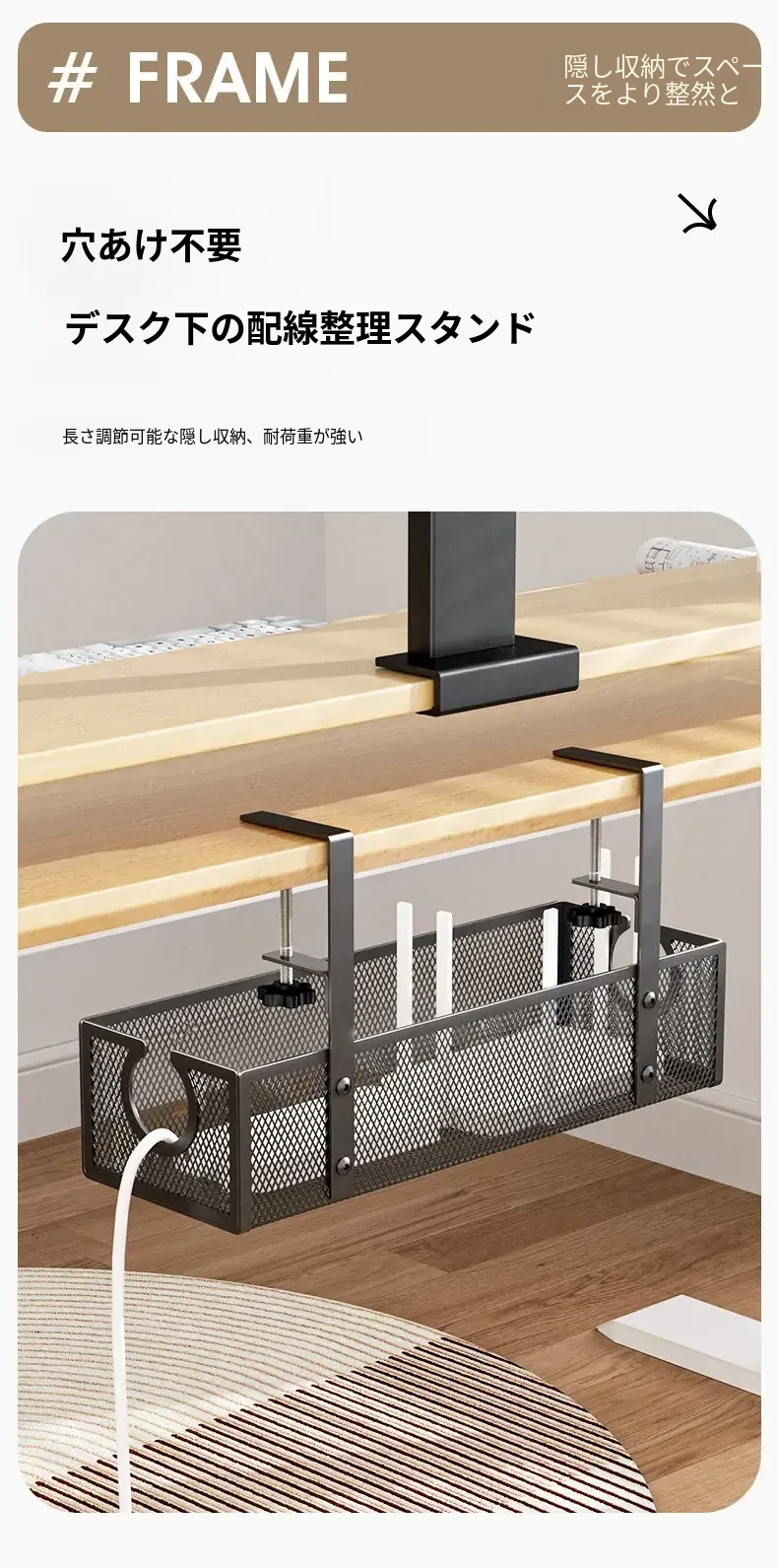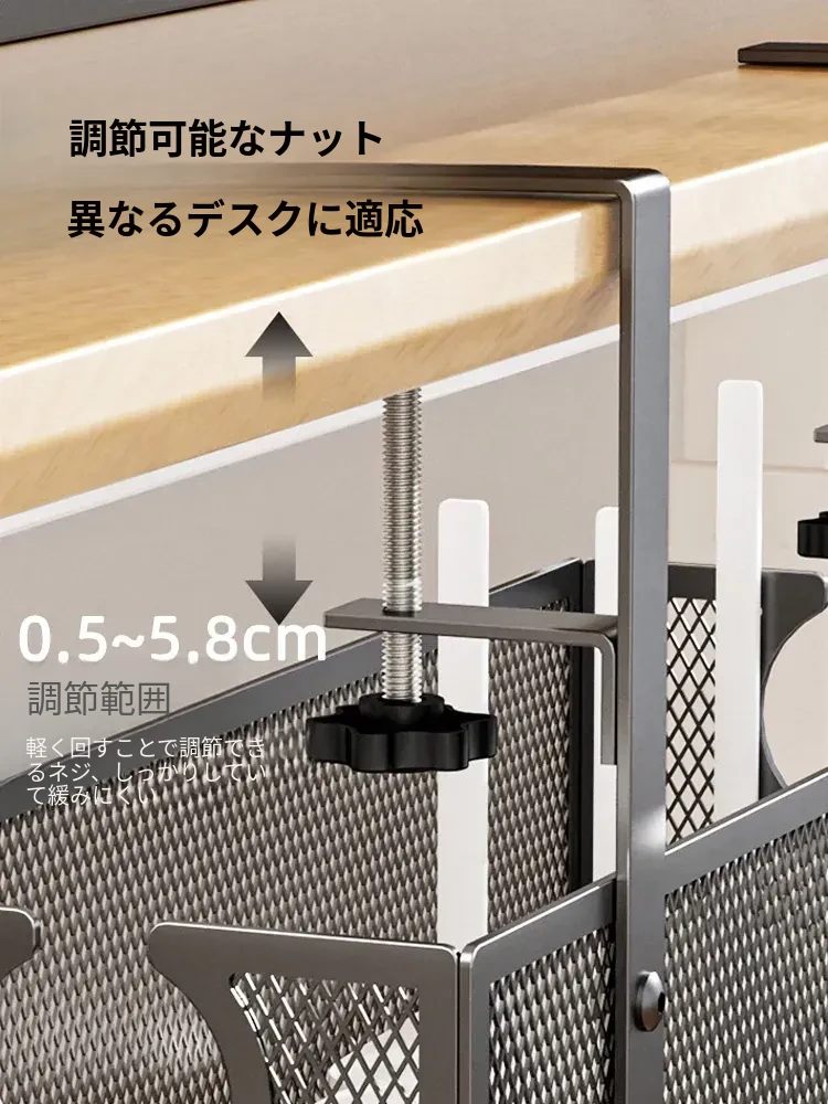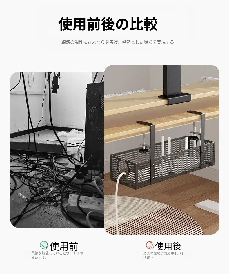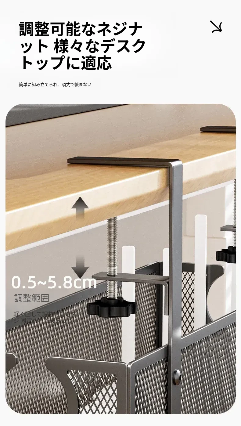 デスク下の電源ケーブル整理ラック - 配線をスッキリ整頓!作業スペースを有効活用するための便利グッズ。ケーブルの絡まりを防ぎ、快適な環境を実現します!